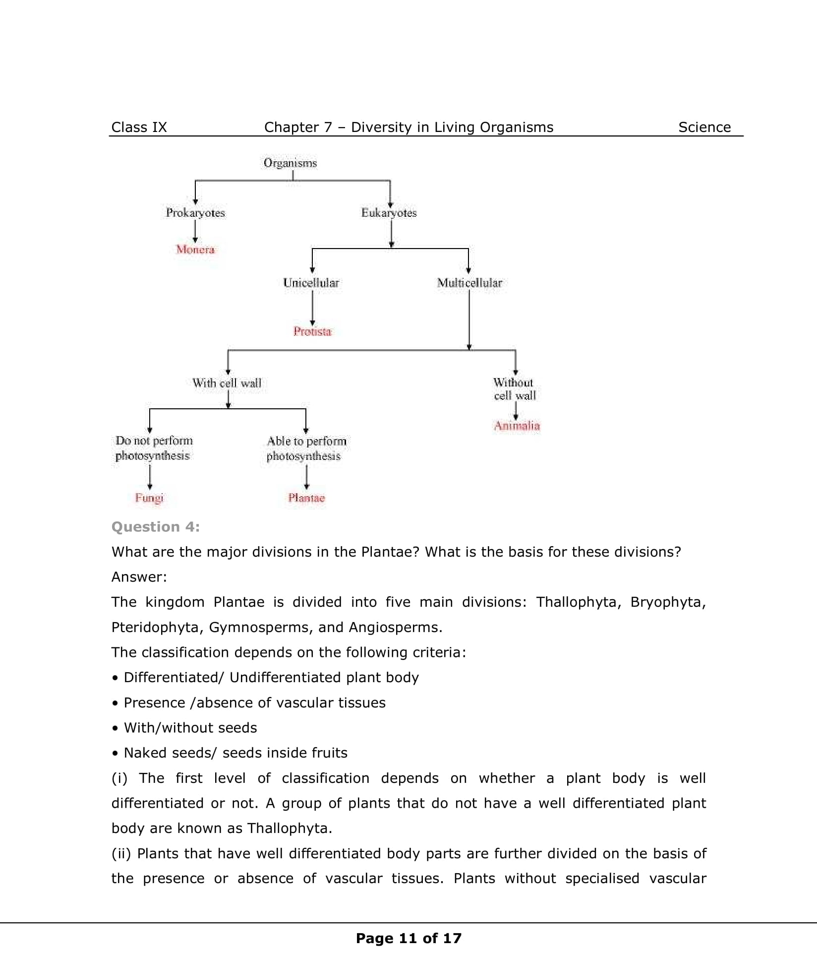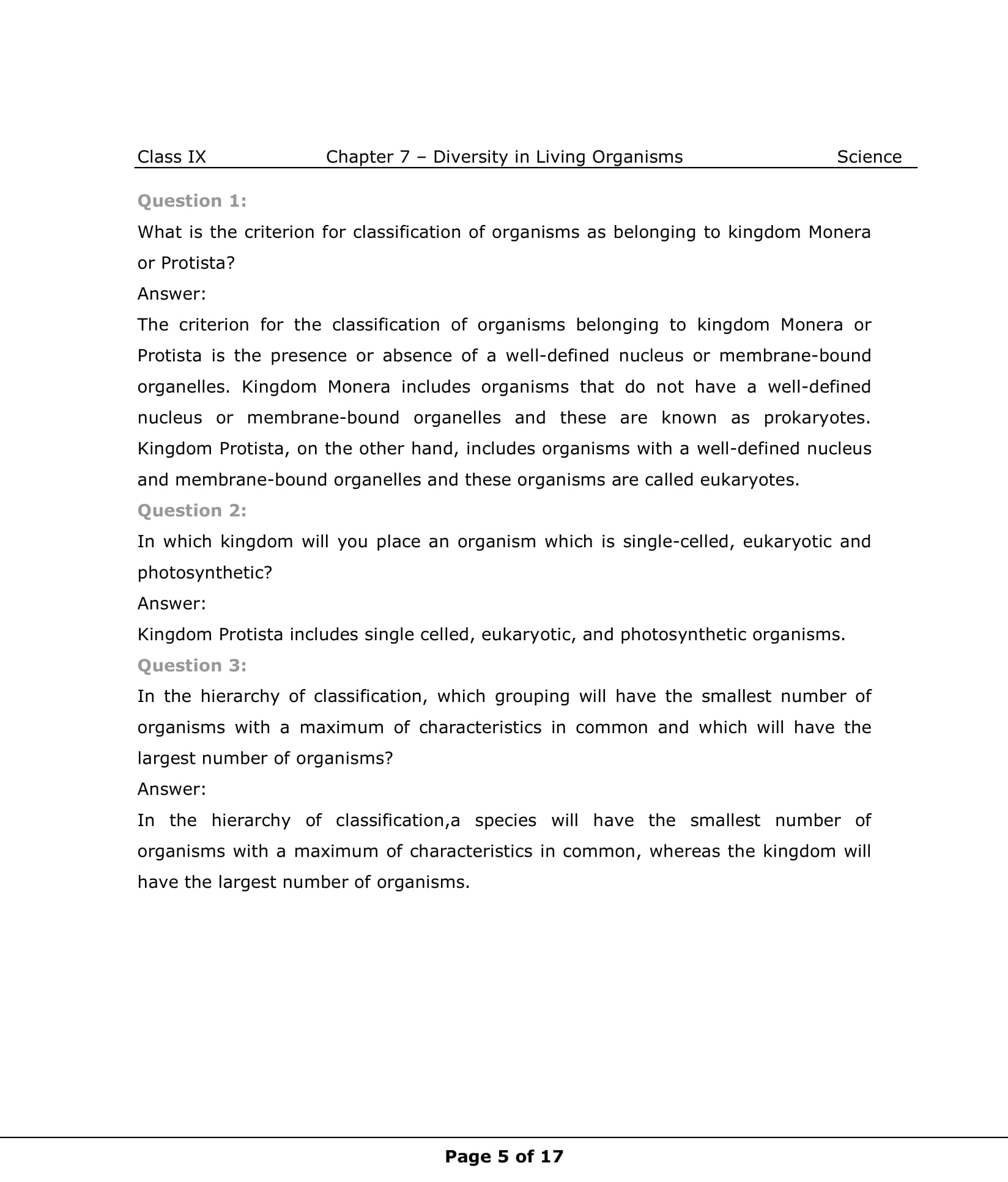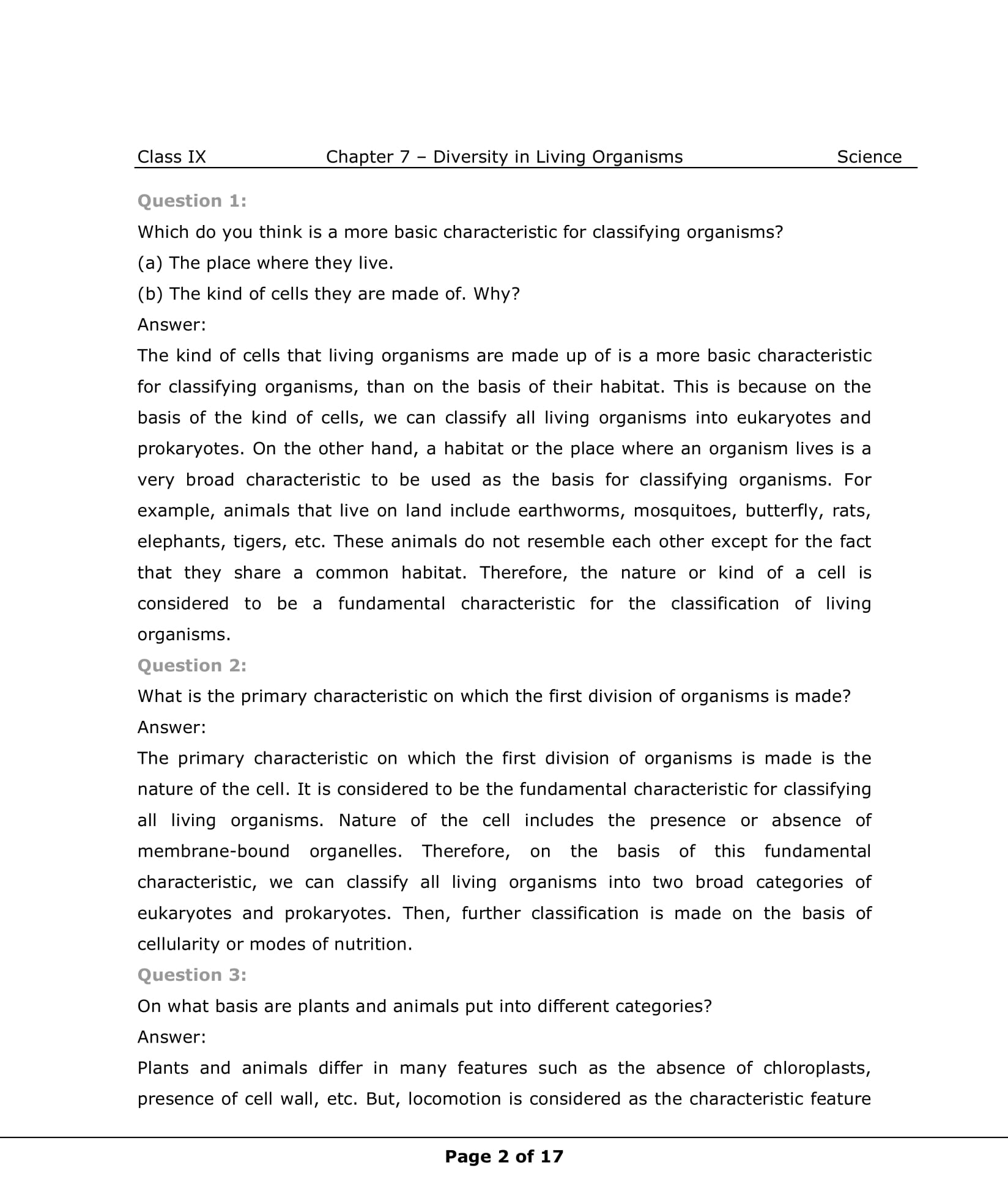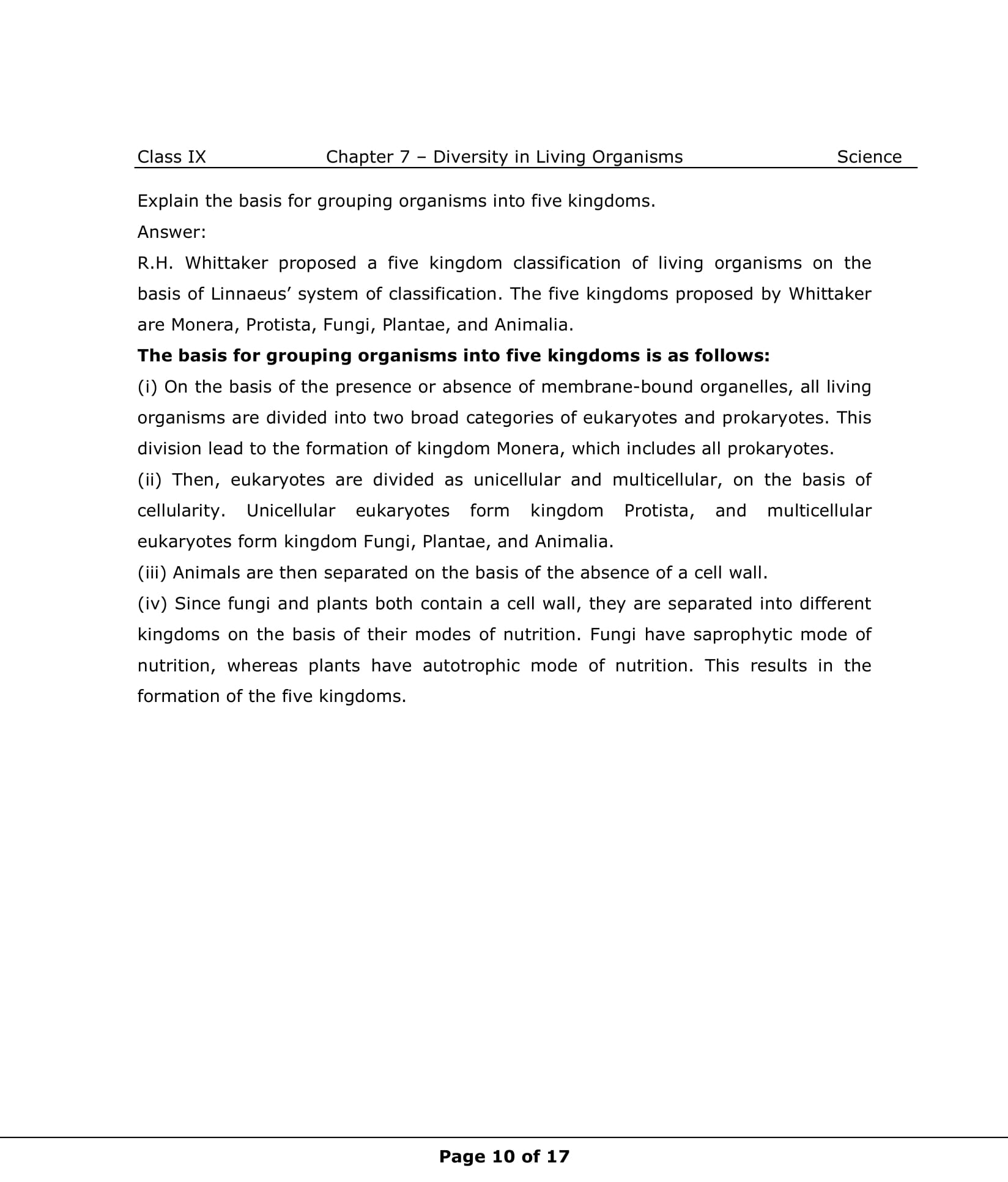 Students require NCERT Solutions For Class 9 Science Chapter 7 Diversity in Living Organisms for better exam preparation. In this chapter, we will The major characteristics considered for classifying all organisms into five major kingdoms are: (a) whether they are made of prokaryotic or eukaryotic cells (b) whether the cells are living singly or organized into multicellular and thus complex organisms (c) whether the cells have a cell-wall and whether they prepare their own food.