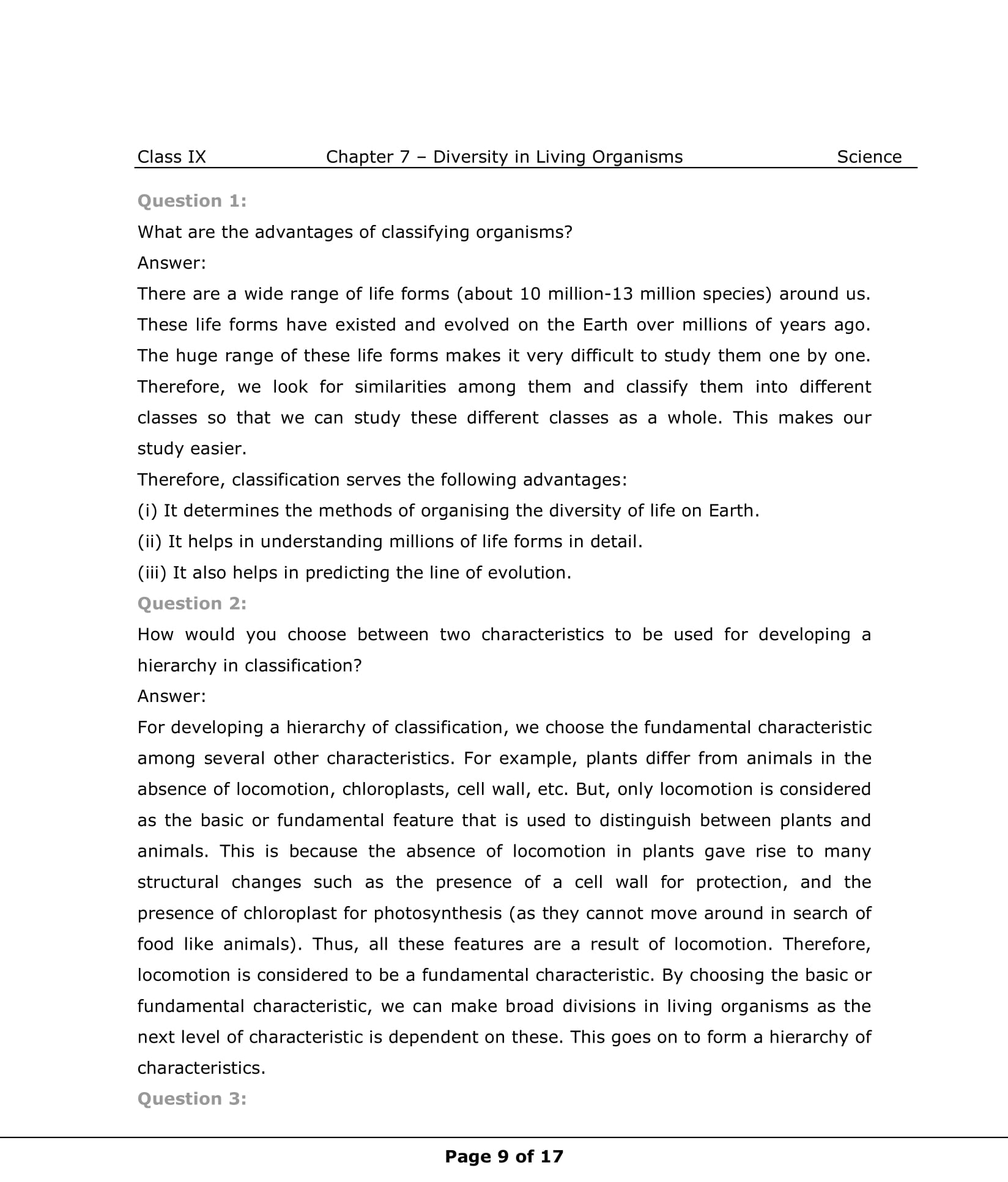 These CBSE NCERT Solutions For Class 9 Science Chapter 7 Diversity in Living Organisms will help you to practice all the topics in the chapter with ease and score maximum marks in the examination.