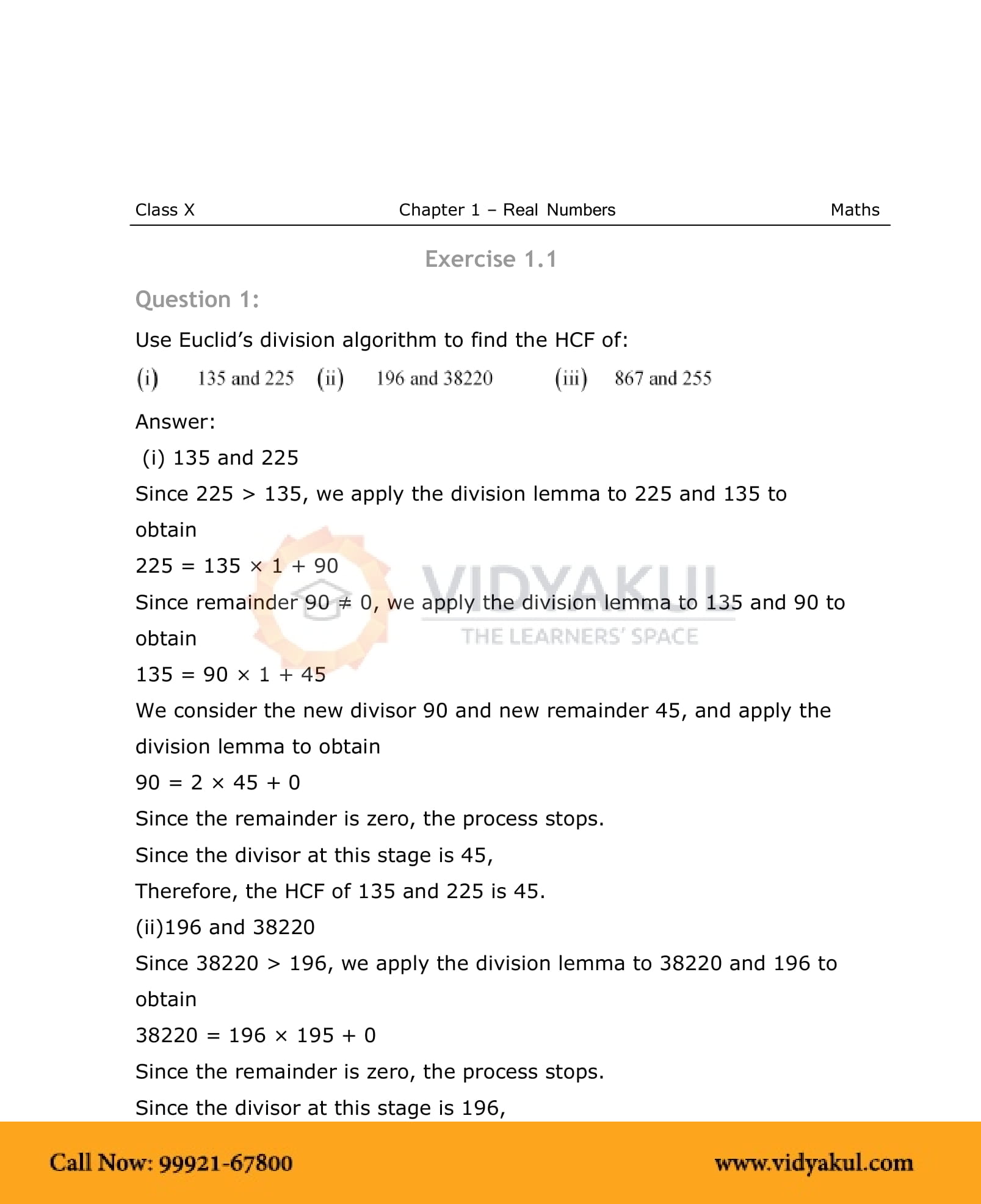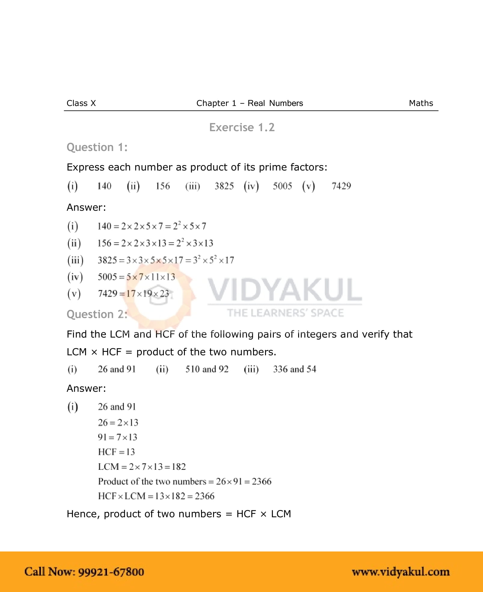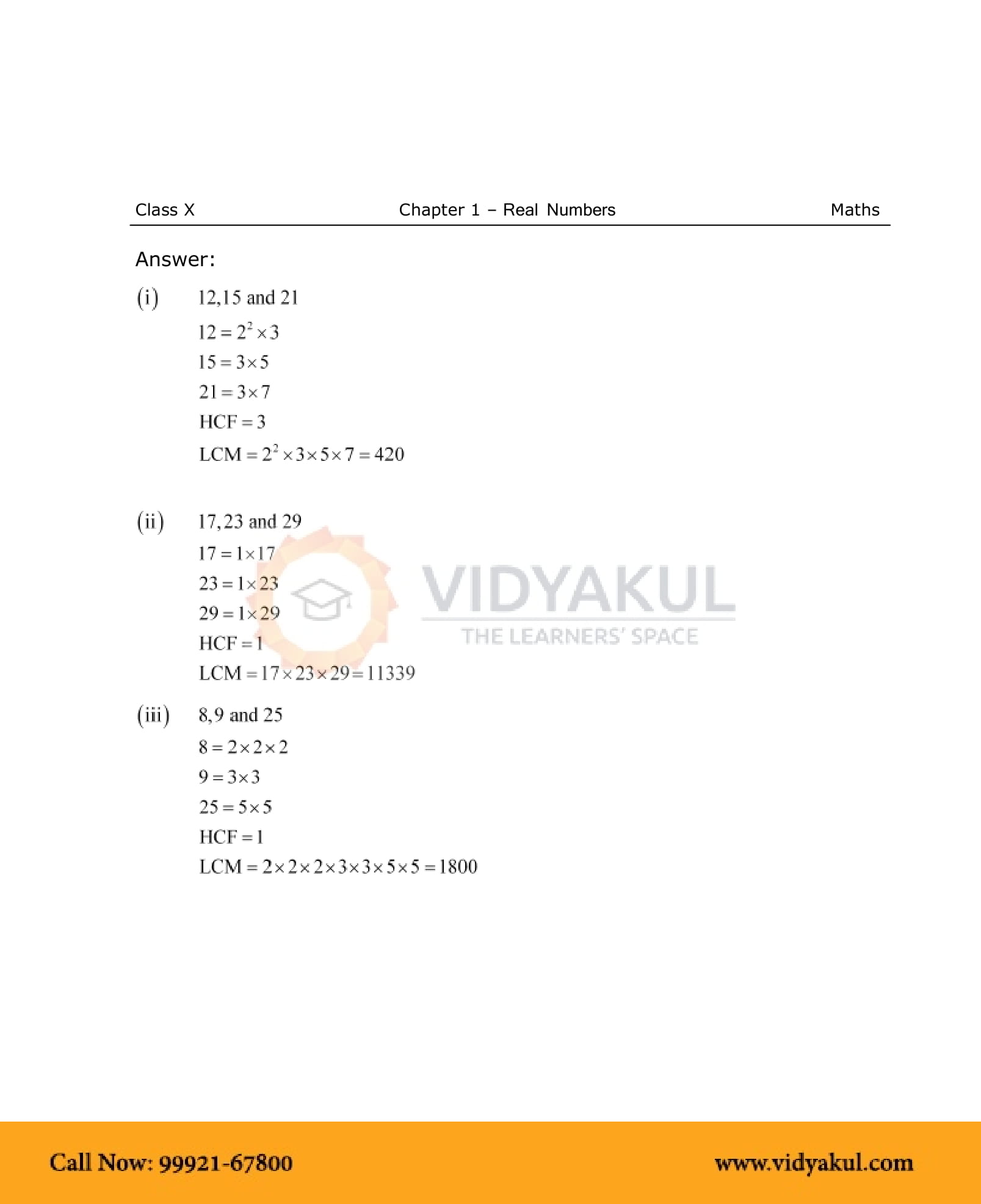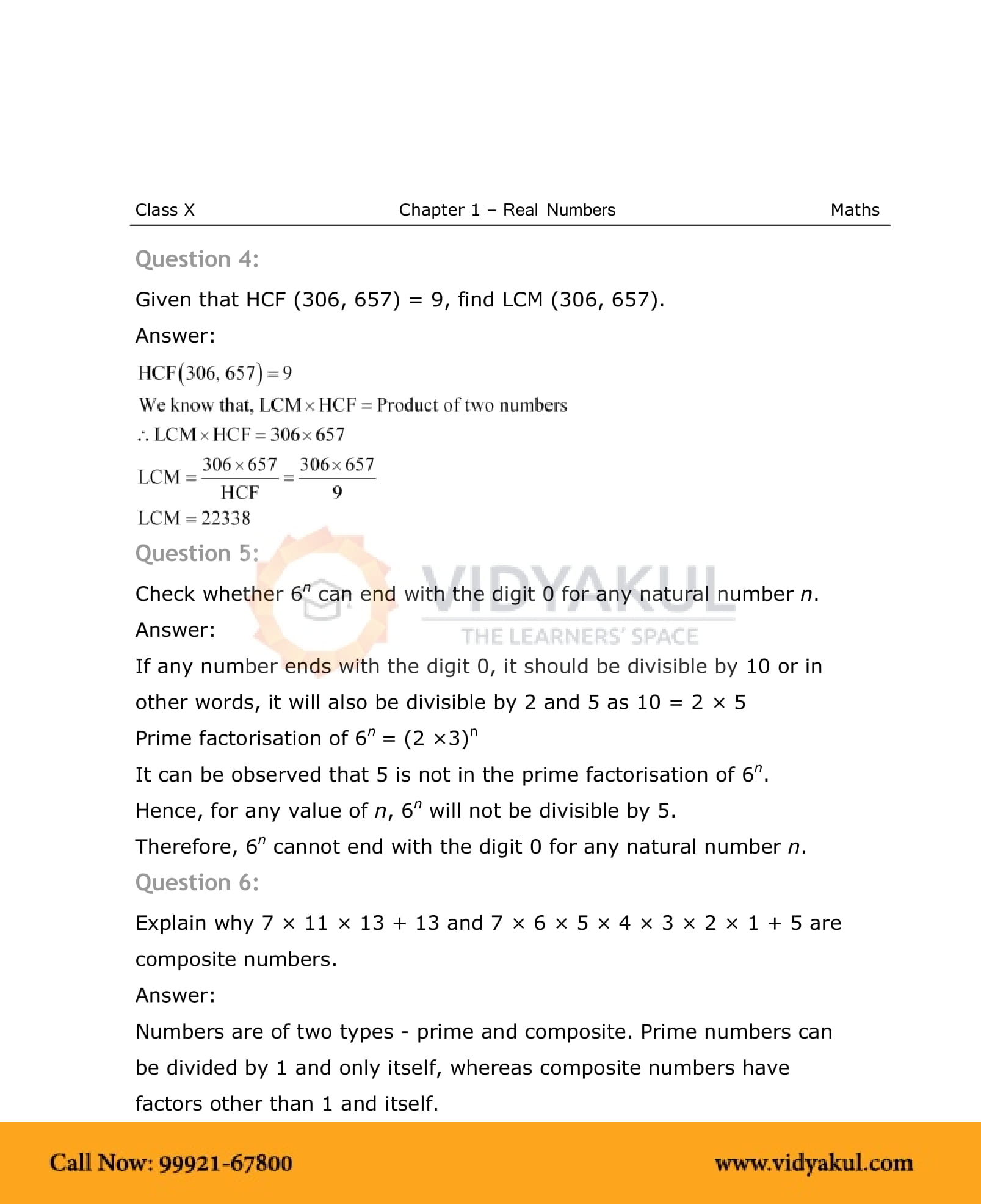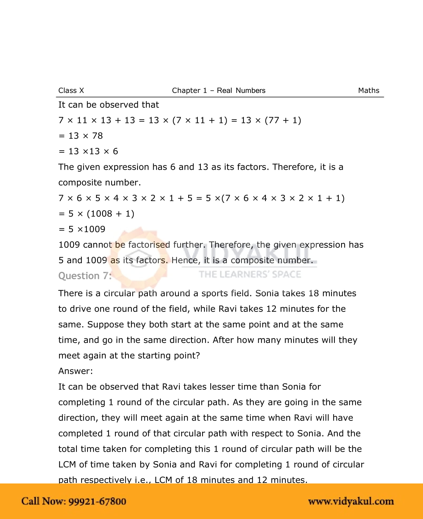 NCERT Solutions For Class 10 Maths Chapter 1 Real Numbers - PDF Download