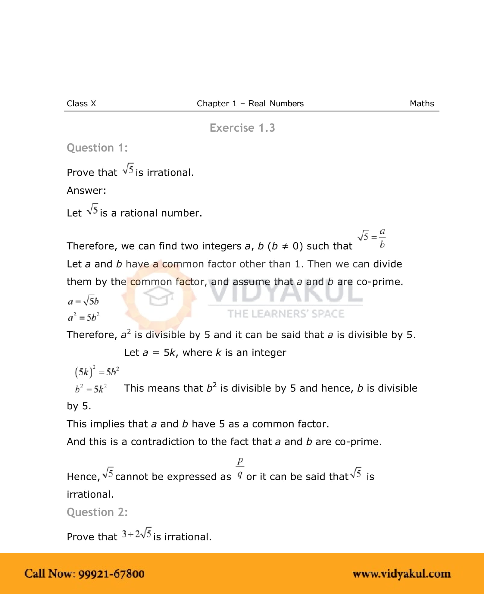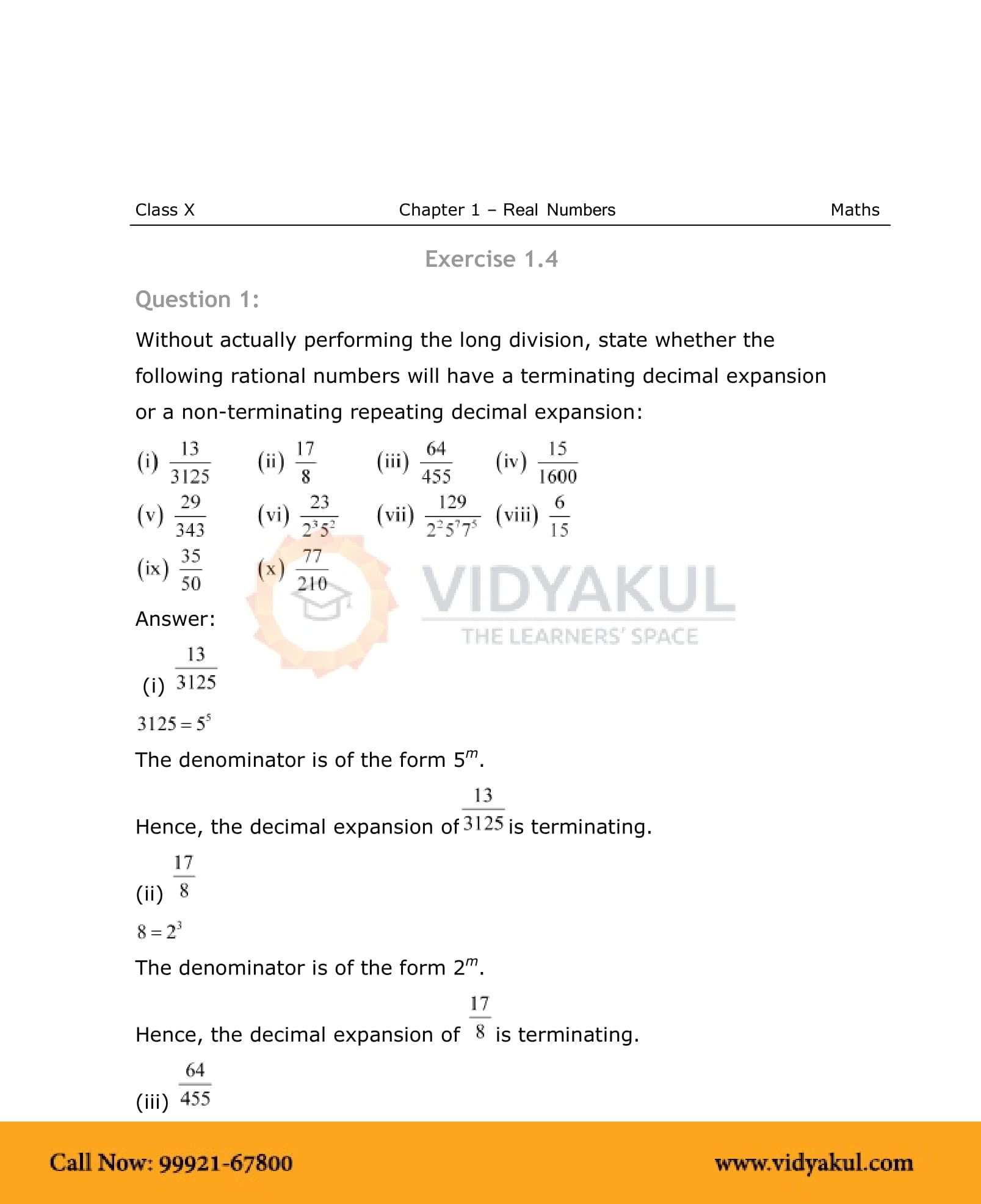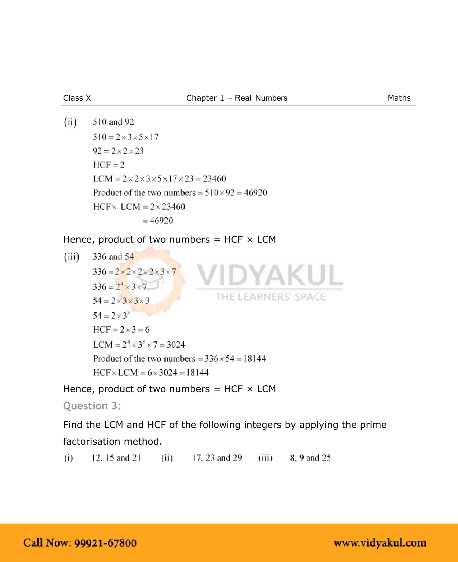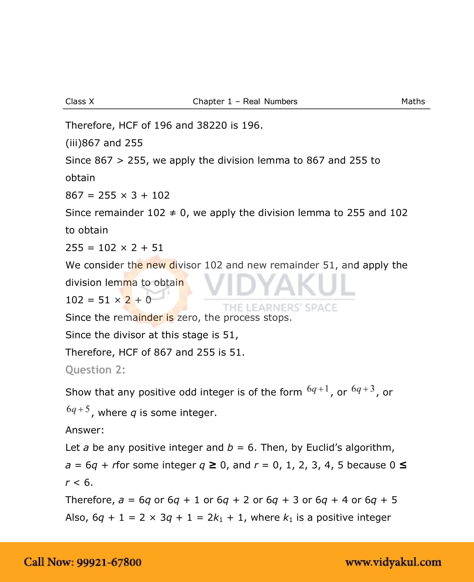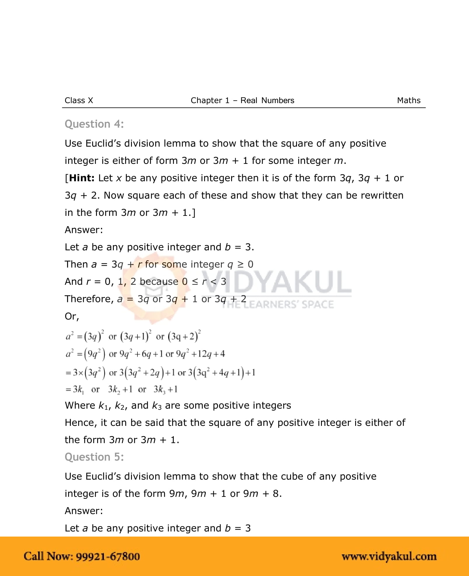 NCERT Solutions For Class 10 Maths Chapter 1 Real Numbers - PDF Download