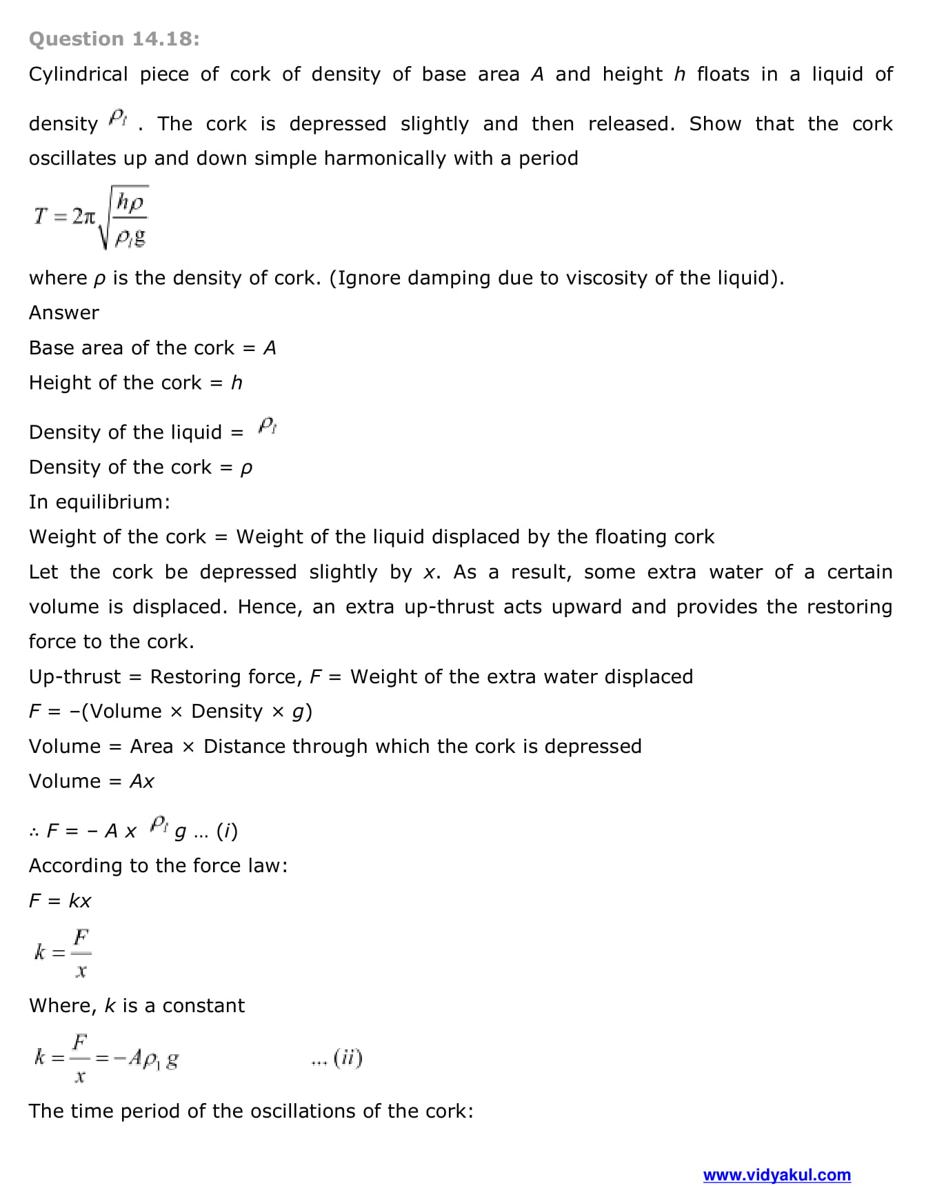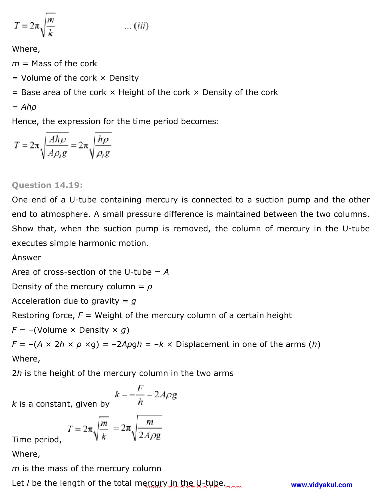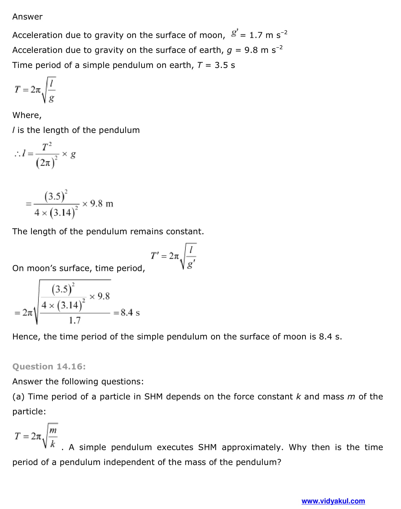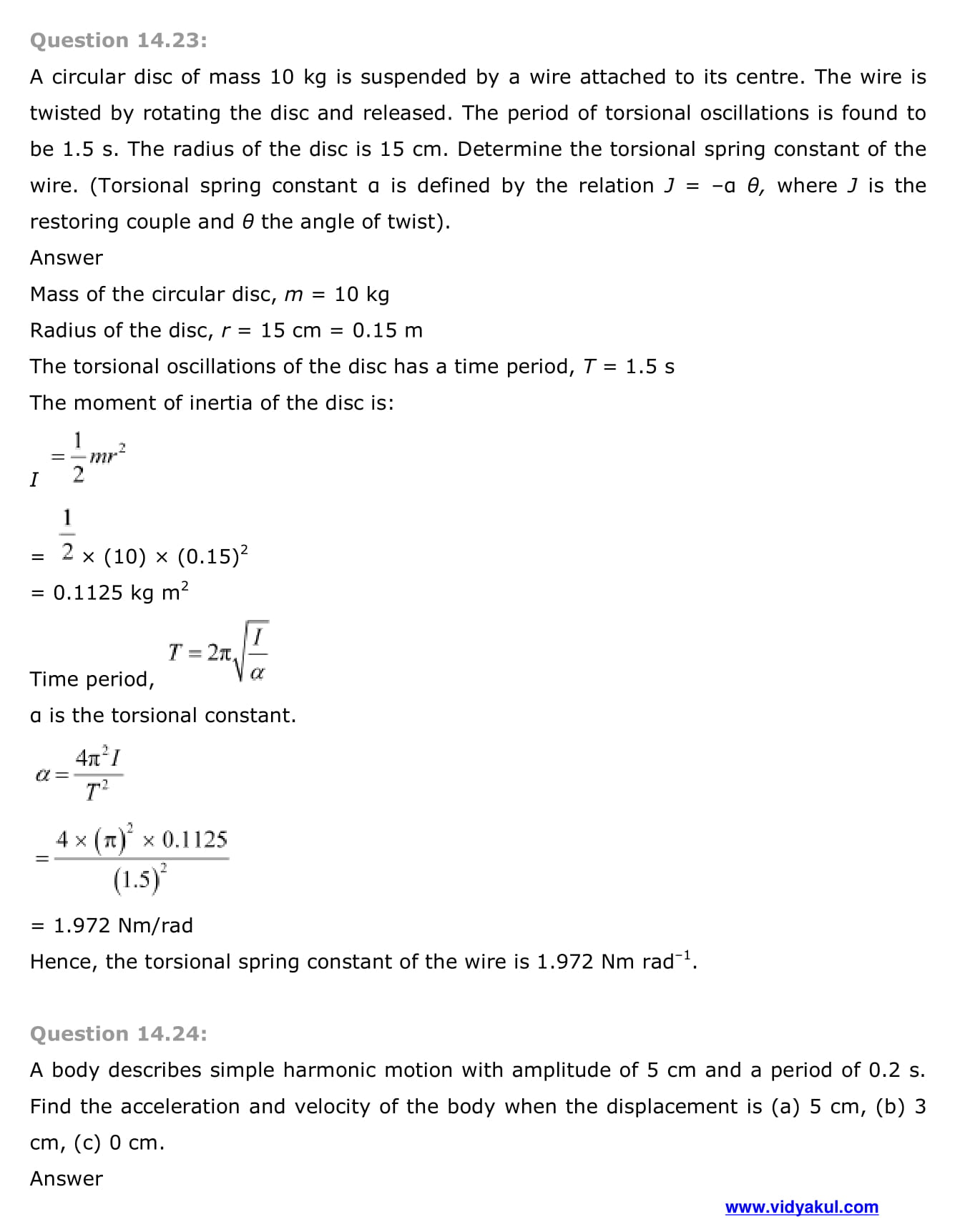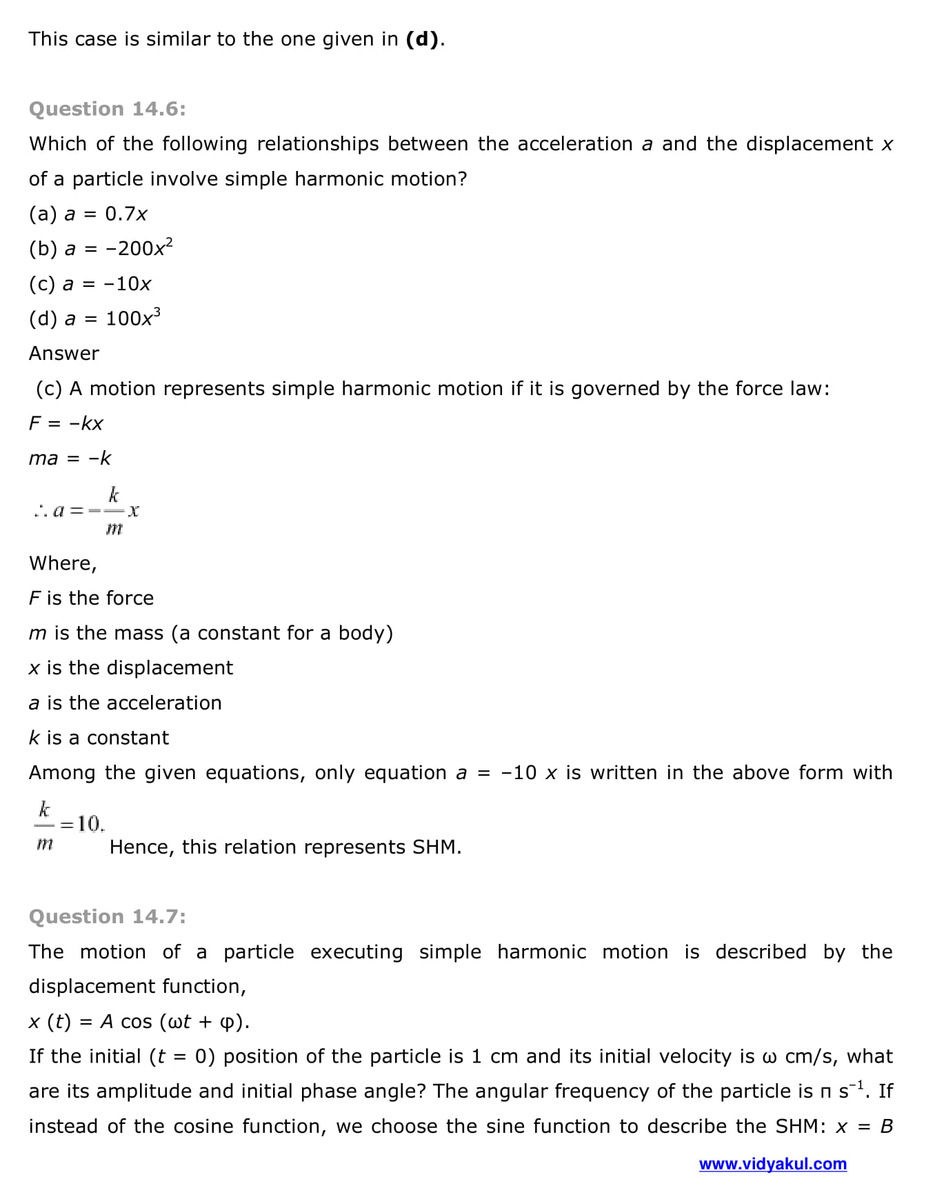 Study Class 11 Physics Chapter Oscillation with Vidyakul’s free PDFs download of NCERT Solutions Class 11 Physics Chapter 14 Oscillations. Learn and understand various methods to solve the exercise.