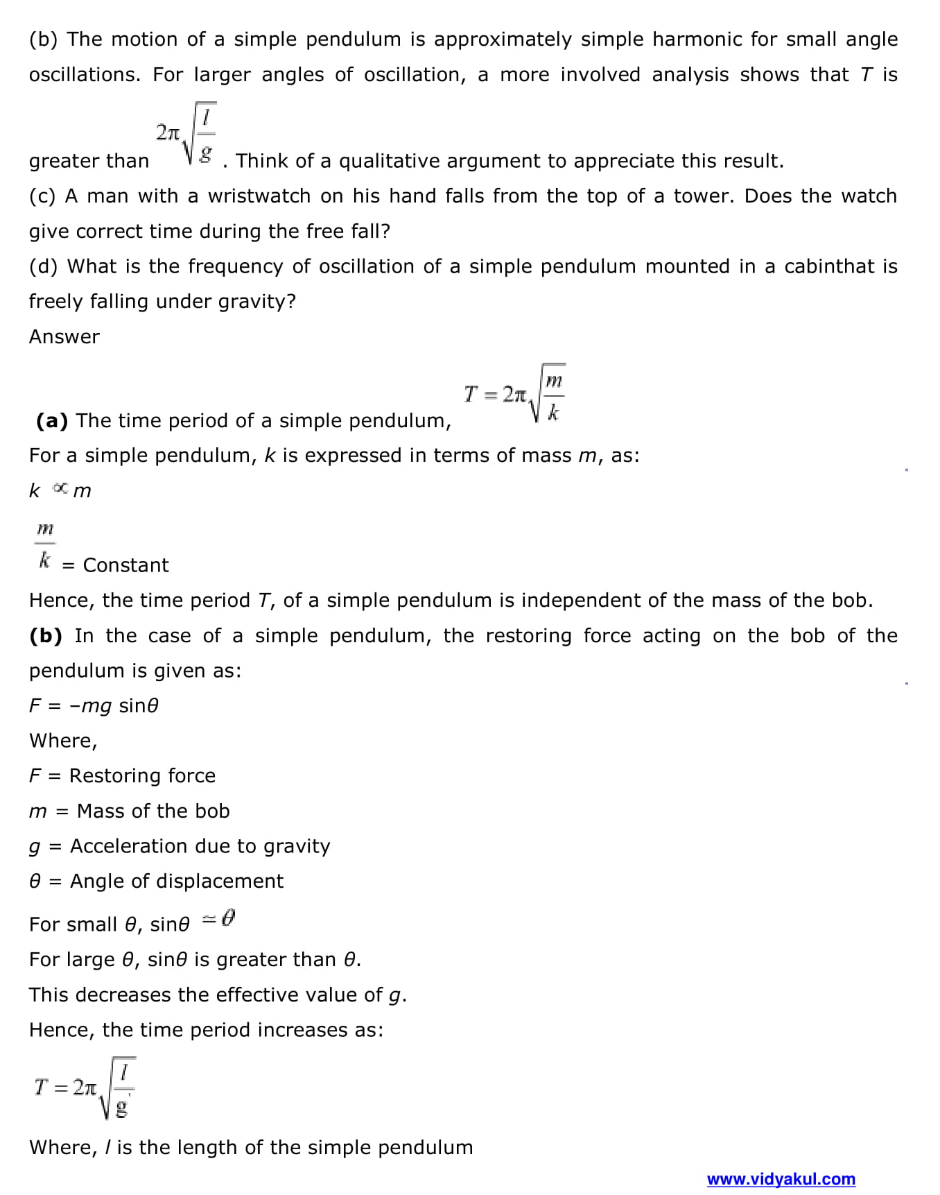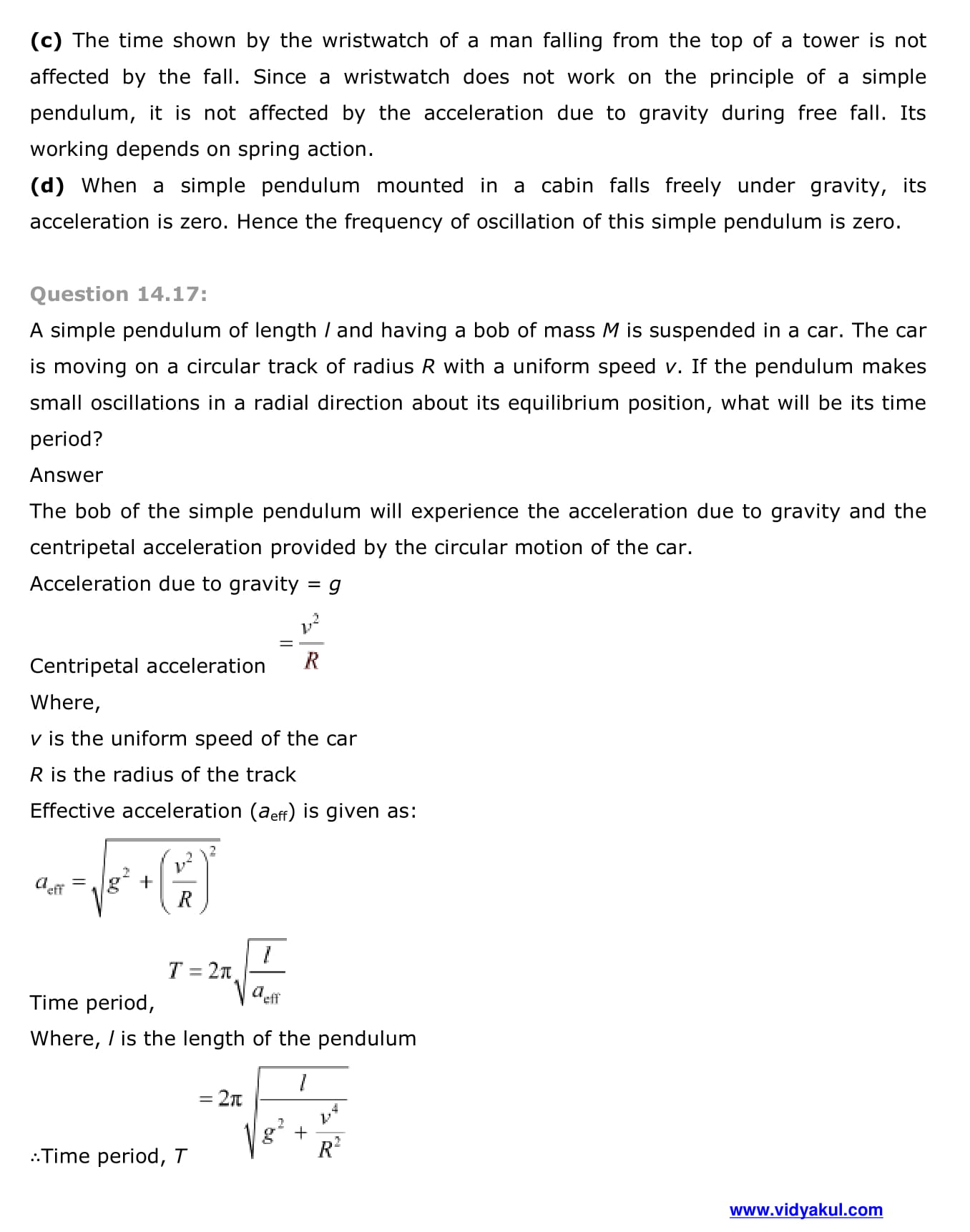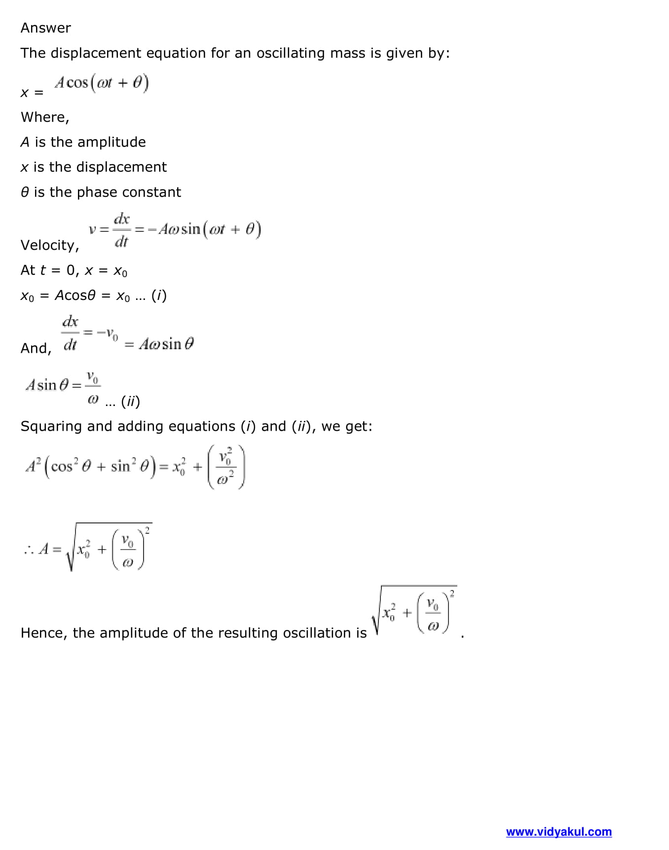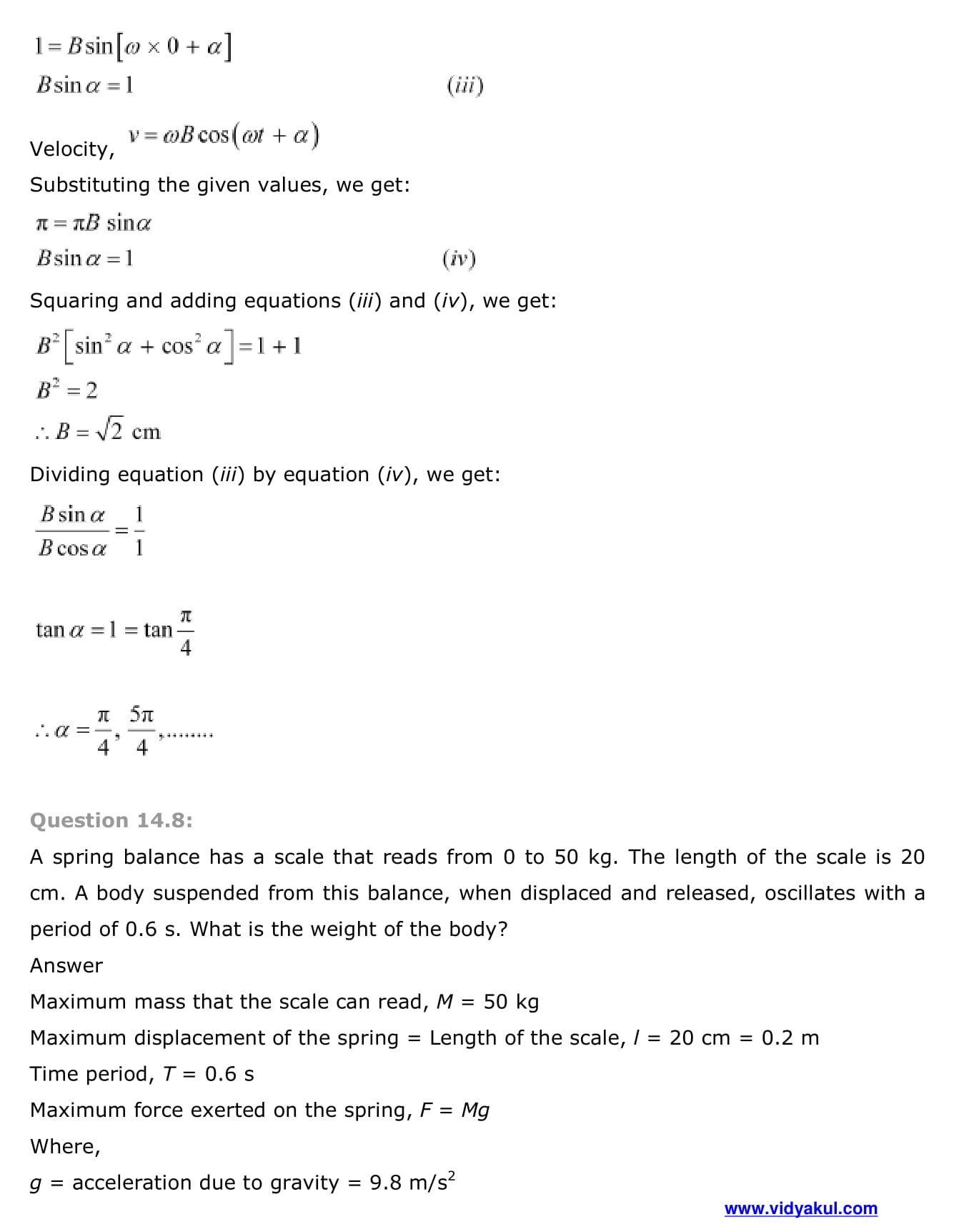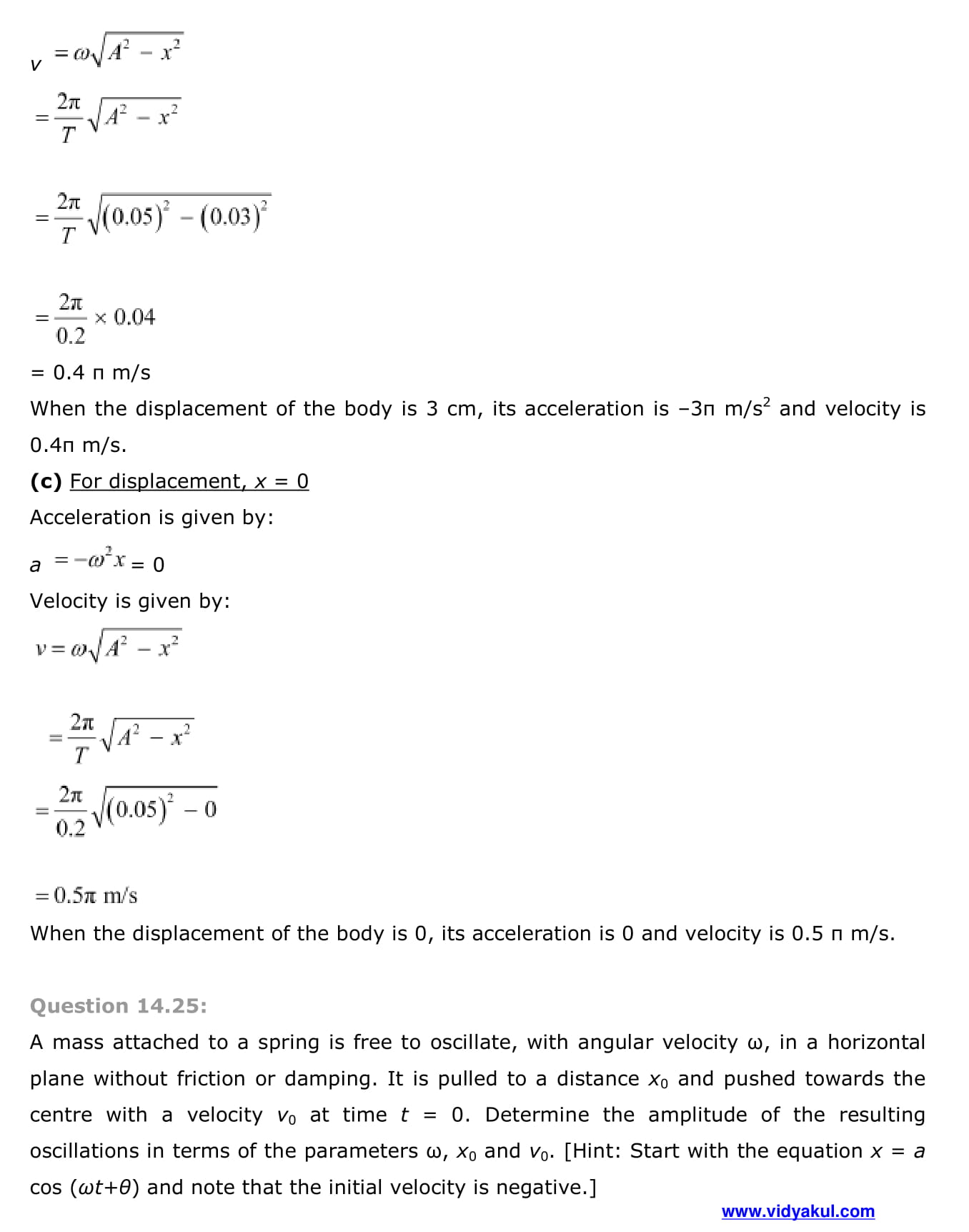 Study Class 11 Physics Chapter Oscillation with Vidyakul’s free PDFs download of NCERT Solutions Class 11 Physics Chapter 14 Oscillations. Learn and understand various methods to solve the exercise.