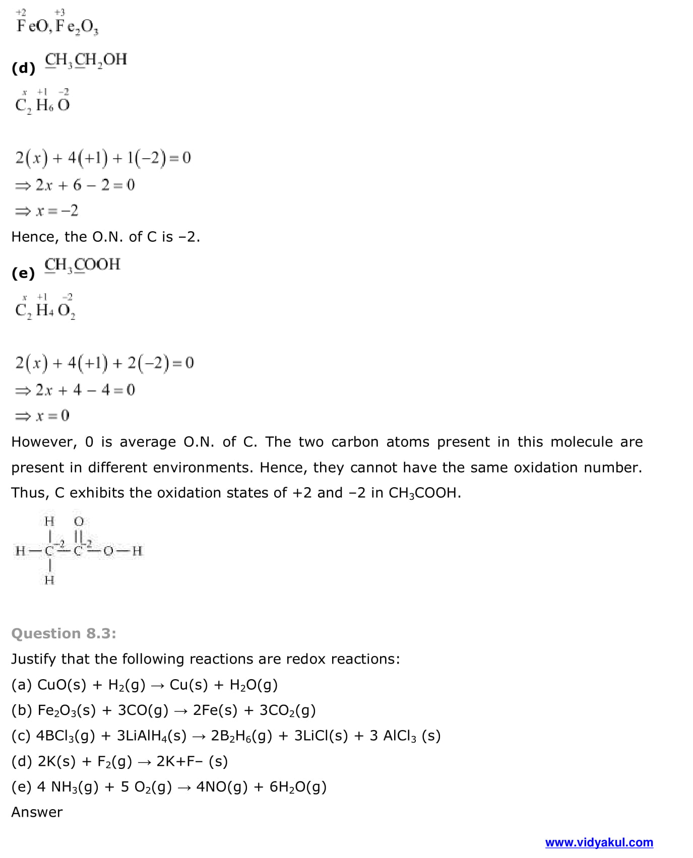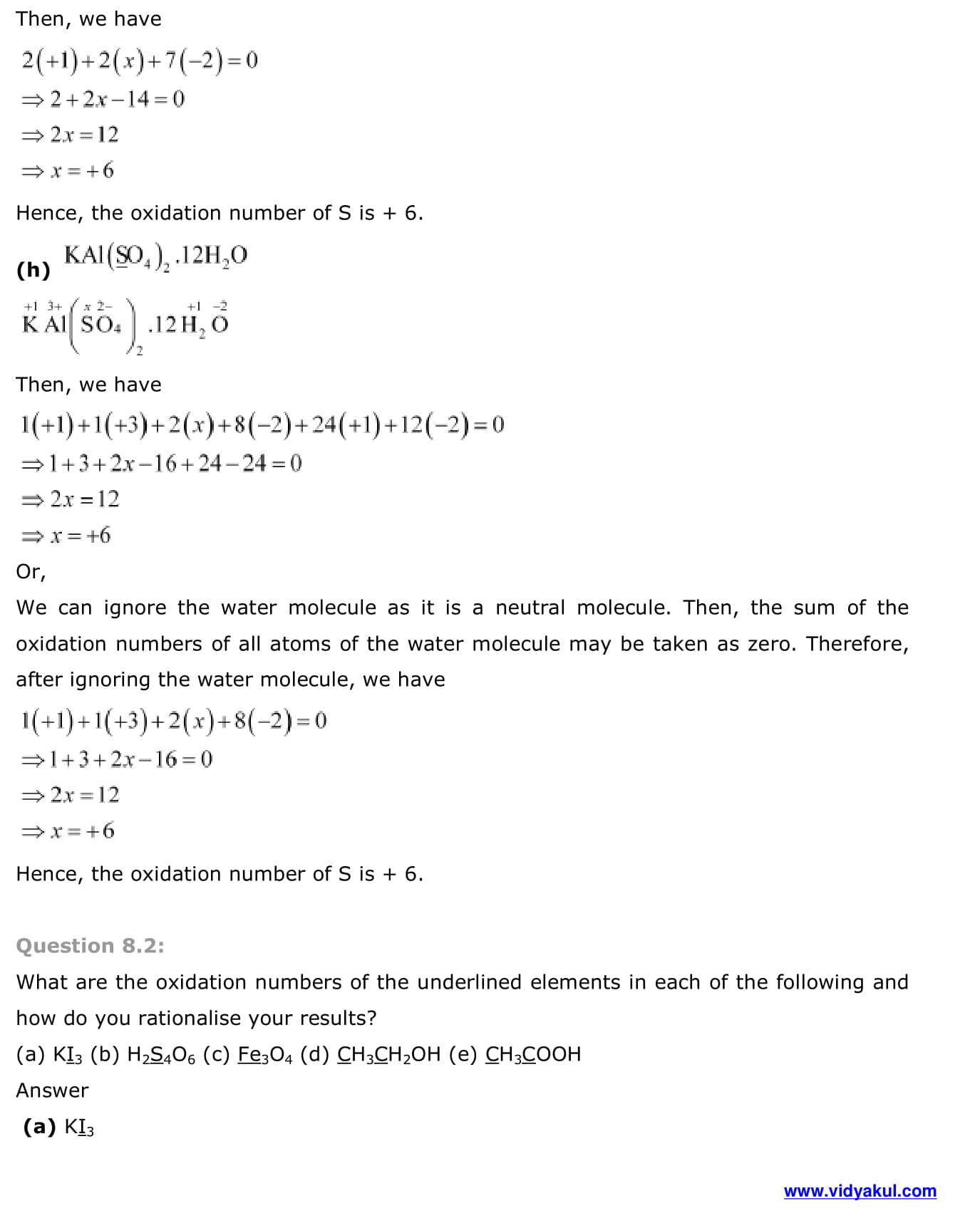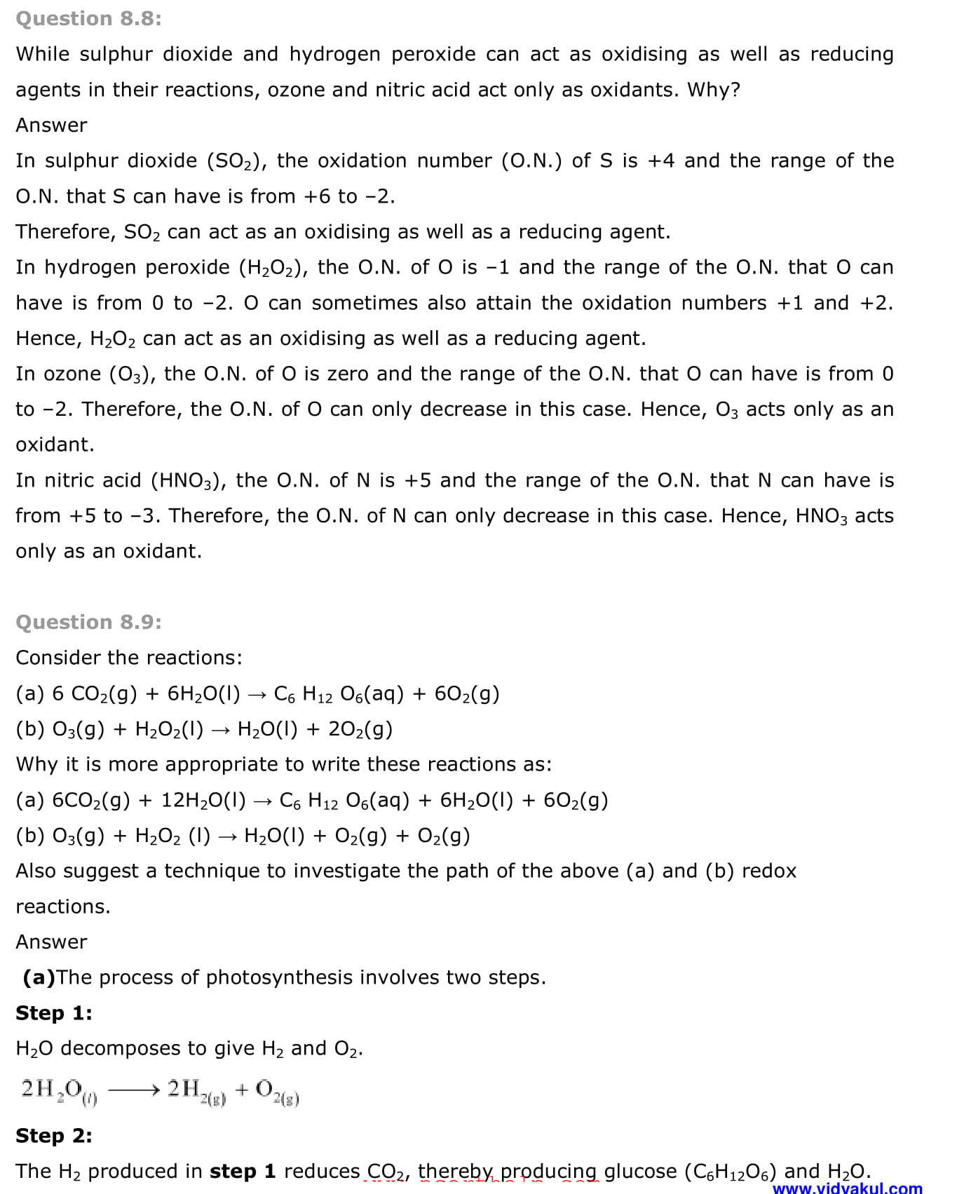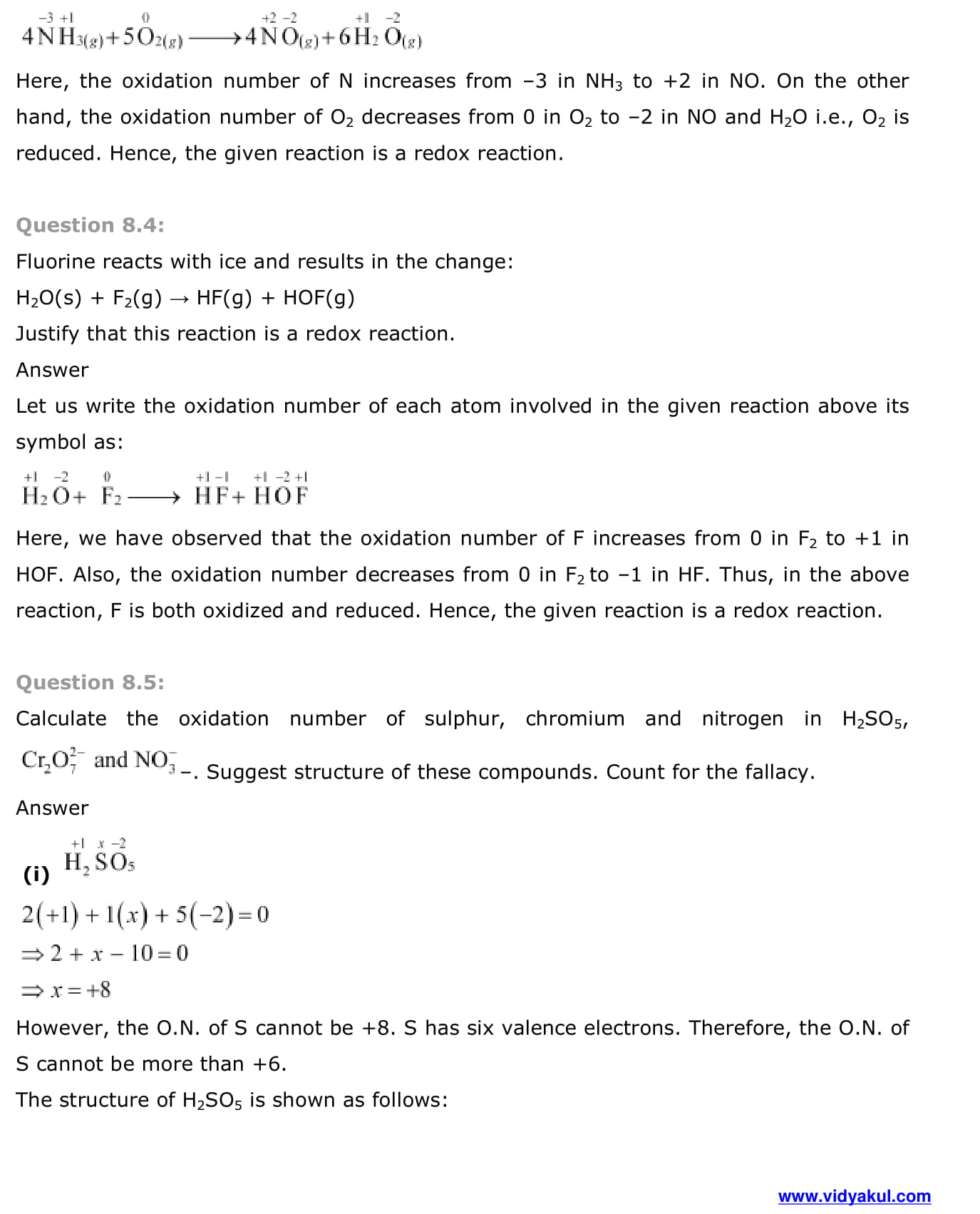 NCERT Solutions for Class 11 Chemistry Chapter 8 Redox Reaction - PDF Download