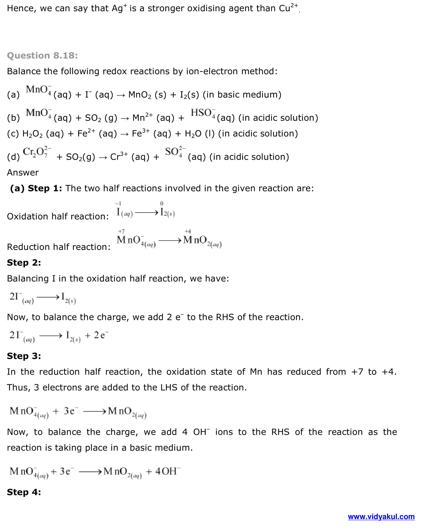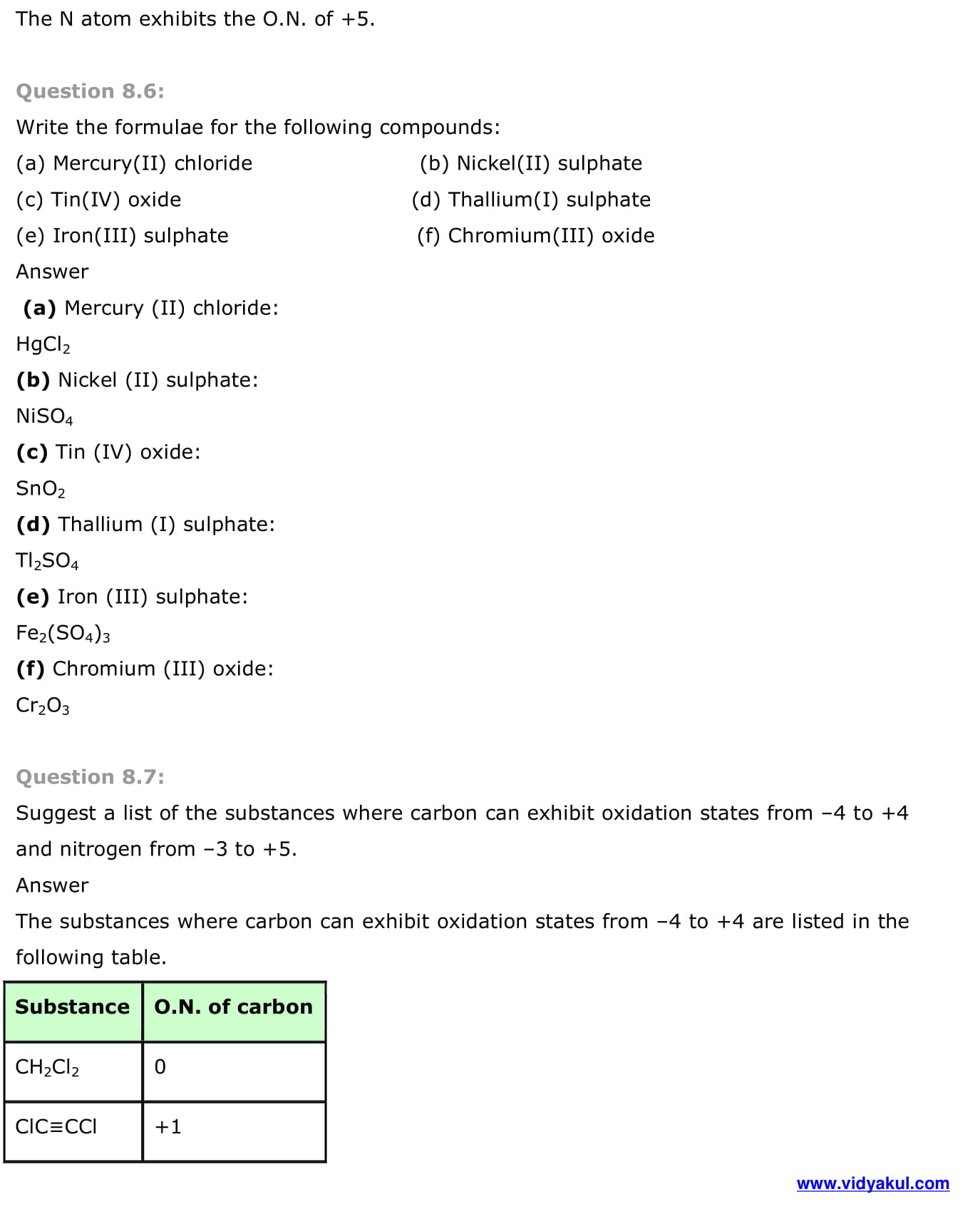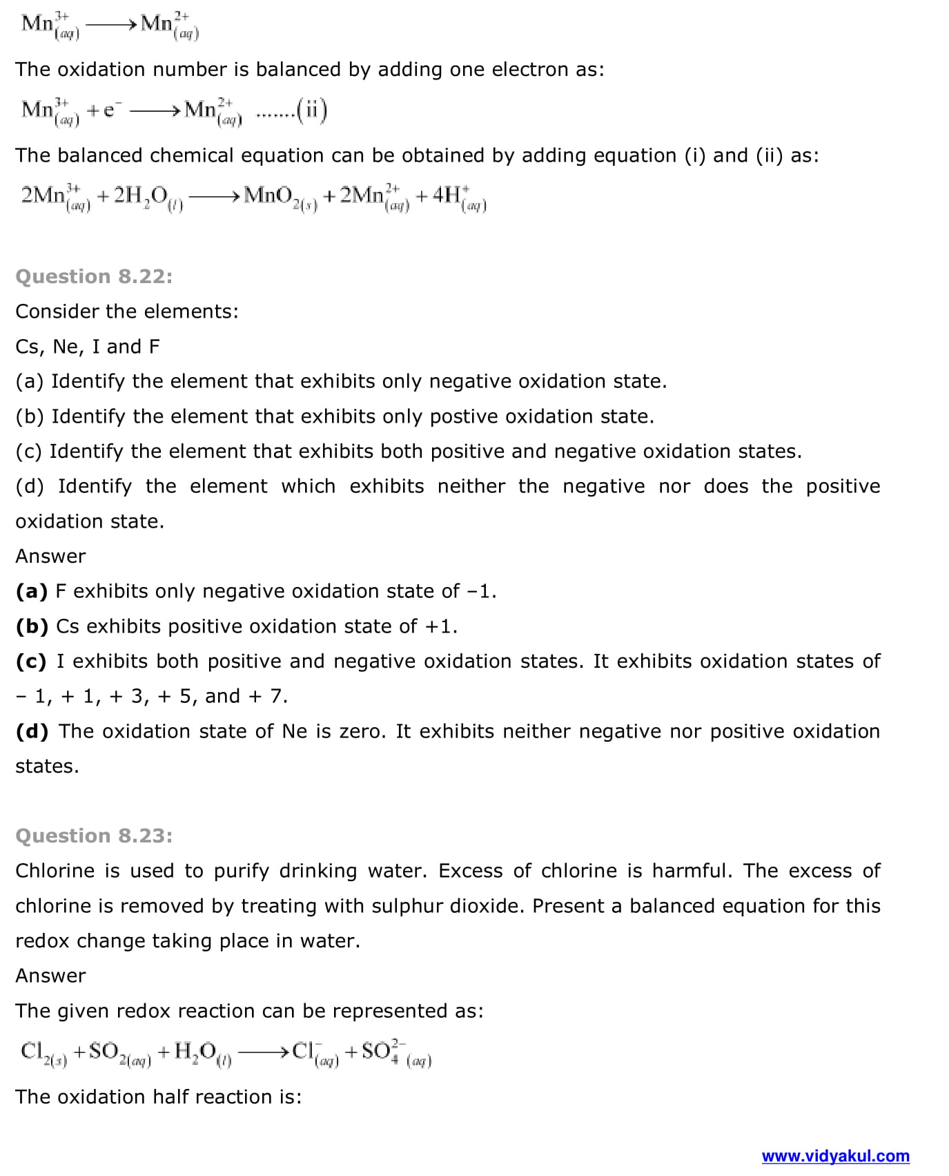 NCERT Solutions for Class 11 Chemistry Chapter 8 Redox Reaction - PDF Download