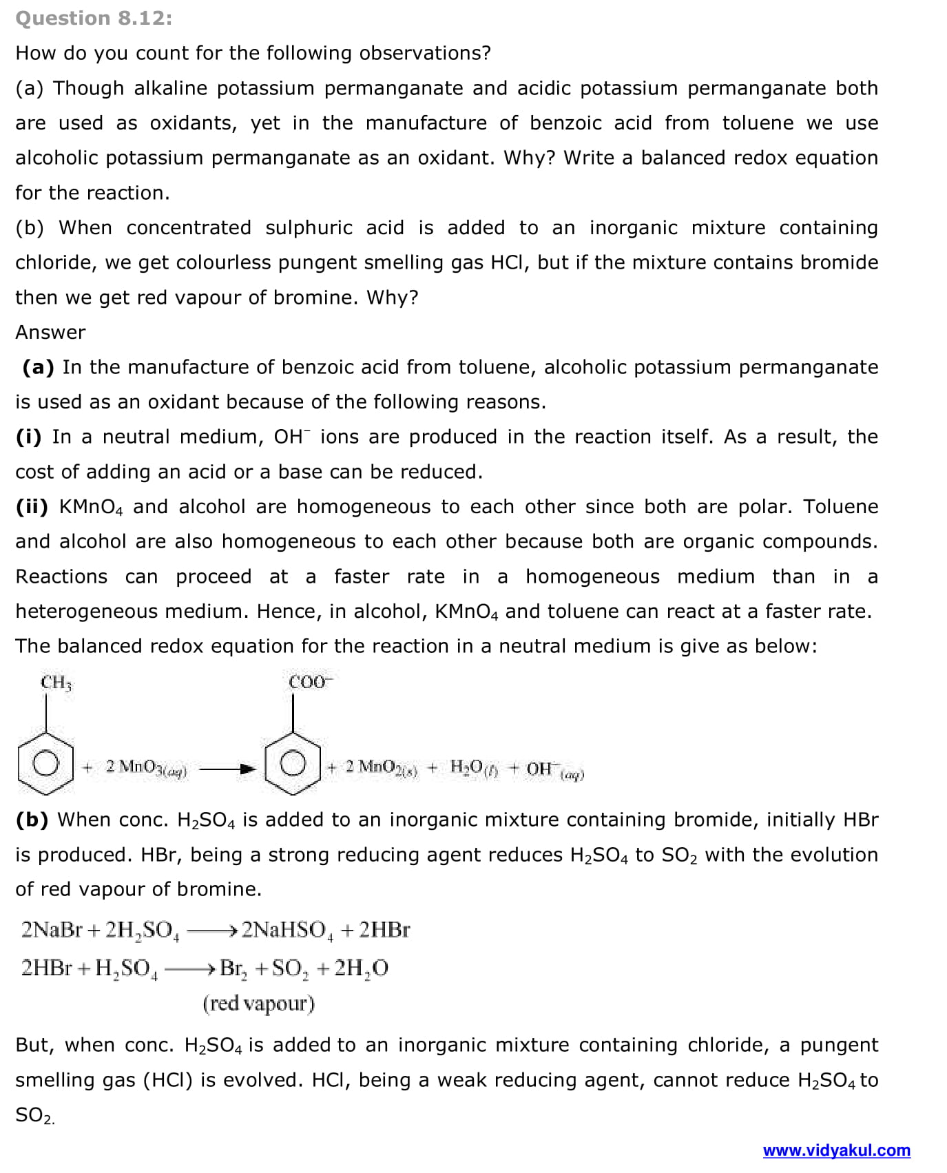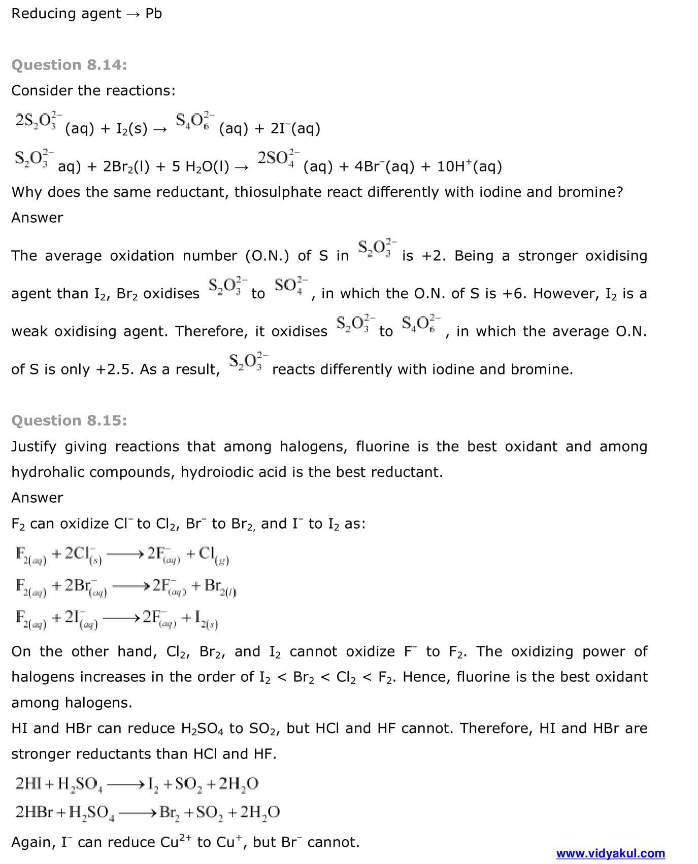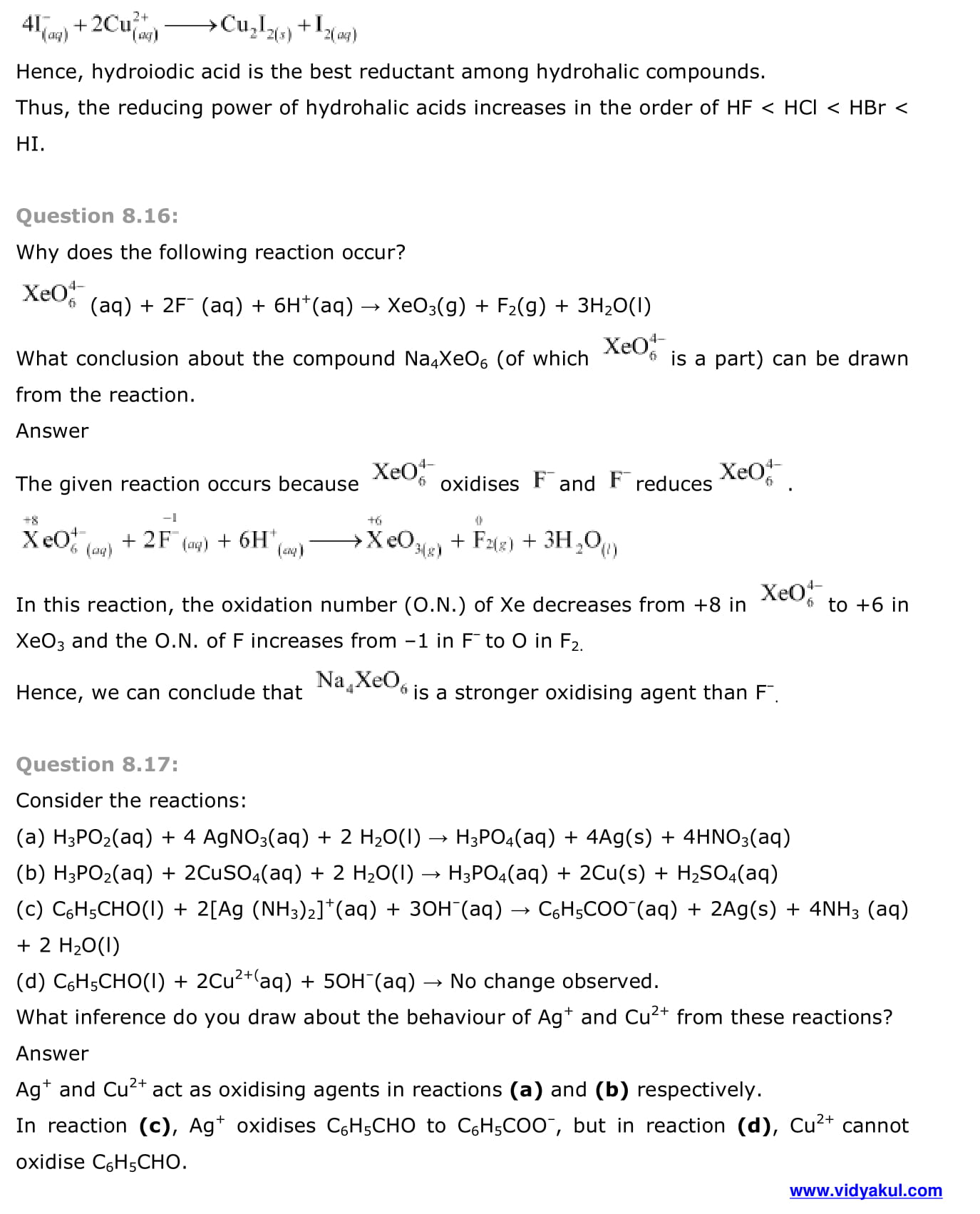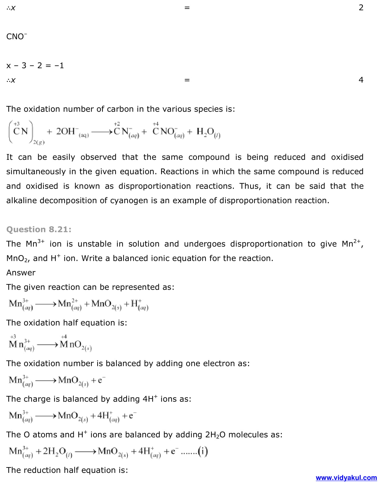 NCERT Solutions for Class 11 Chemistry Chapter 8 Redox Reaction - PDF Download