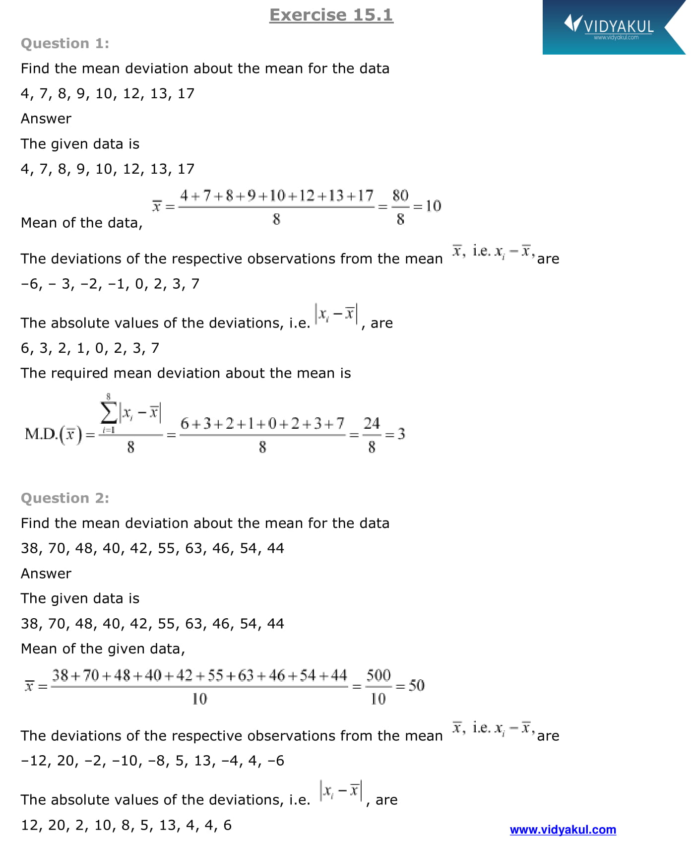 NCERT Solutions for Class 11 Maths Chapter 15 Statistics - PDF Download