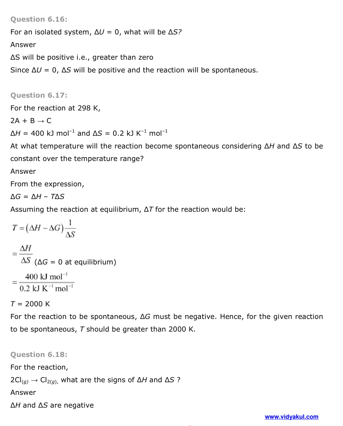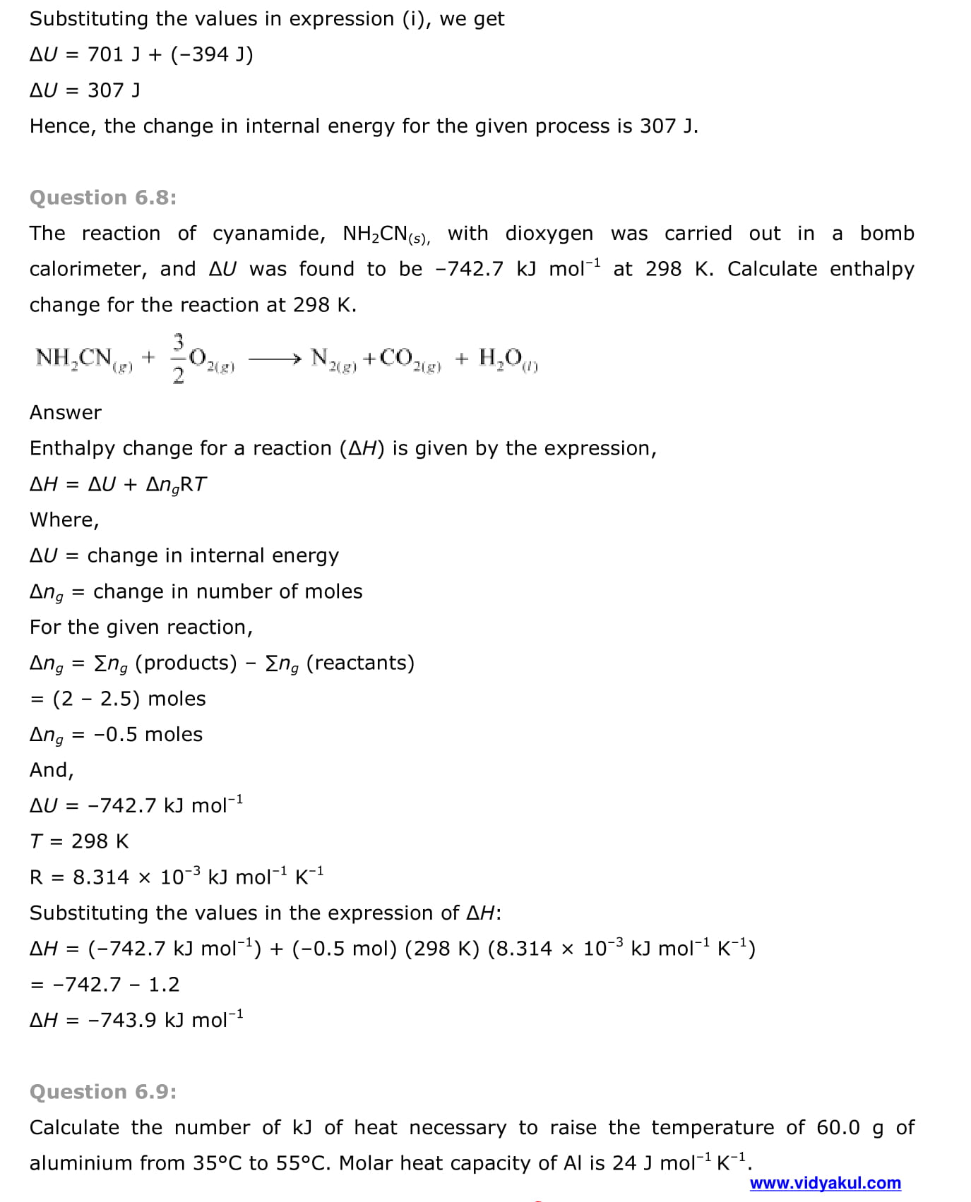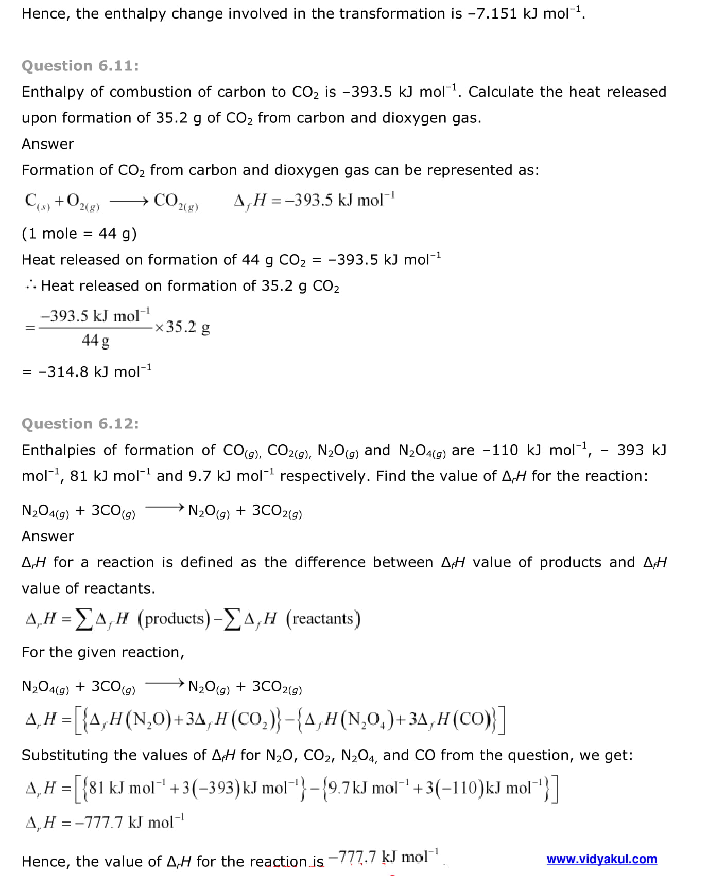 Be on the top of your study schedule with CLASS 11 NCERT Chemistry Solution Chapter 6 Thermodynamics by Vidyakul. All the solutions to the exercises in Class 11 NCERT are formulated by the experienced teachers at Vidyakul.