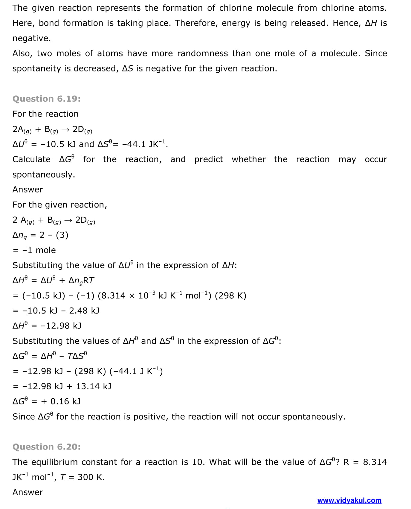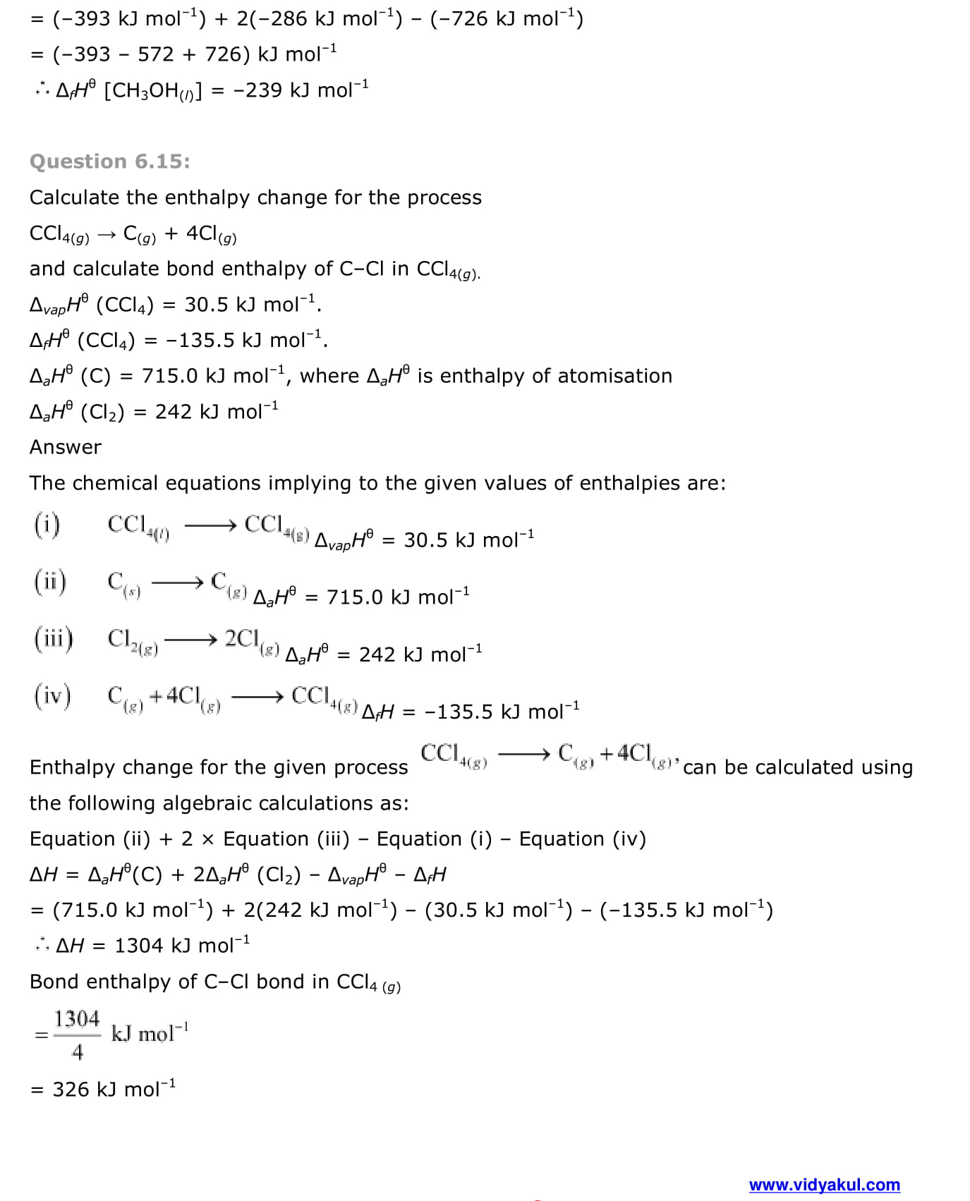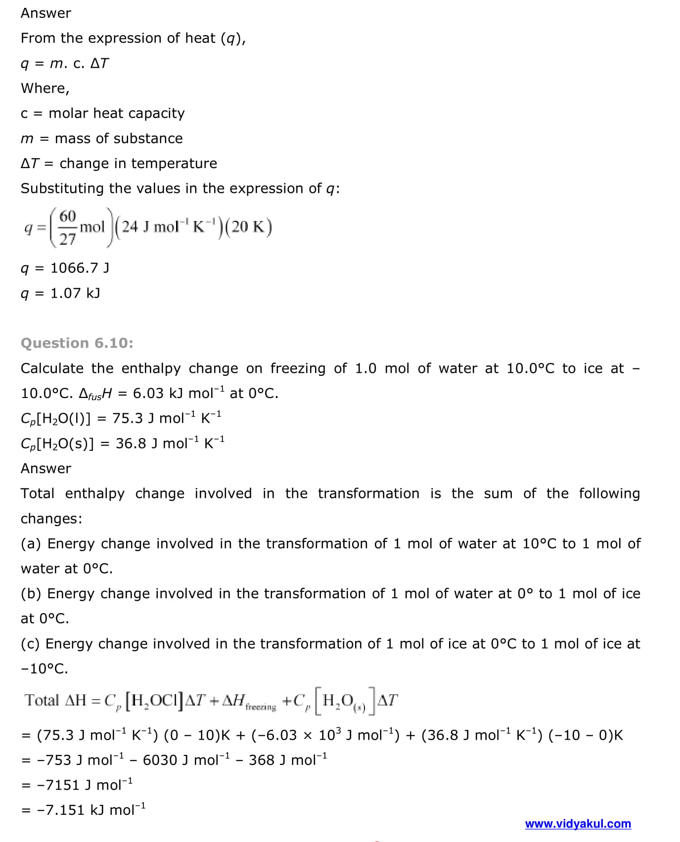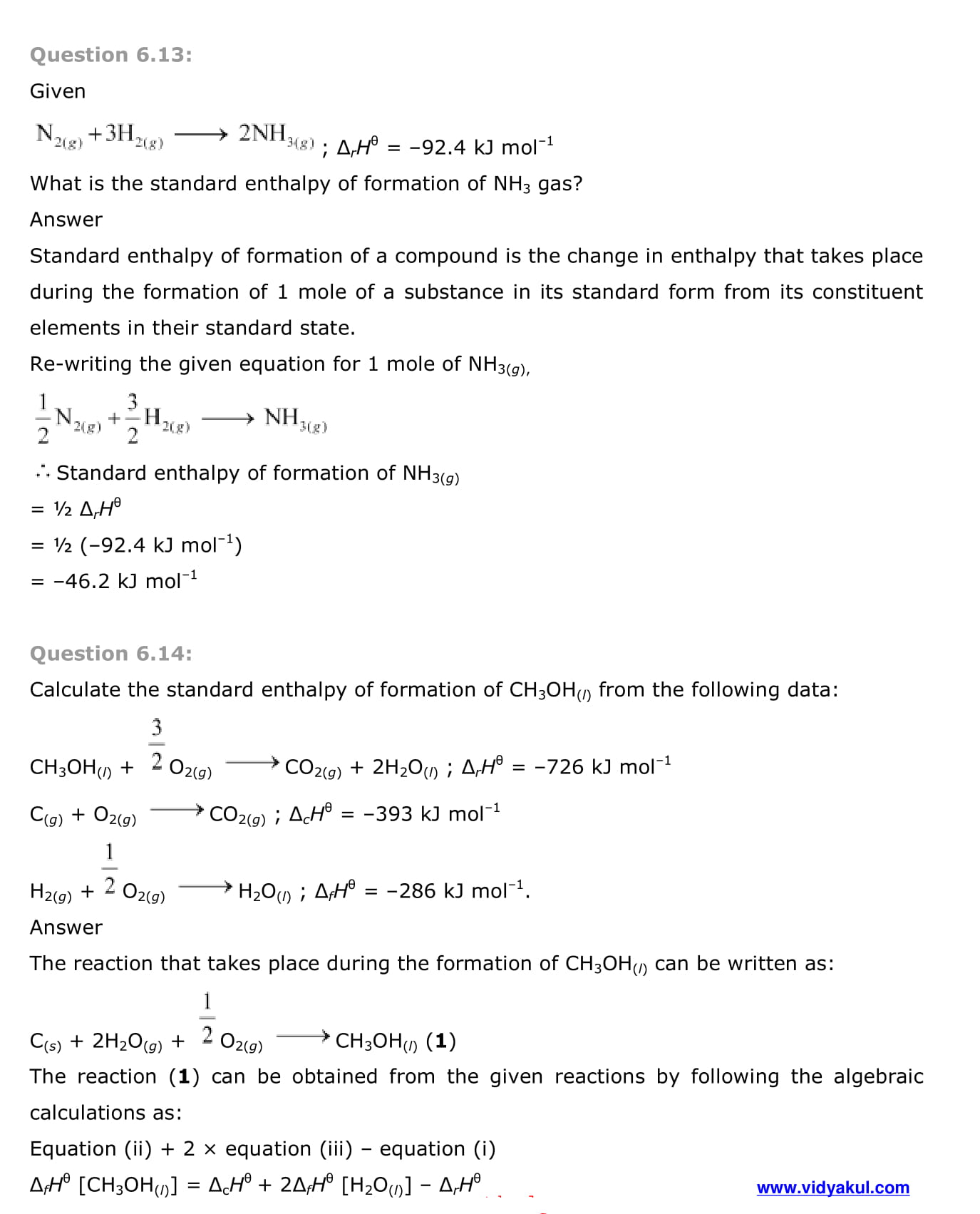 Be on the top of your study schedule with CLASS 11 NCERT Chemistry Solution Chapter 6 Thermodynamics by Vidyakul. All the solutions to the exercises in Class 11 NCERT are formulated by the experienced teachers at Vidyakul.