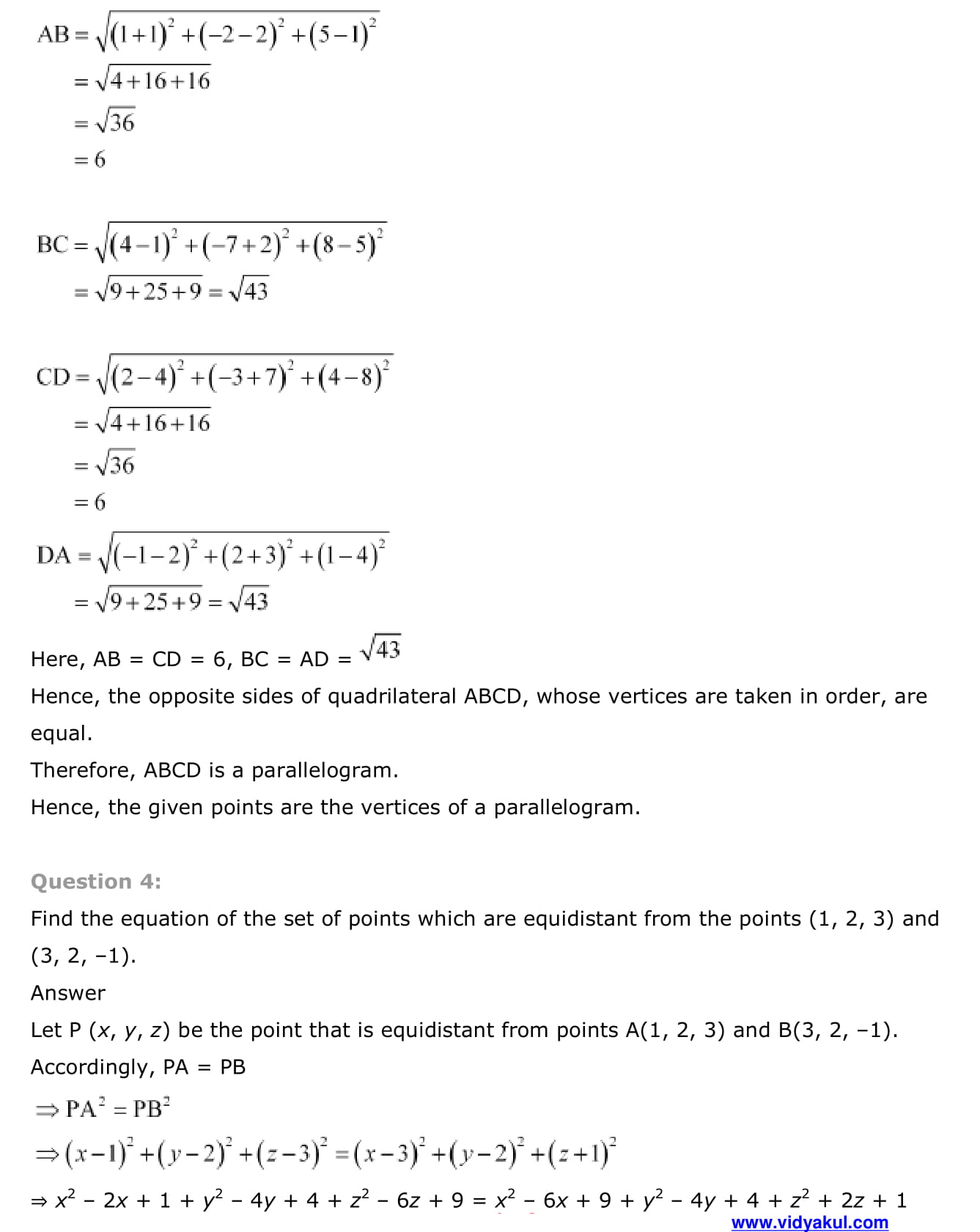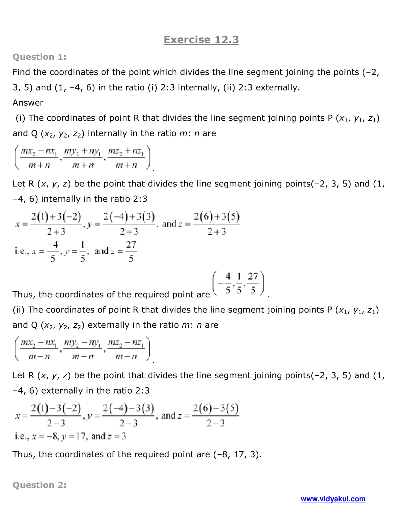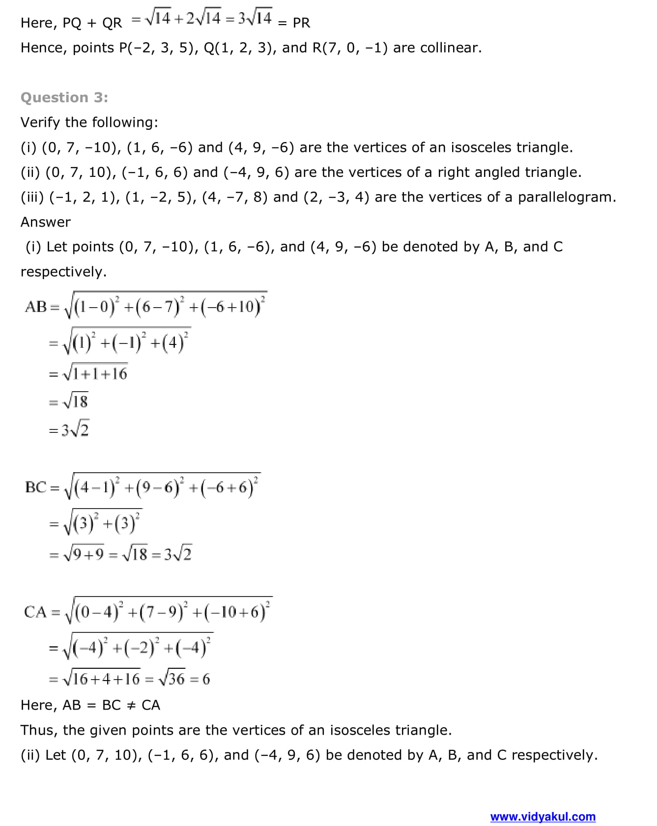 Introduction to Three Dimensional Geometry by Vidyakul’s expert teachers. The solutions are available in PDF format which is downloadable free of cost.