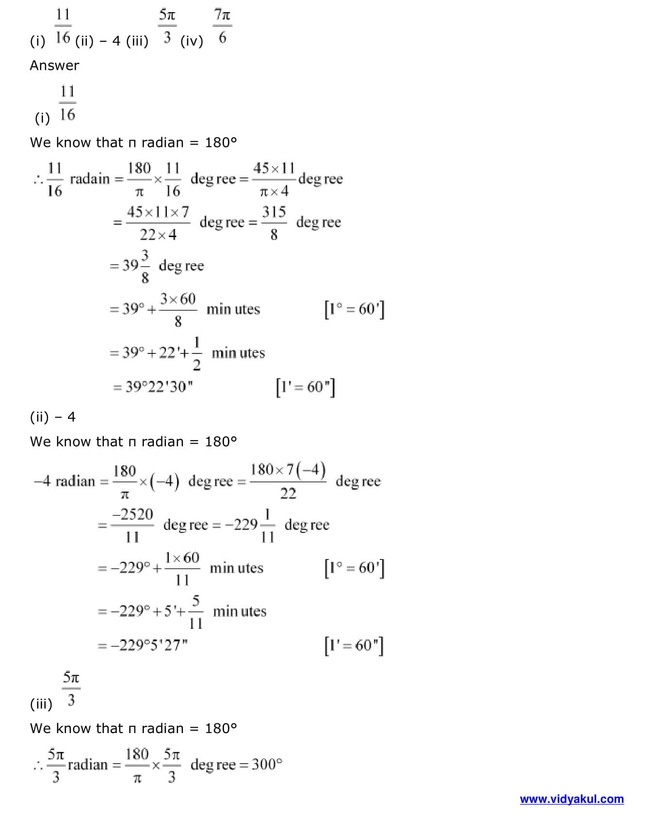 - Relation between degree and radian