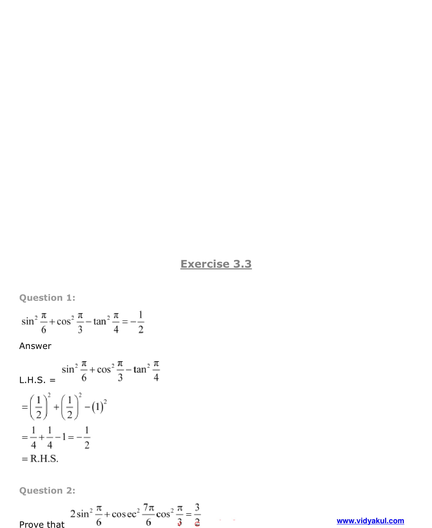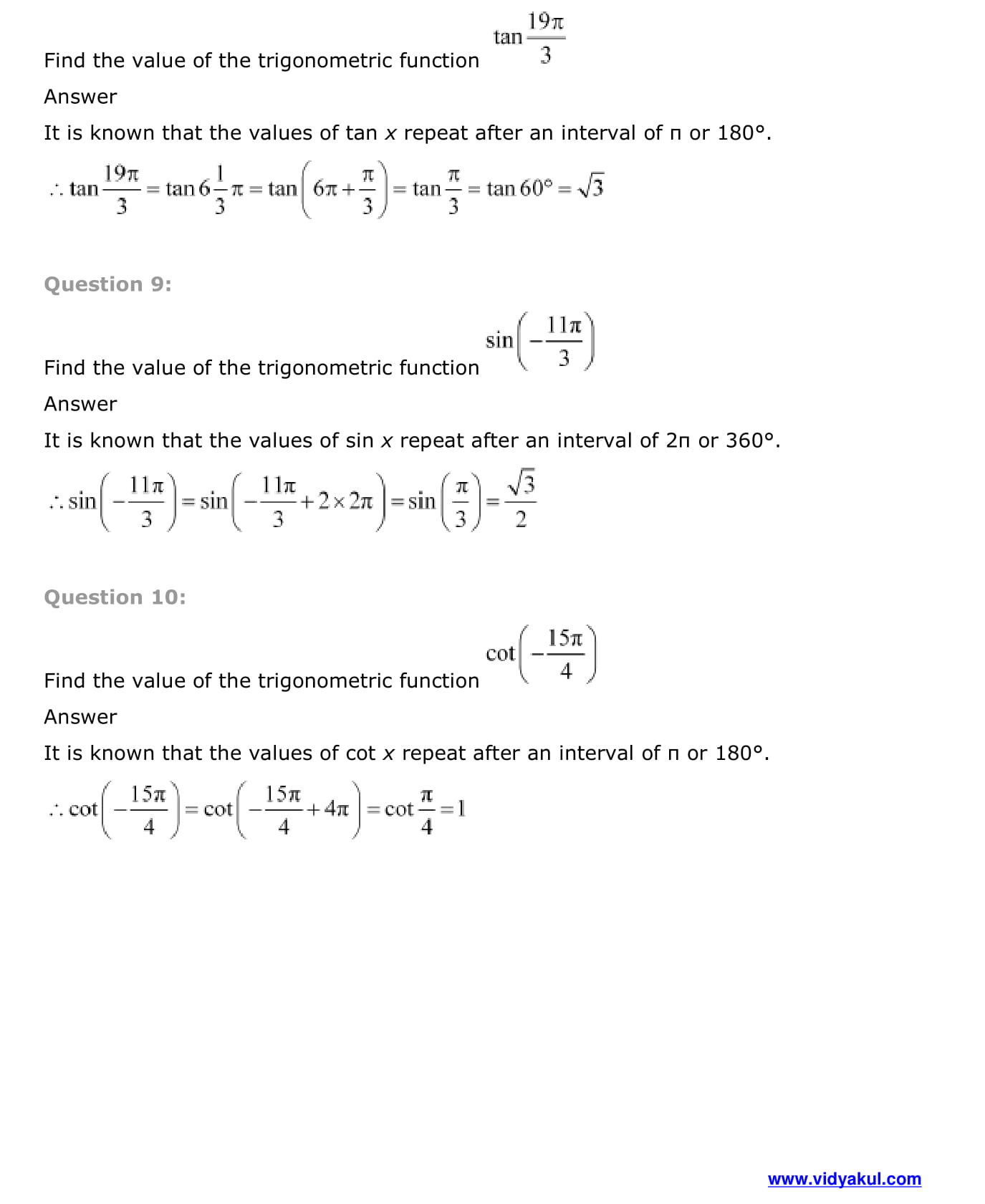 Simplify the complex Chapters like Trigonometric Functions with Vidyakul’s NCERT Solutions for Class 11 Chapter 3 Trignometric Functions.