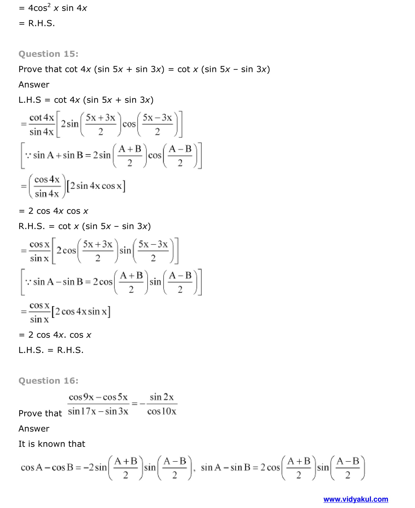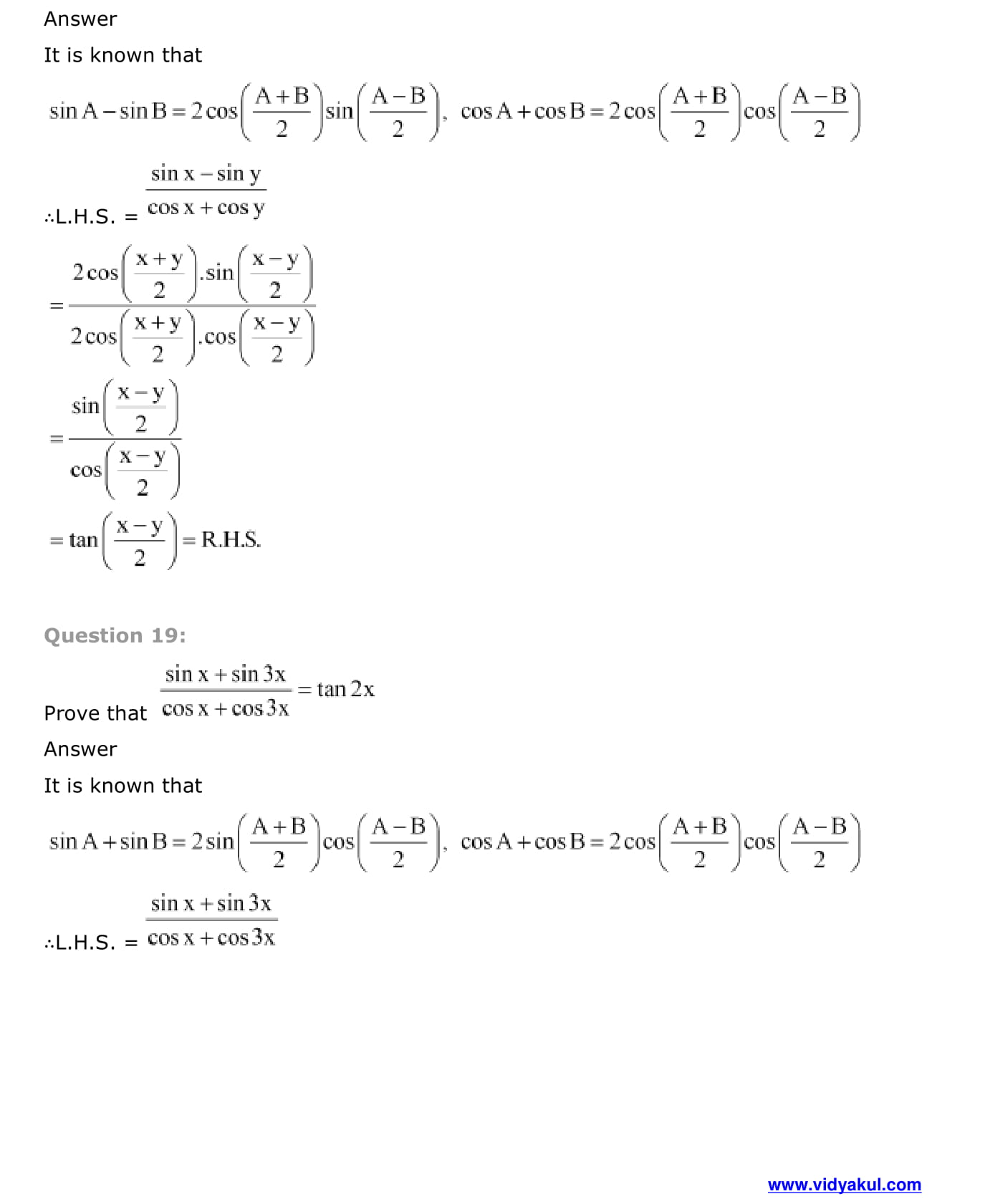 - Trigonometric Functions of Sum and Difference of Two Angles