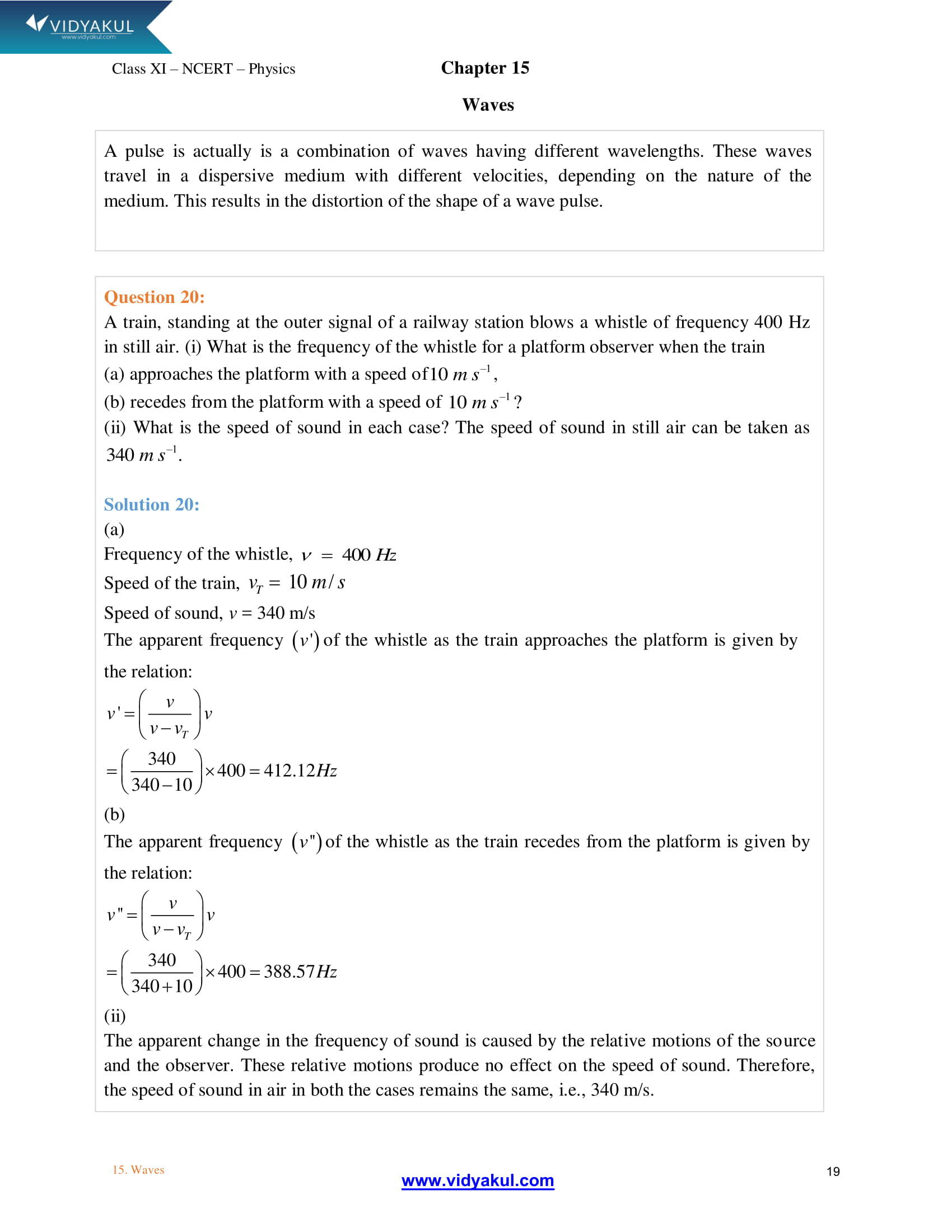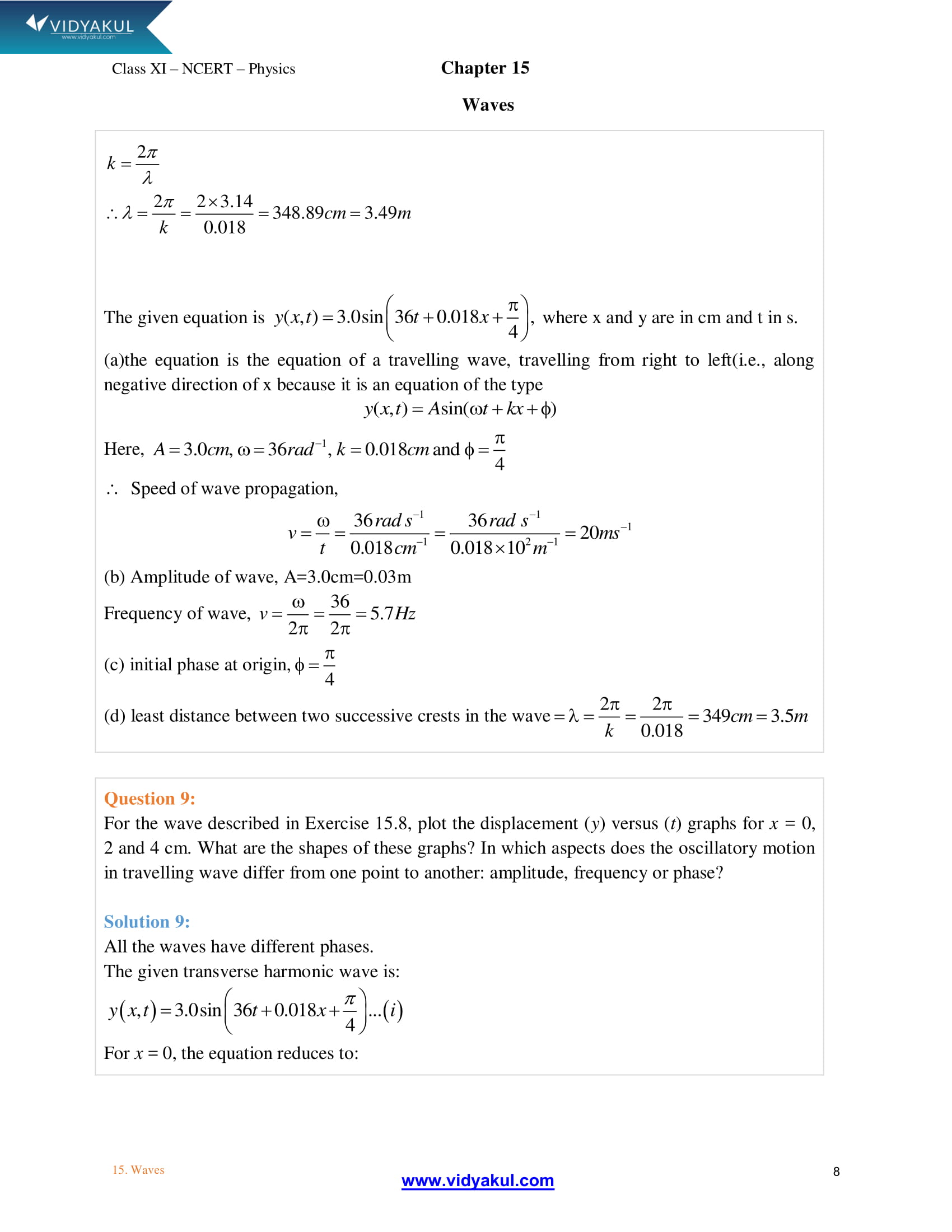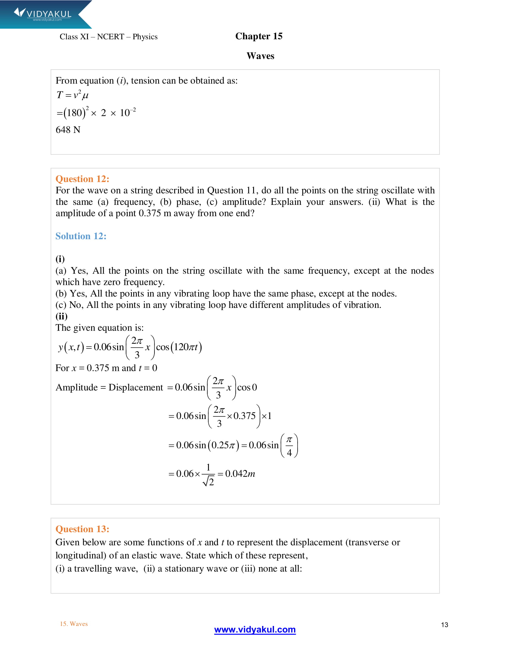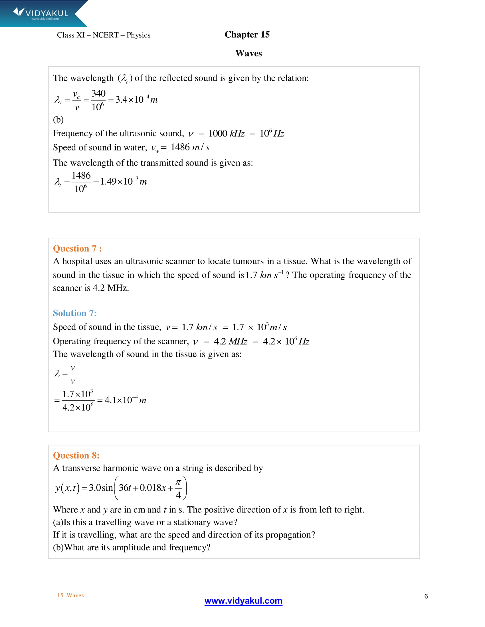 Build up a strong base for Class 11 Physics with NCERT Solutions for Class 11 Physics Chapter 15 Waves with Vidyakul. You can find solutions to all the exercises given in NCERT in the form of free download PDFs.