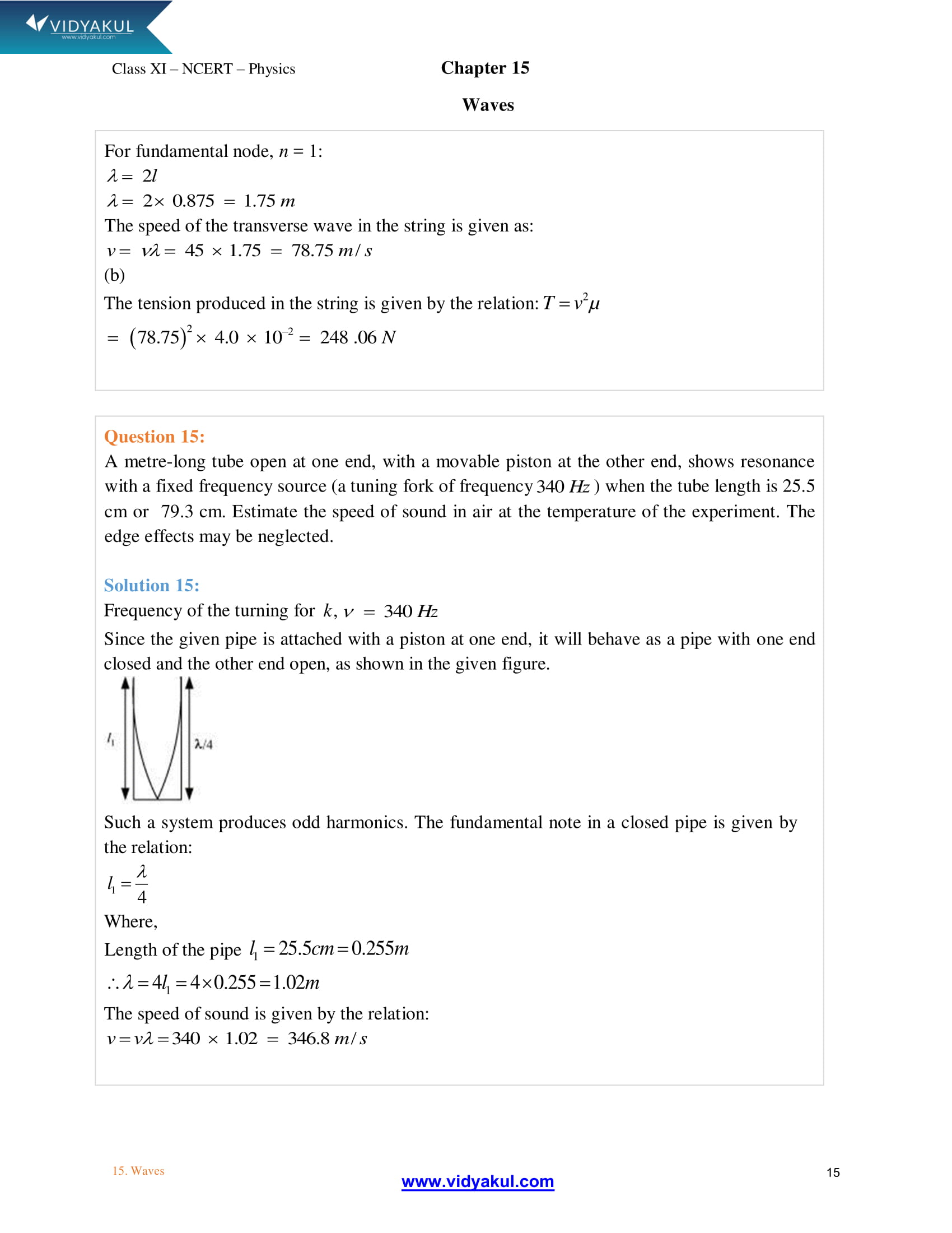 NCERT Solutions Class 11 Physics Waves Chapter 15 - PDF Download