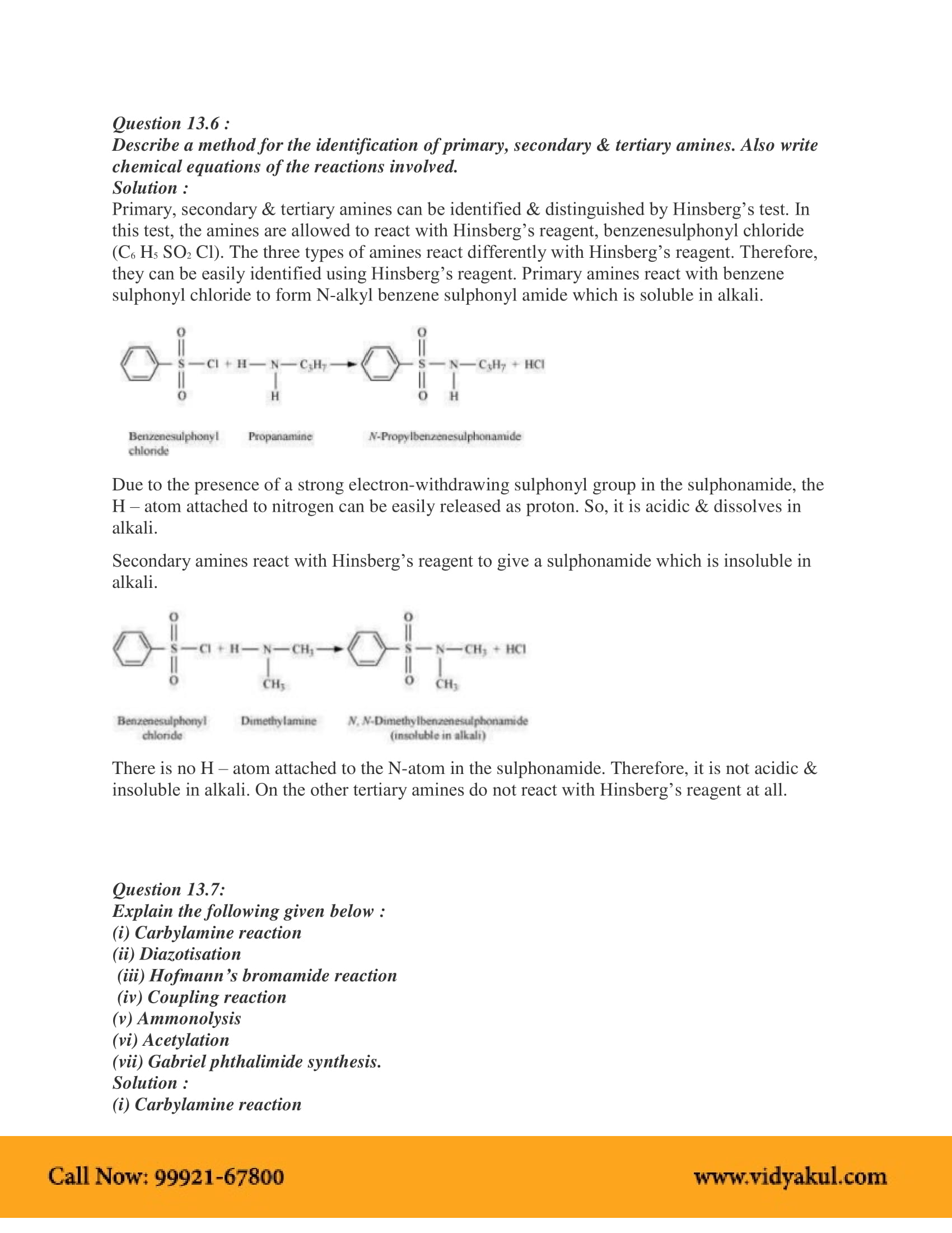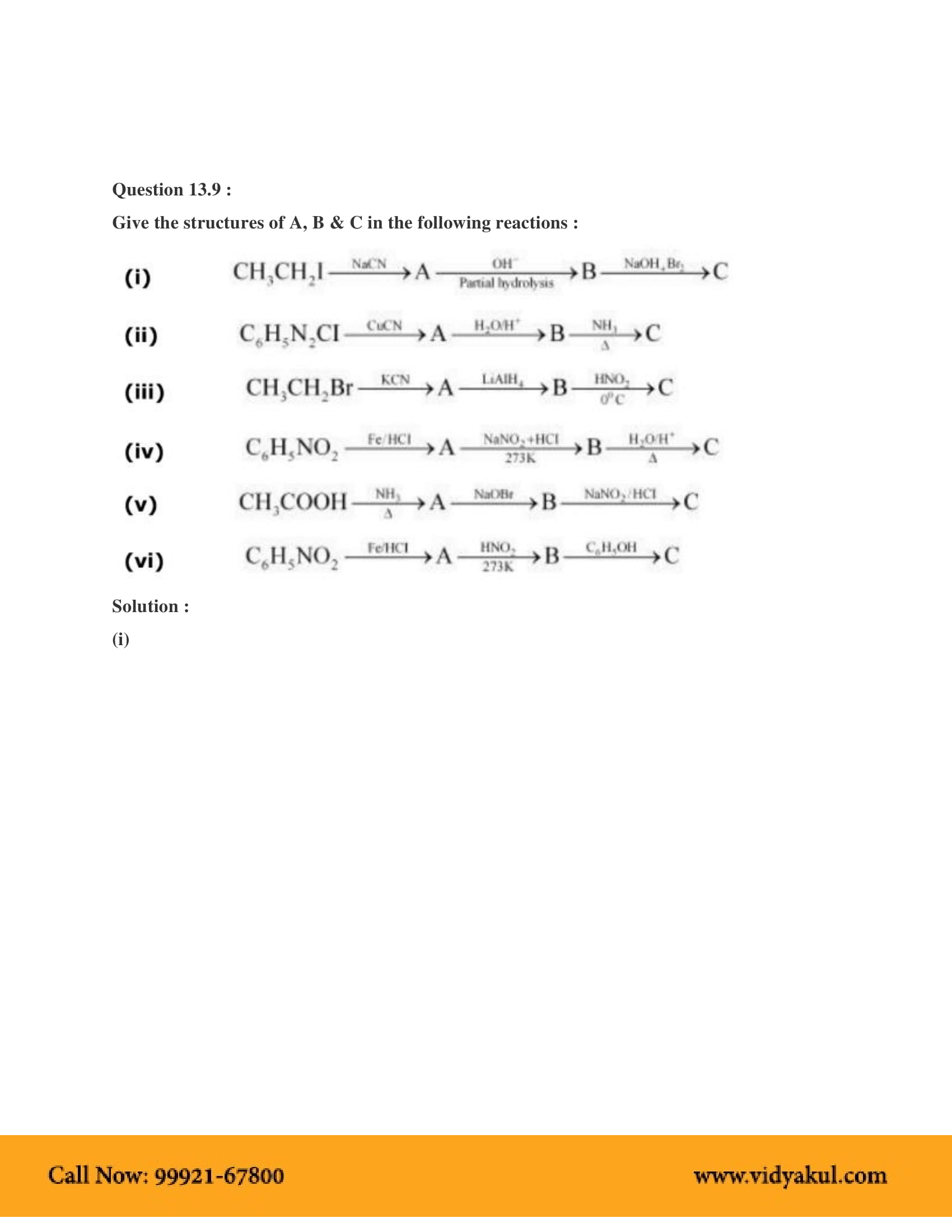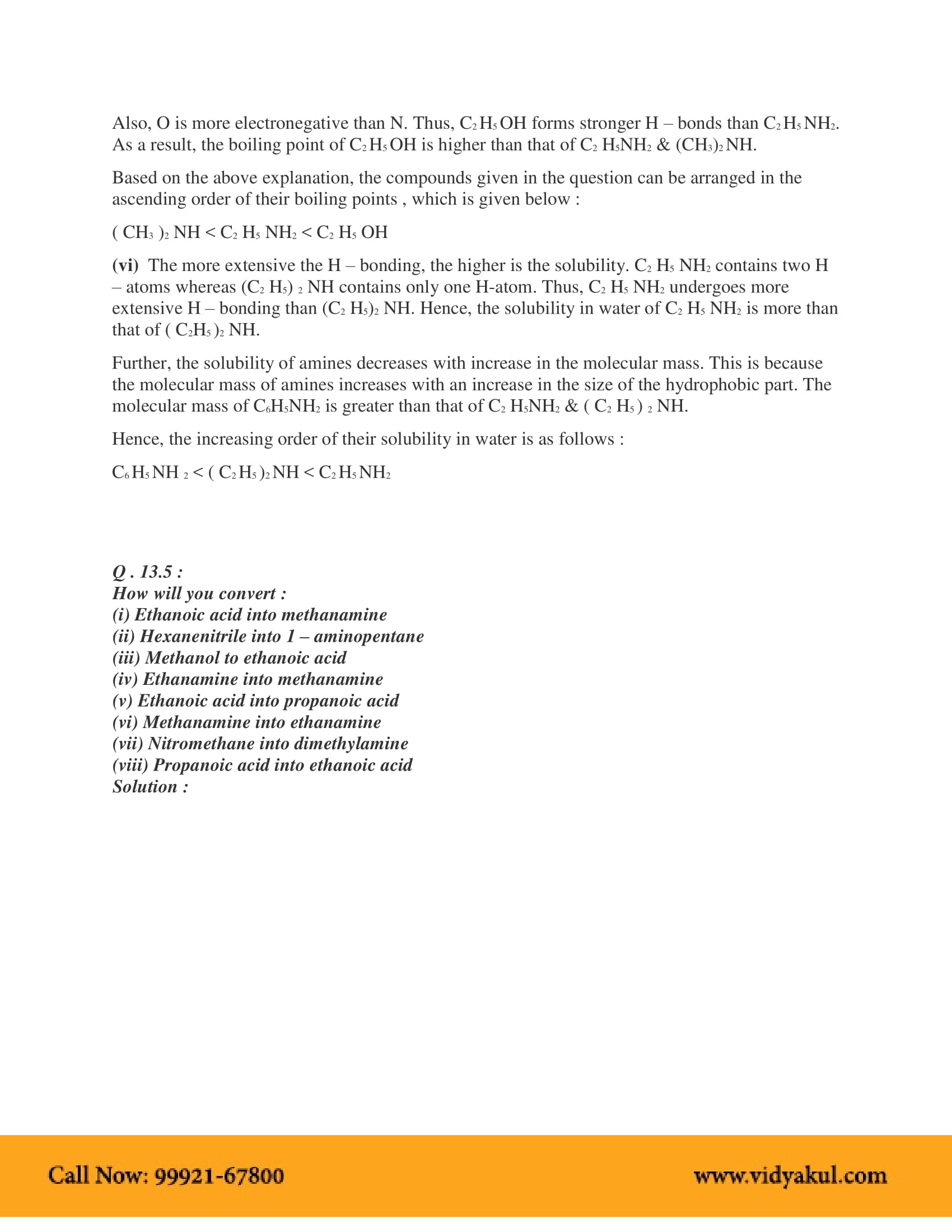 Vidyakul brings to you PDF, downloadable version of NCERT Solution Class 12 Chemistry Chapter 13 Organic Compounds Containing Nitrogen solved by our panel of experienced teachers as per NCERT (CBSE) book guidelines. All Organic Compounds Containing Nitrogen exercise questions, notes with solutions will help you to revise complete syllabus with ease and score maximum marks. Cover all important questions and solution of Chapter – 13 Organic Compounds Containing Nitrogen. Register now and get access to our videos for a detailed explanation of the concept and other resources to help you with this chapter in depth.
