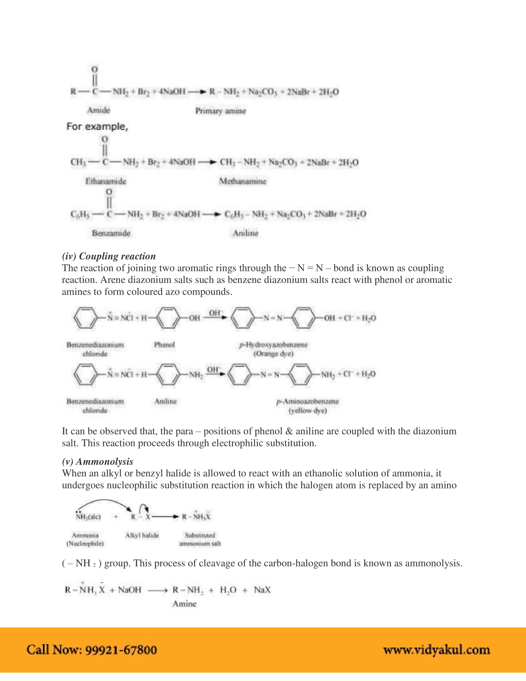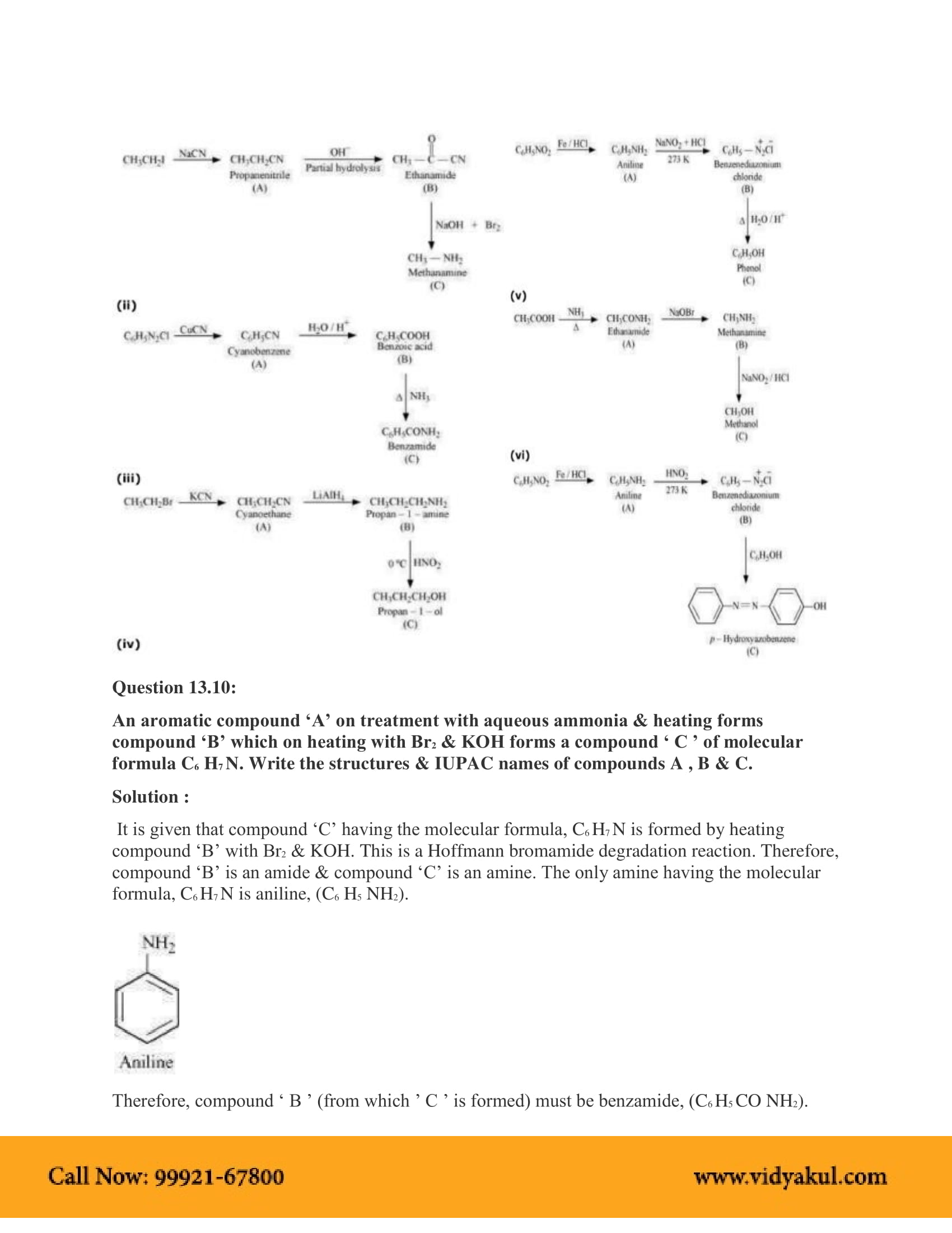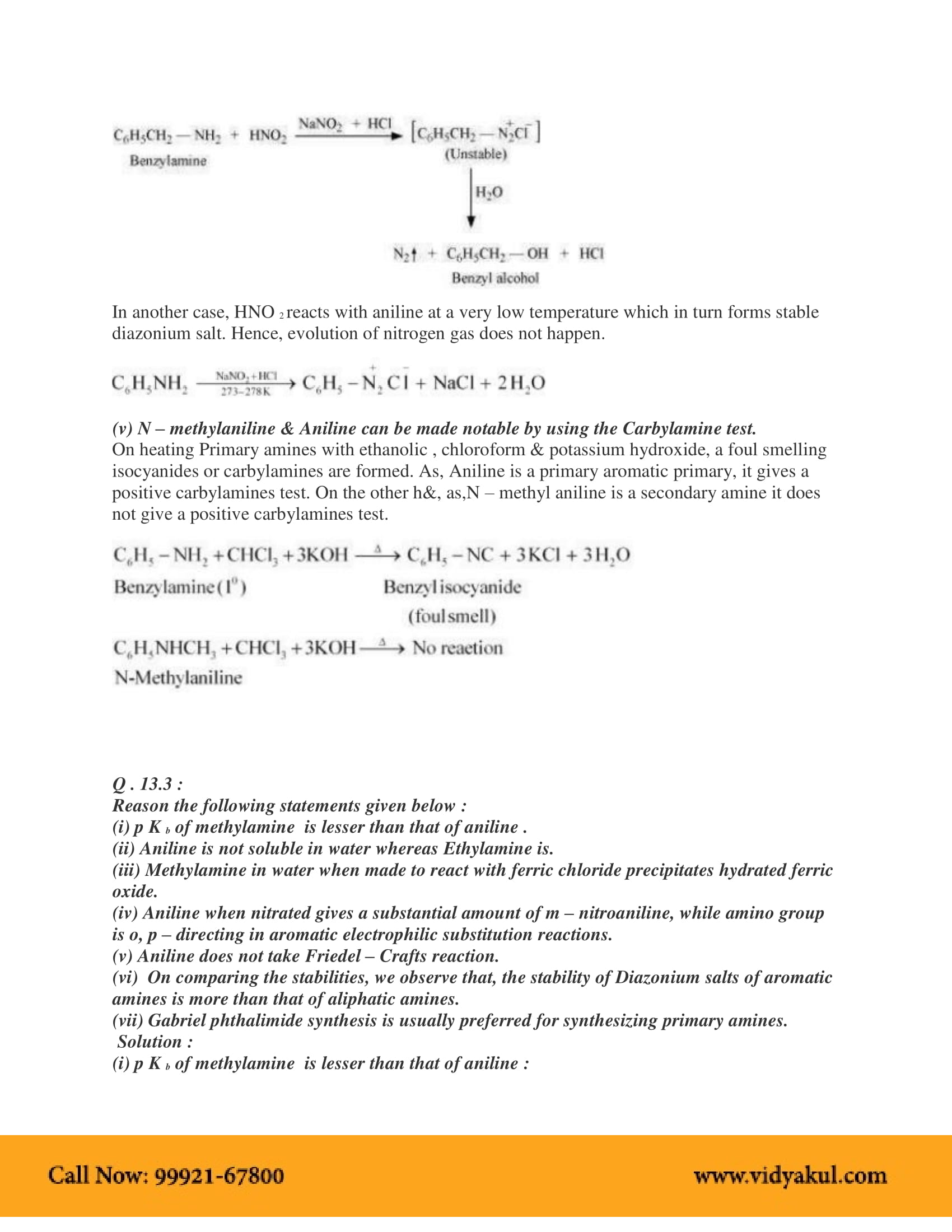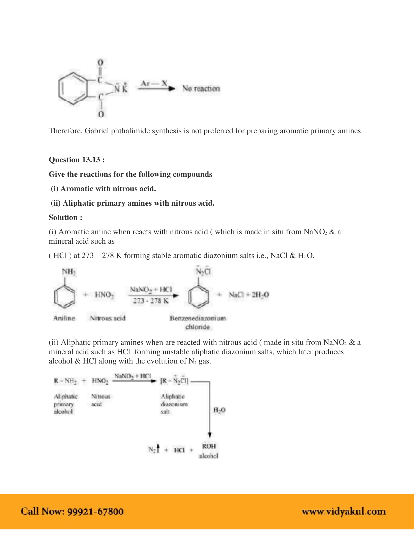 Vidyakul brings to you PDF, downloadable version of NCERT Solution Class 12 Chemistry Chapter 13 Organic Compounds Containing Nitrogen solved by our panel of experienced teachers as per NCERT (CBSE) book guidelines. All Organic Compounds Containing Nitrogen exercise questions, notes with solutions will help you to revise complete syllabus with ease and score maximum marks. Cover all important questions and solution of Chapter – 13 Organic Compounds Containing Nitrogen. Register now and get access to our videos for a detailed explanation of the concept and other resources to help you with this chapter in depth.
