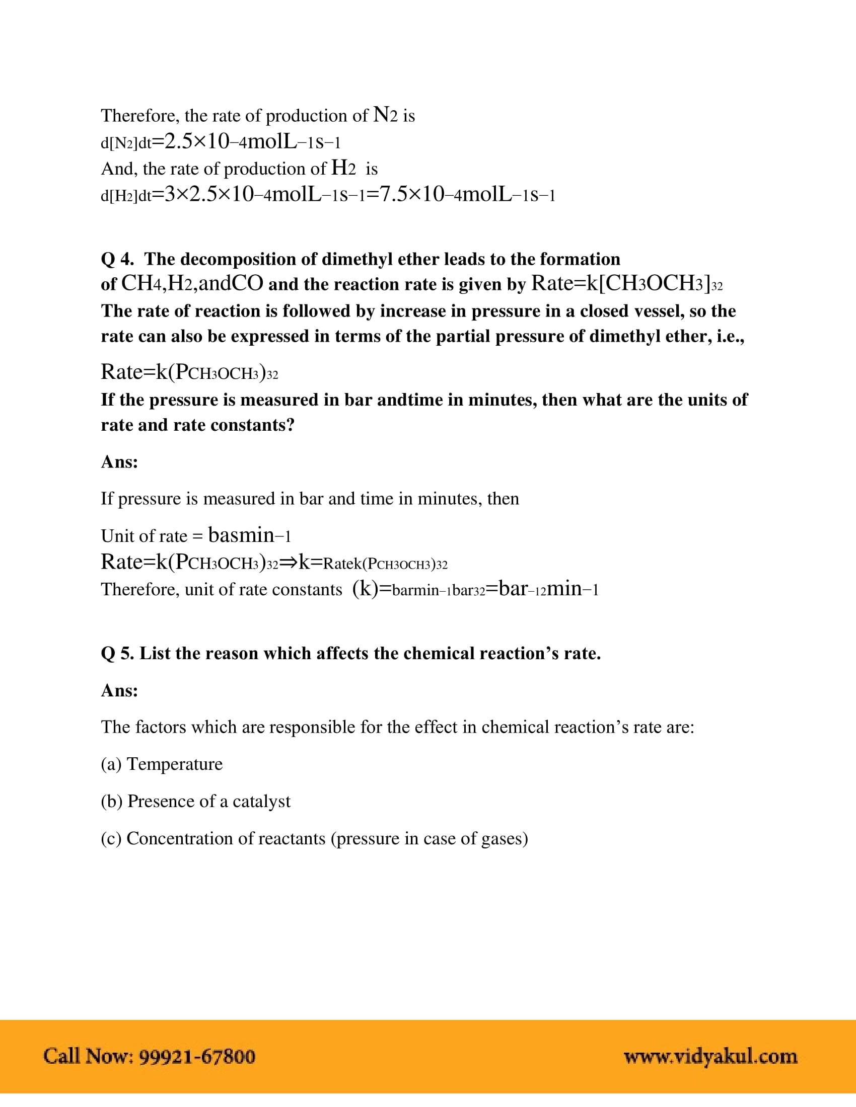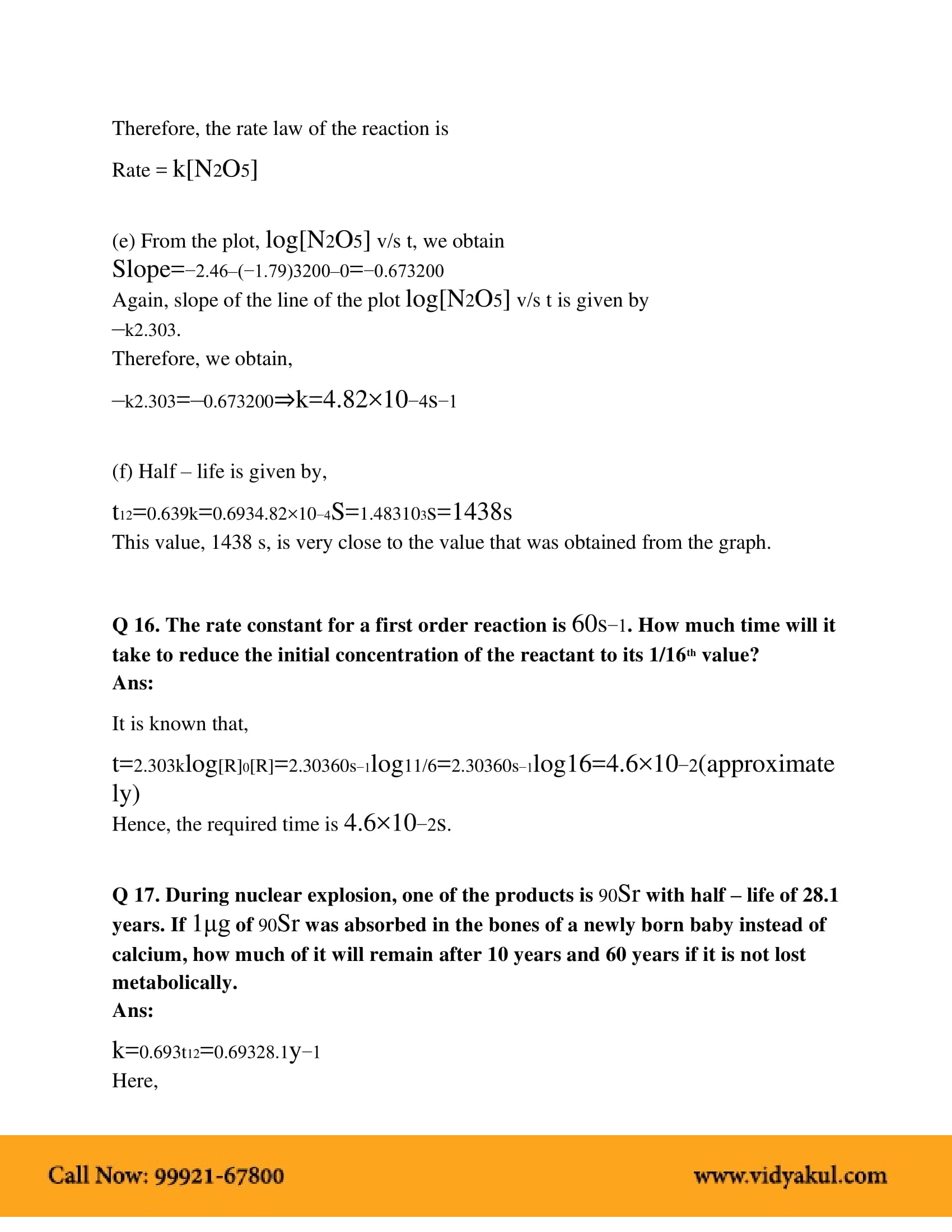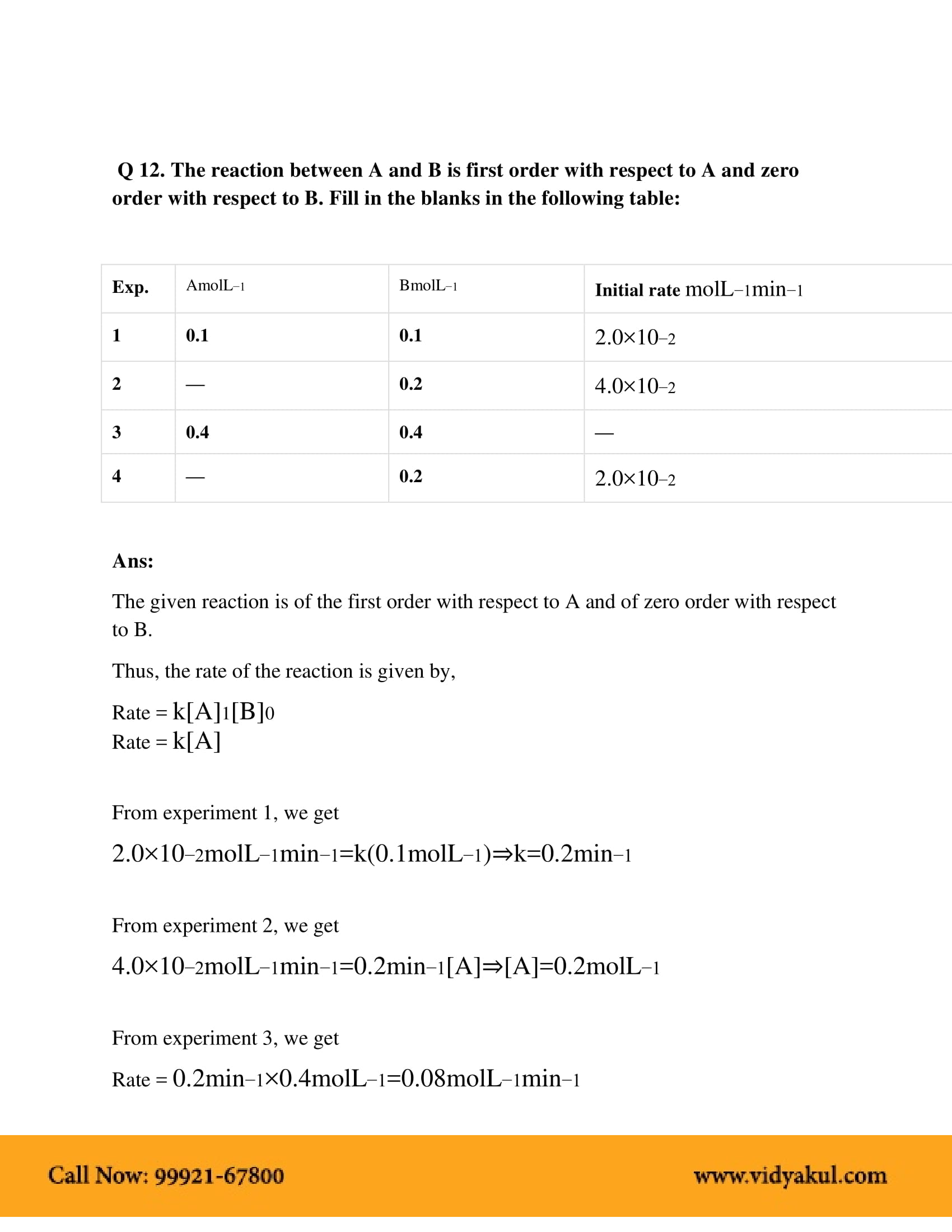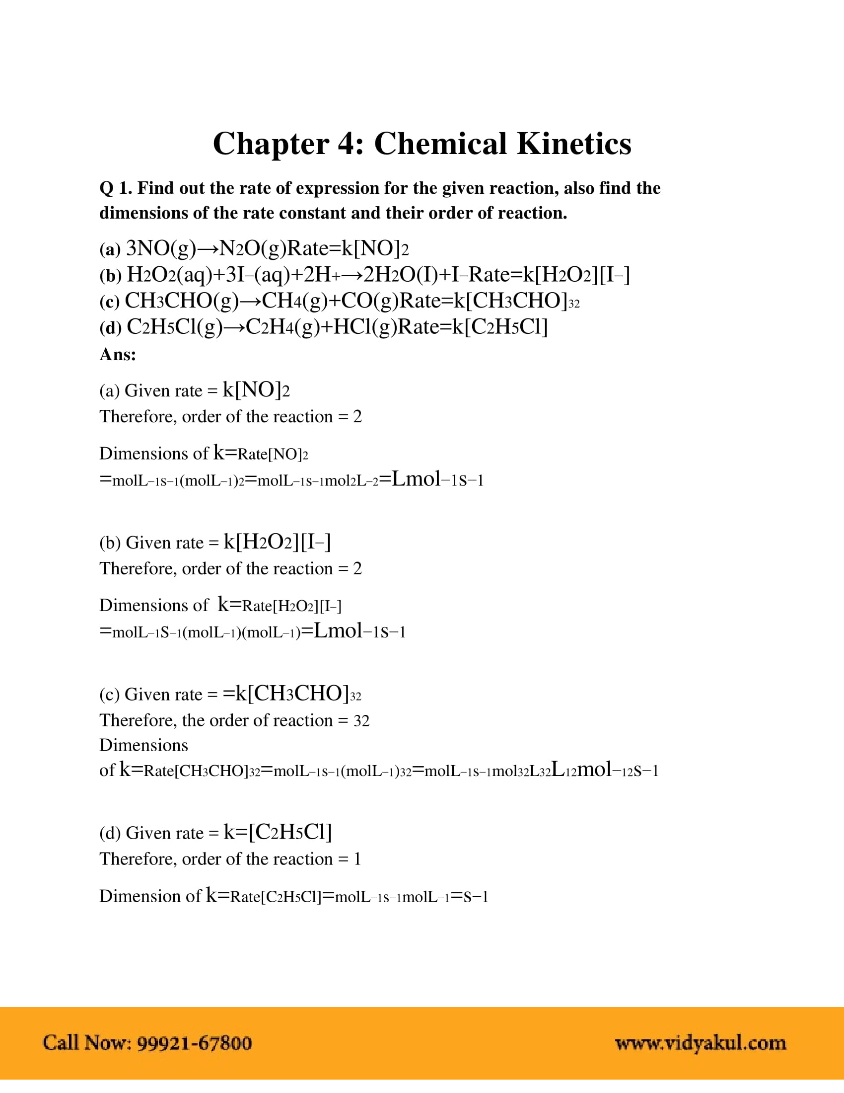 Vidyakul brings to you PDF, downloadable version of NCERT Solution Class 12 Chemistry Chapter 4 Chemical Kinetics solved by our panel of experienced teachers as per NCERT (CBSE) book guidelines. All Chemical Kinetics exercise questions, notes with solutions will help you to revise complete syllabus with ease and score maximum marks. Cover all important questions and solution of Chapter – 4 Chemical Kinetics. Register now and get access to our videos for a detailed explanation of the concept and other resources to help you with this chapter in depth.