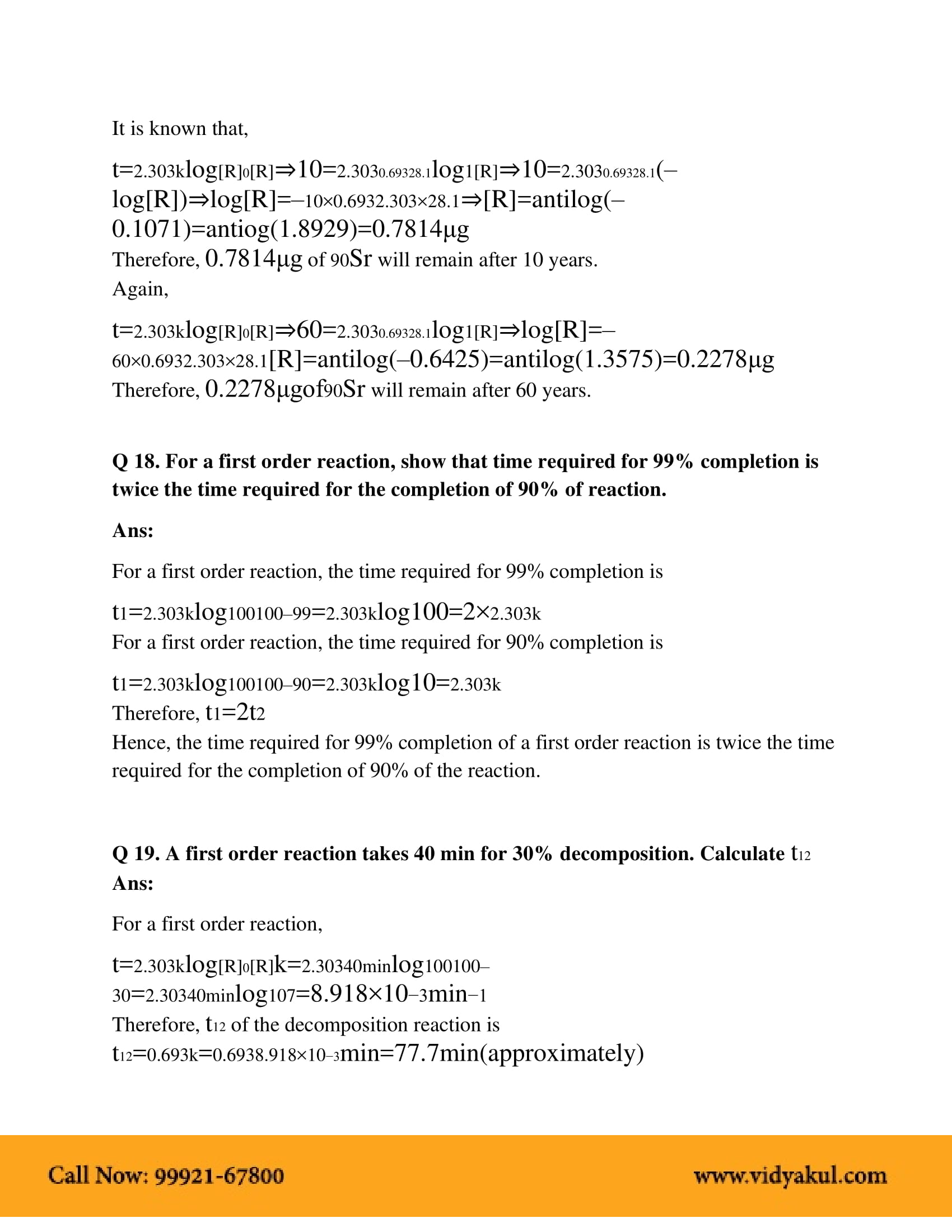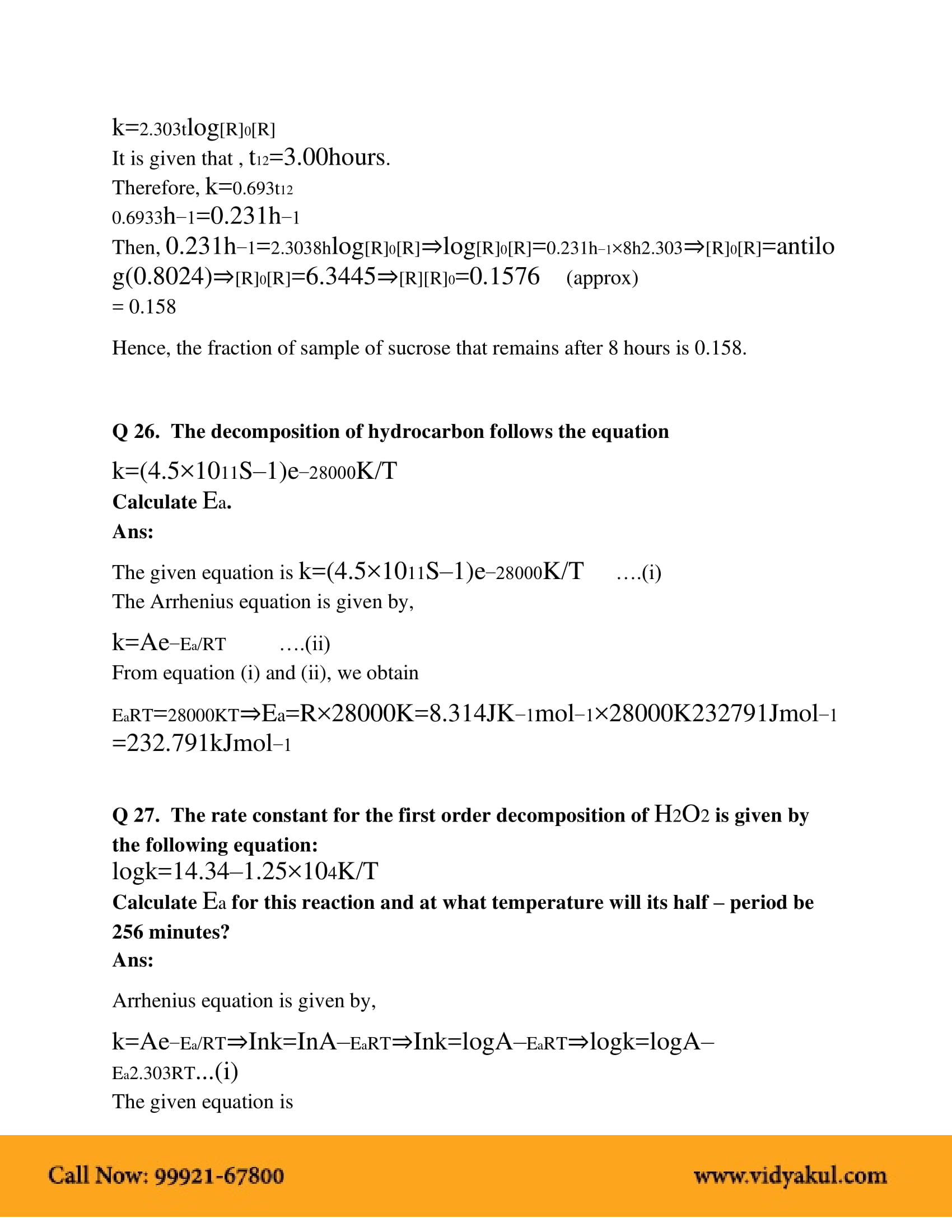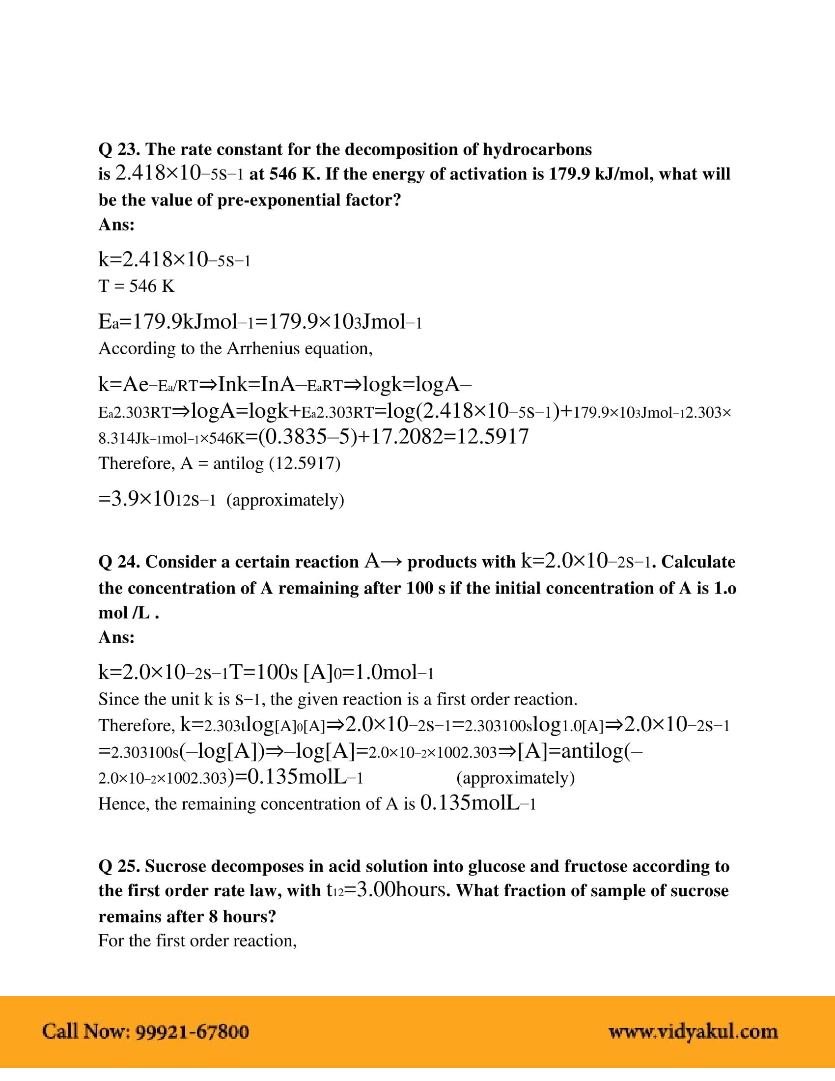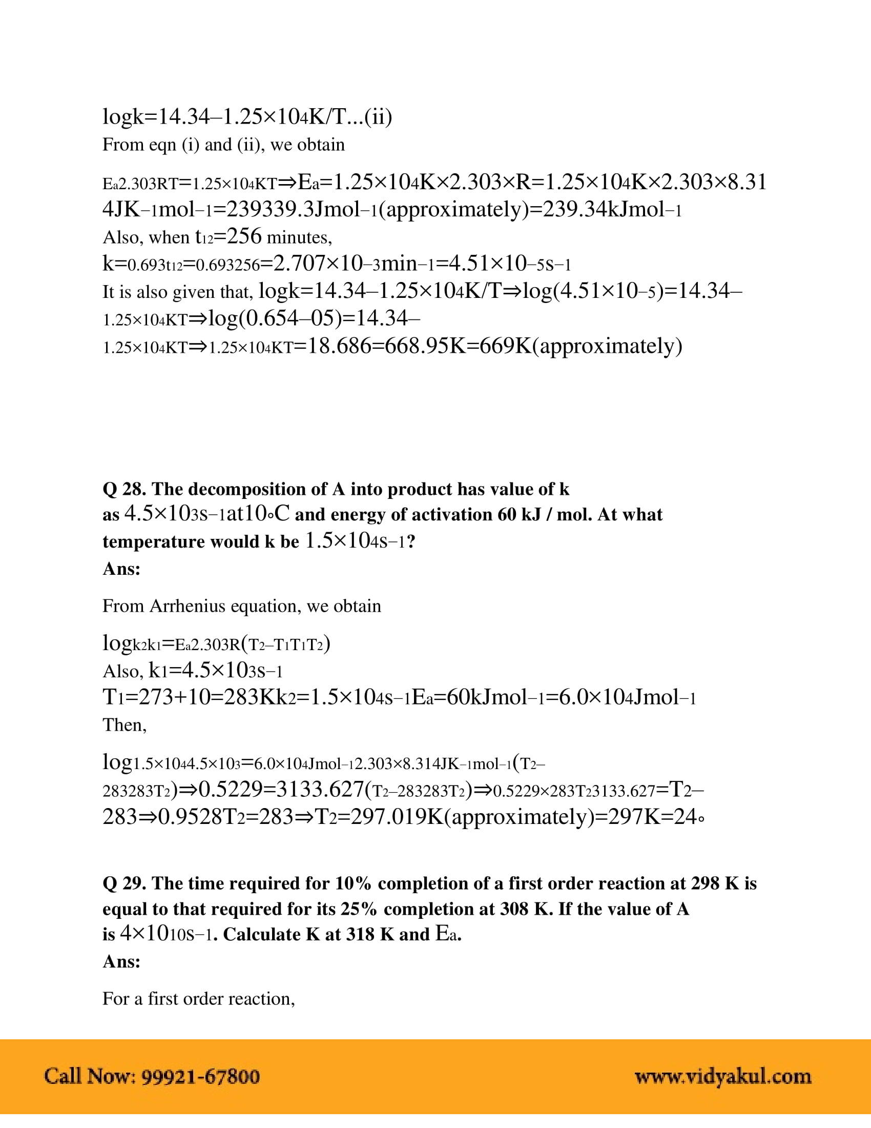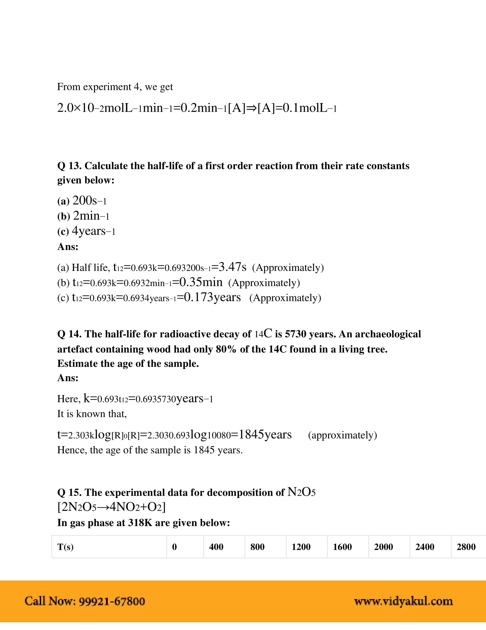 Vidyakul brings to you PDF, downloadable version of NCERT Solution Class 12 Chemistry Chapter 4 Chemical Kinetics solved by our panel of experienced teachers as per NCERT (CBSE) book guidelines. All Chemical Kinetics exercise questions, notes with solutions will help you to revise complete syllabus with ease and score maximum marks. Cover all important questions and solution of Chapter – 4 Chemical Kinetics. Register now and get access to our videos for a detailed explanation of the concept and other resources to help you with this chapter in depth.