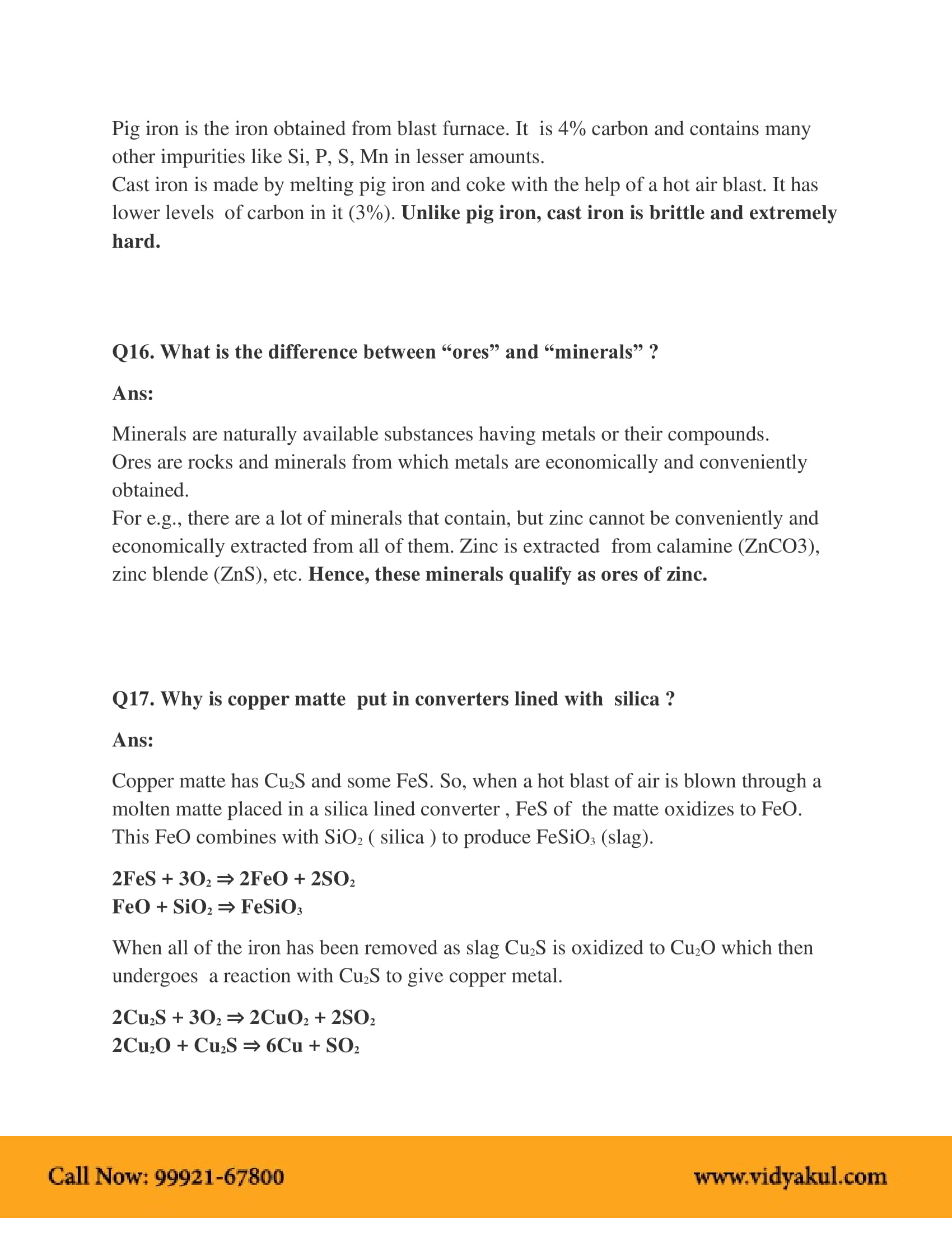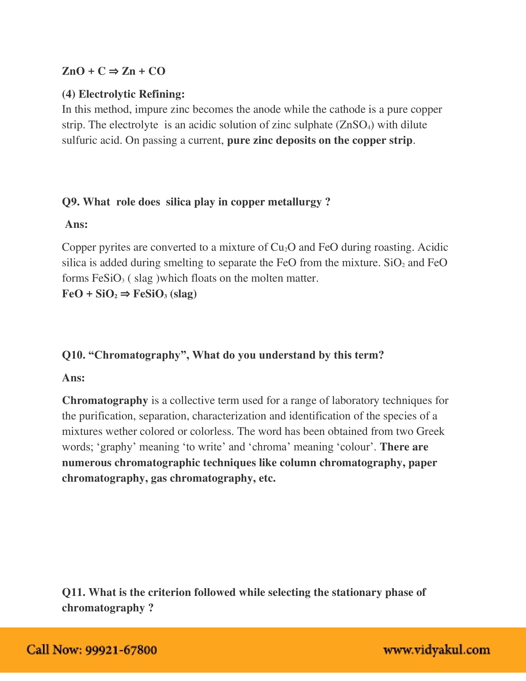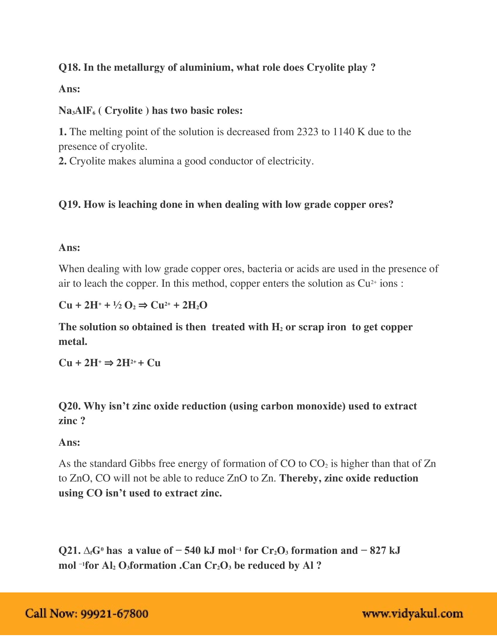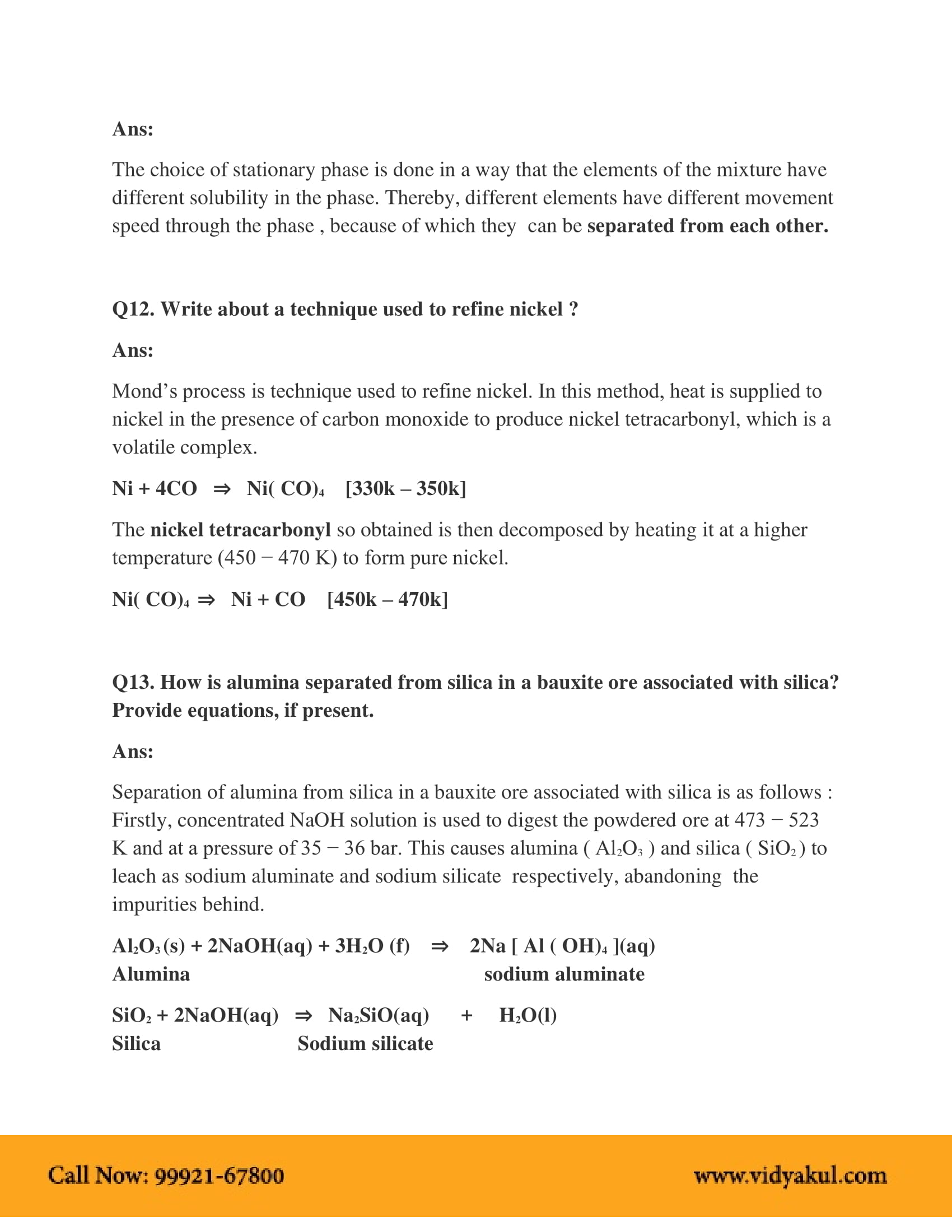 Vidyakul brings to you PDF, downloadable version of NCERT Solution Class 12 Chemistry Chapter 6 General Principles and Processes Of Isolation Of Elements solved by our panel of experienced teachers as per NCERT (CBSE) book guidelines. All General Principles and Processes Of Isolation Of Elements exercise questions, notes with solutions will help you to revise