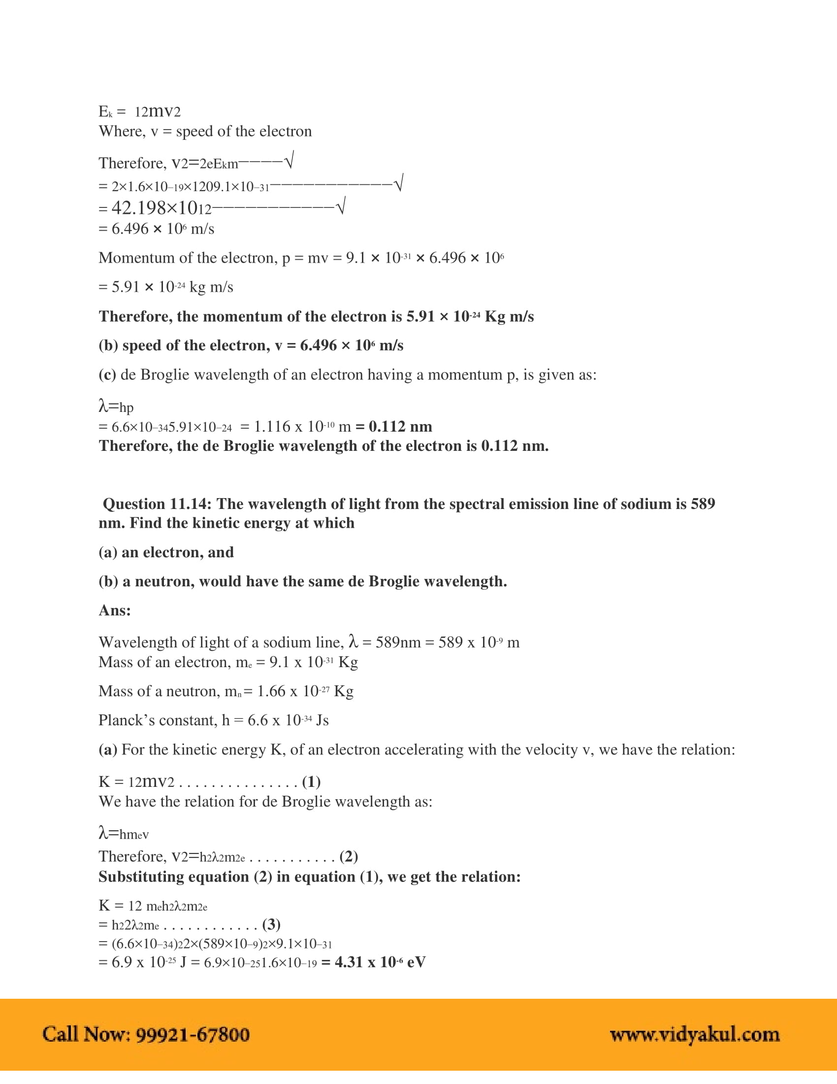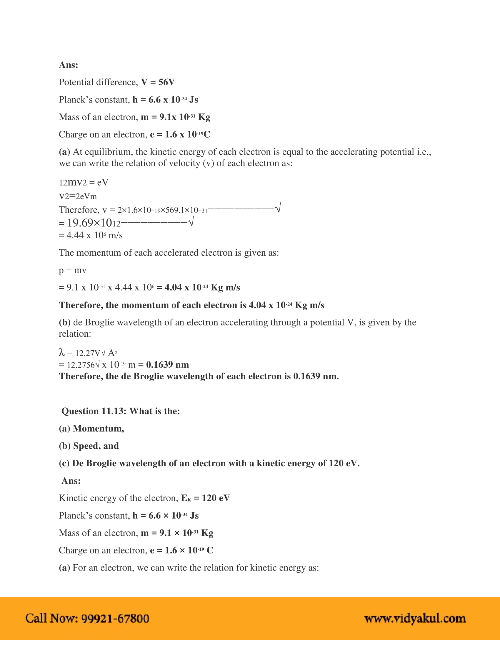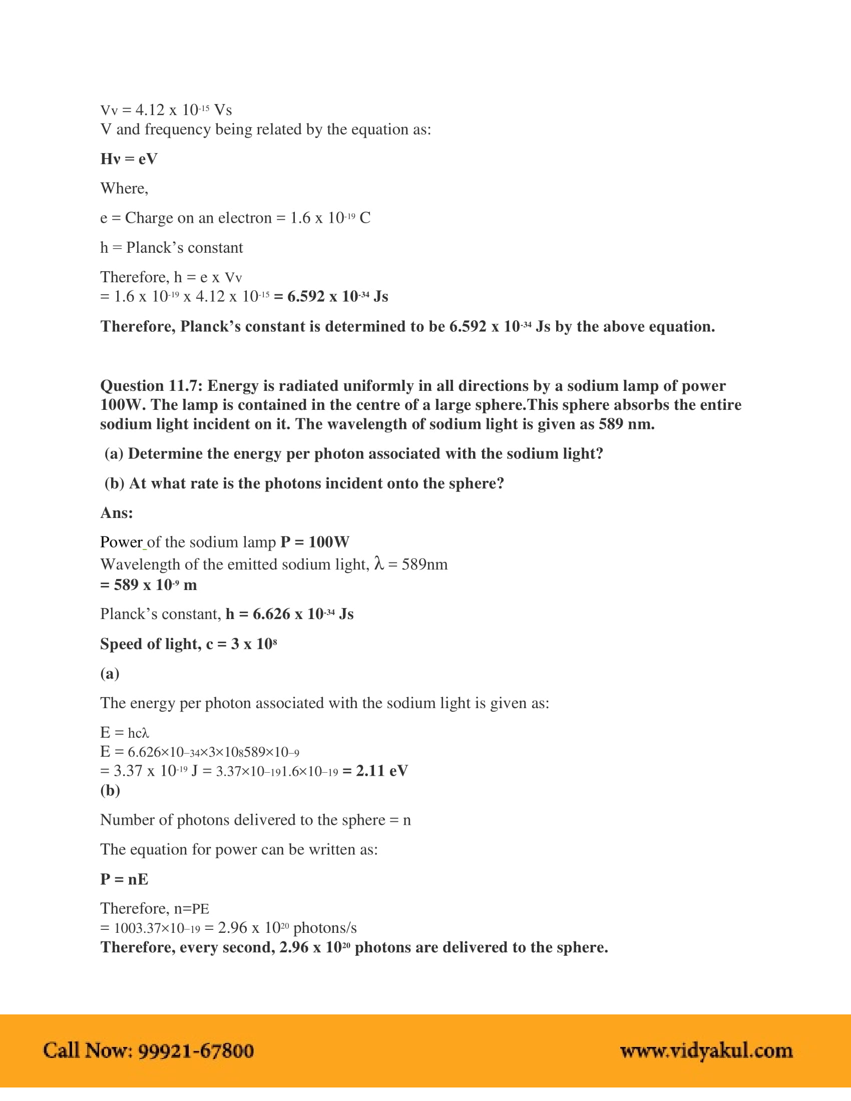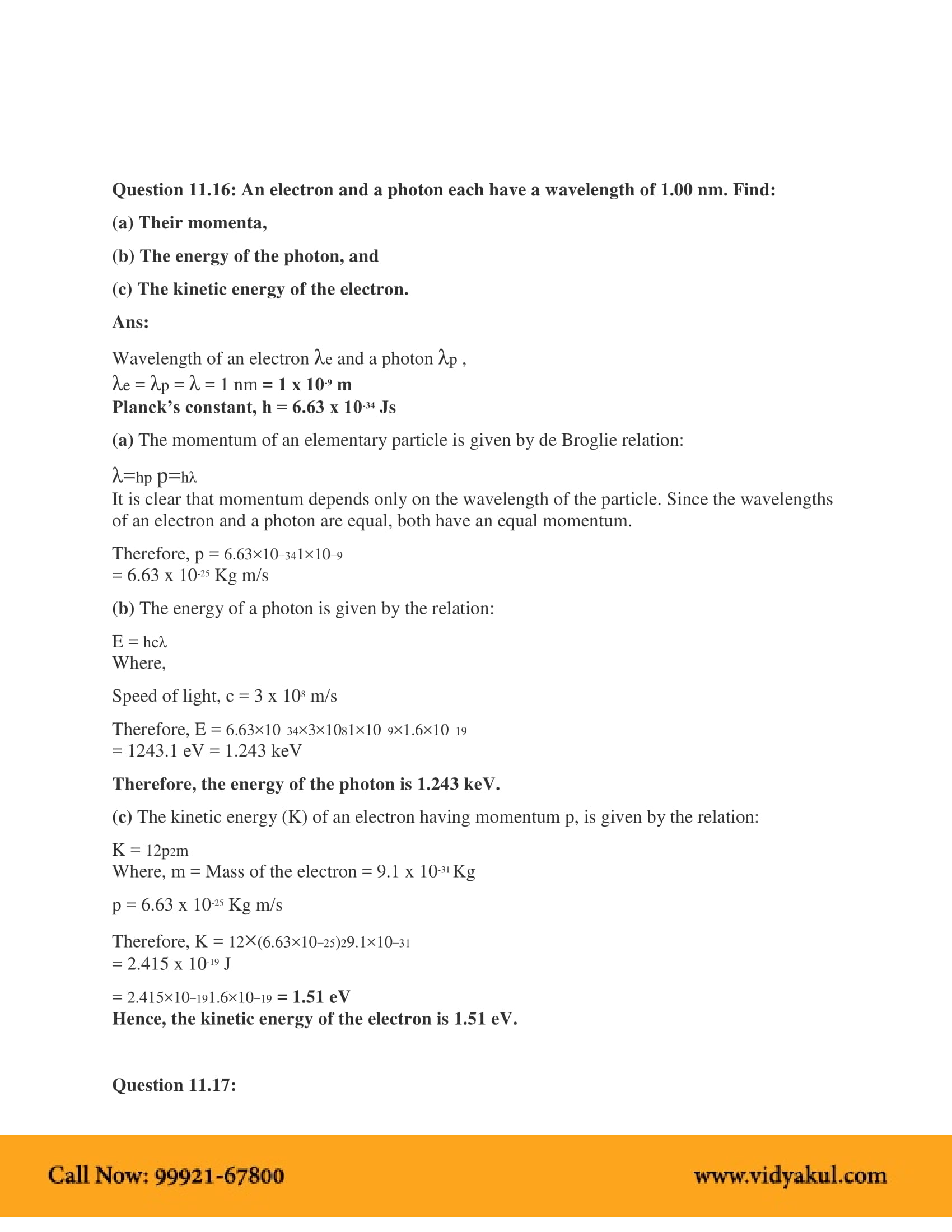 Vidyakul brings to you PDF, downloadable version of NCERT Solutions for Class 12 Physics Chapter 11 Dual Nature of Radiation And Matter solved by our panel of experienced teachers as per NCERT (CBSE) book guidelines. All Dual Nature of Radiation And Matter exercise questions, notes with solutions will help you to revise