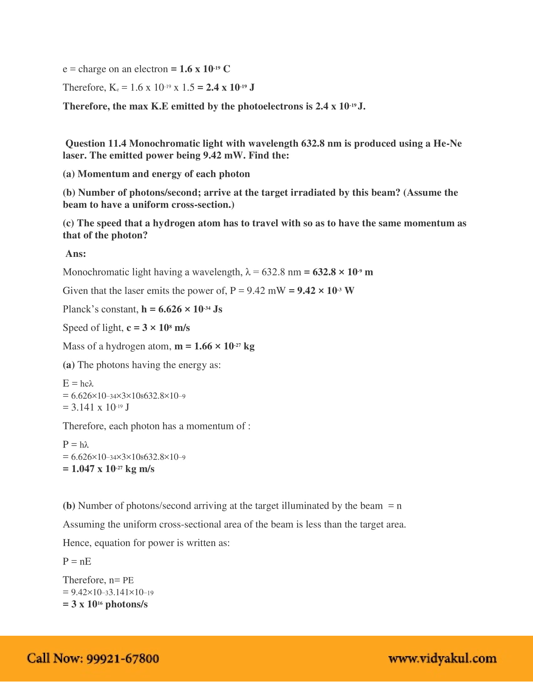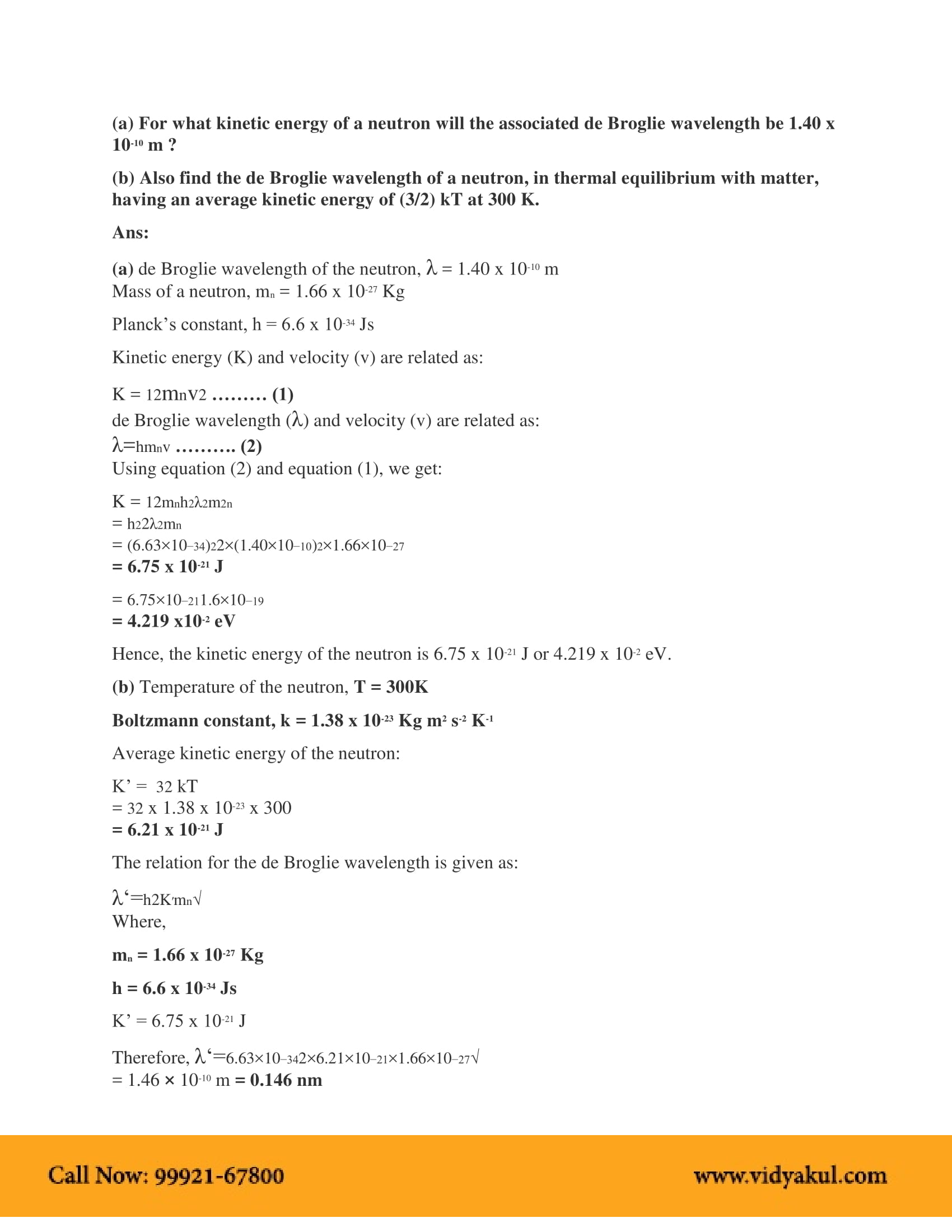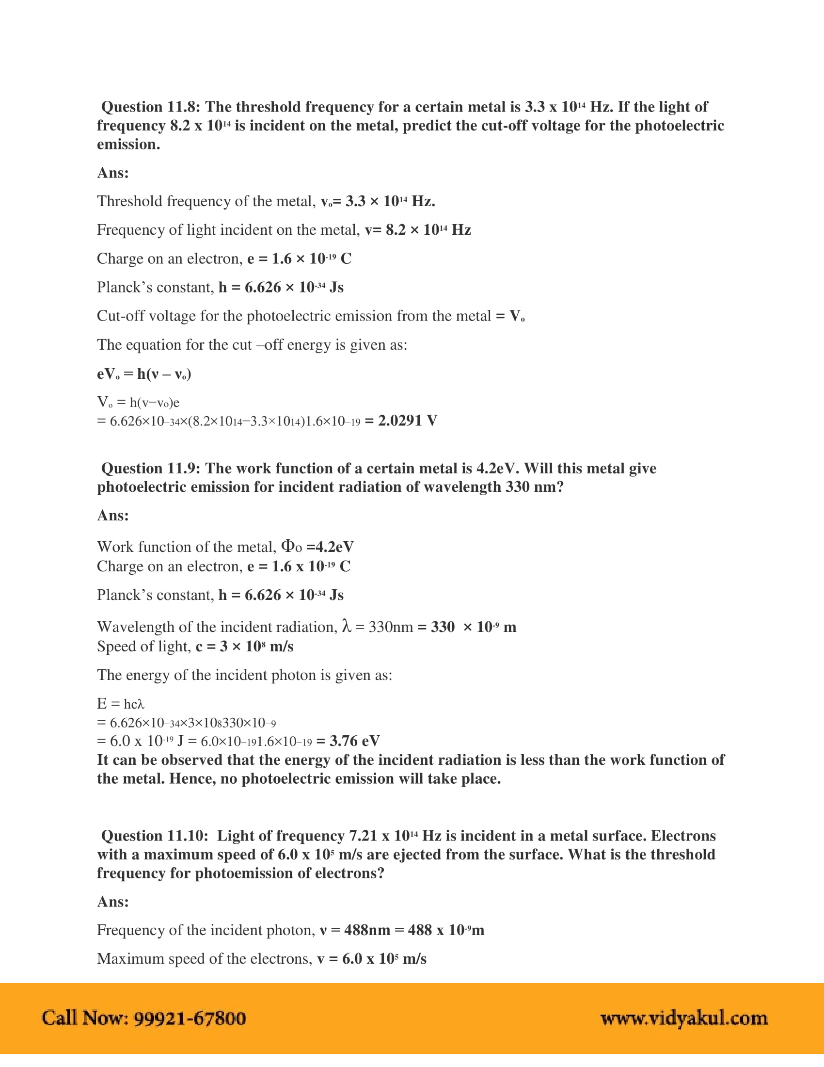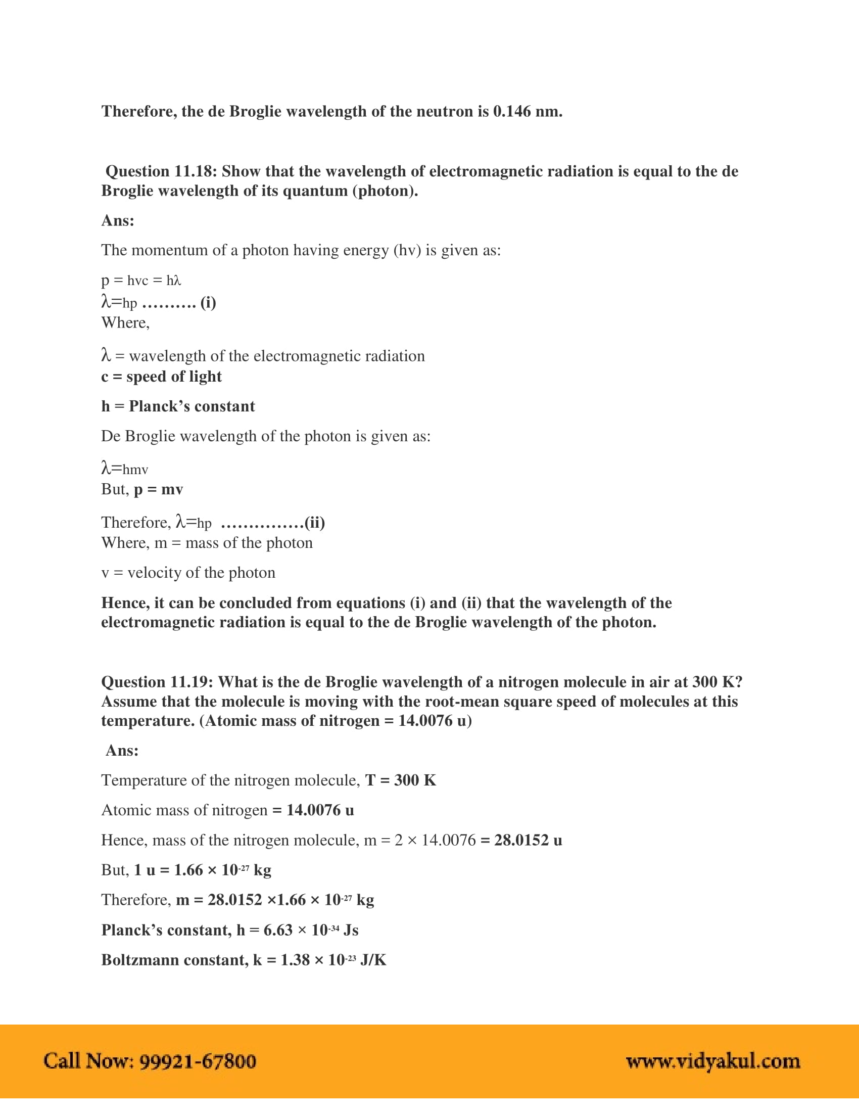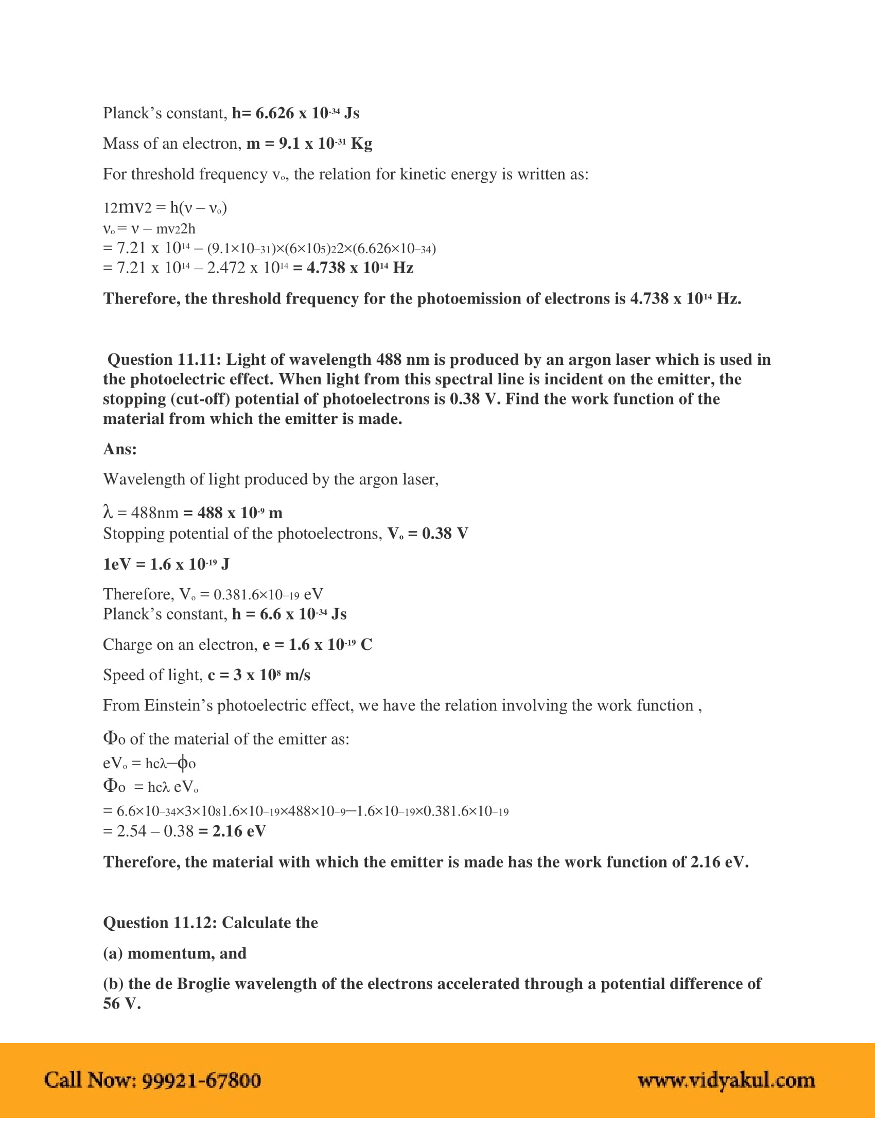 Vidyakul brings to you PDF, downloadable version of NCERT Solutions for Class 12 Physics Chapter 11 Dual Nature of Radiation And Matter solved by our panel of experienced teachers as per NCERT (CBSE) book guidelines. All Dual Nature of Radiation And Matter exercise questions, notes with solutions will help you to revise