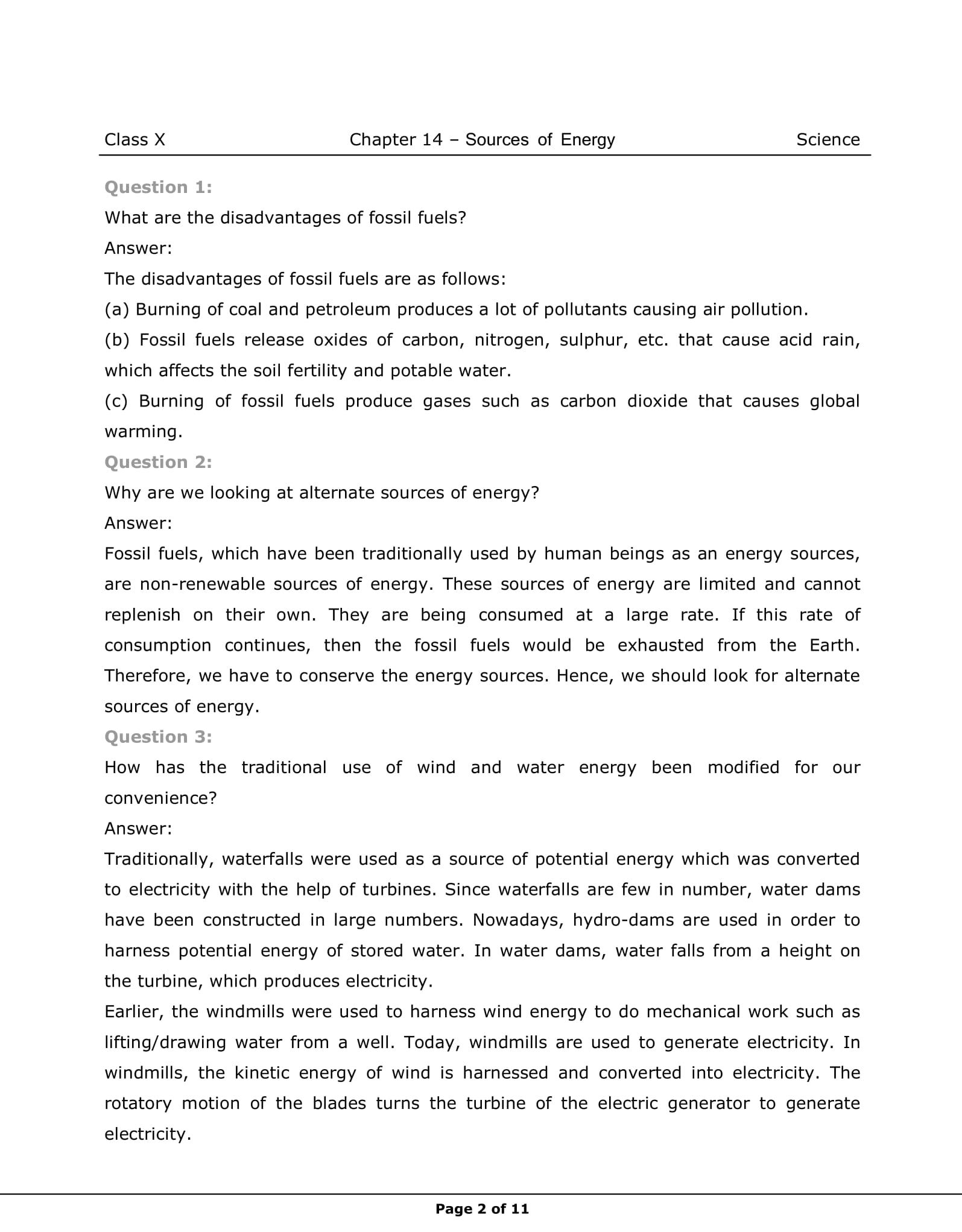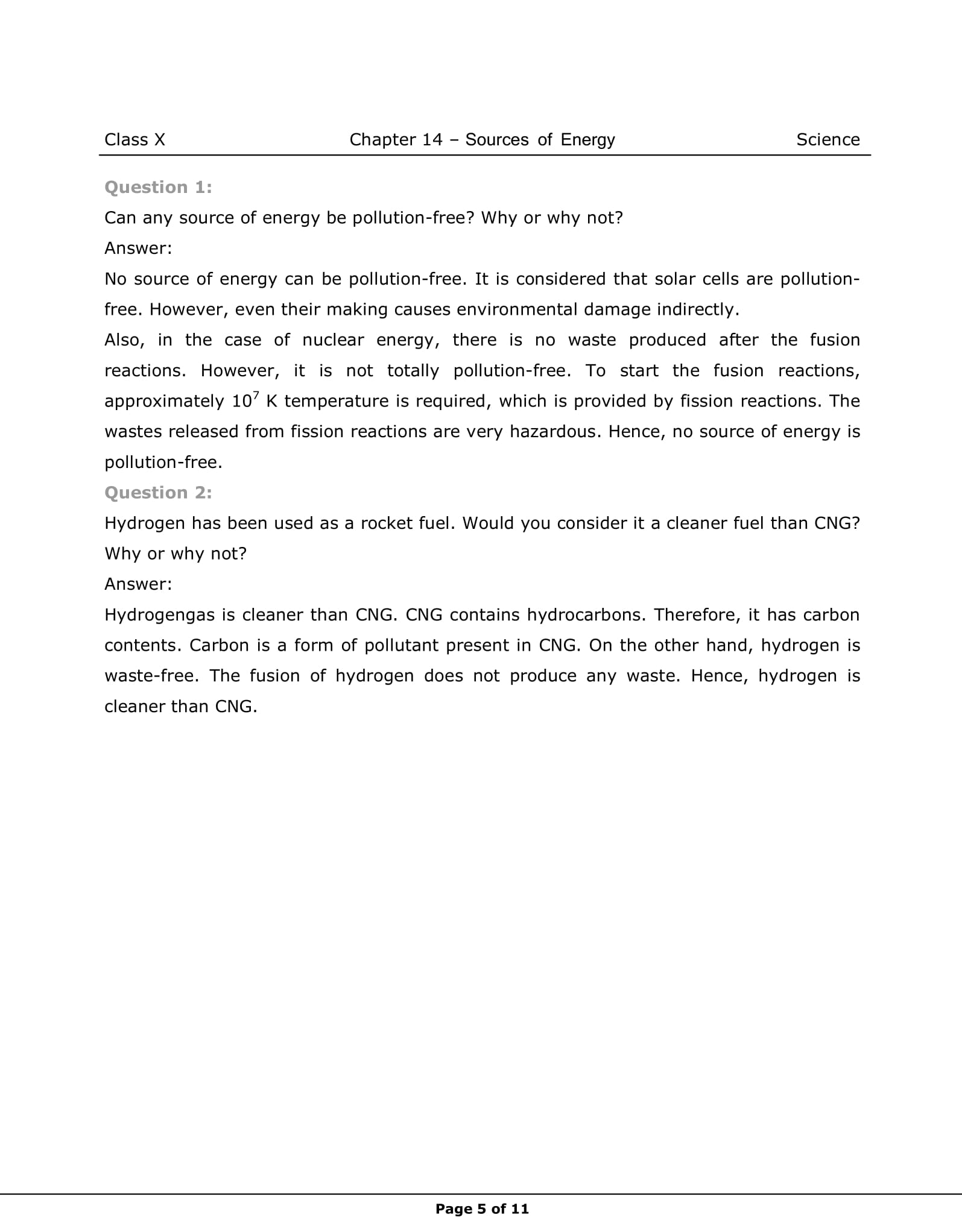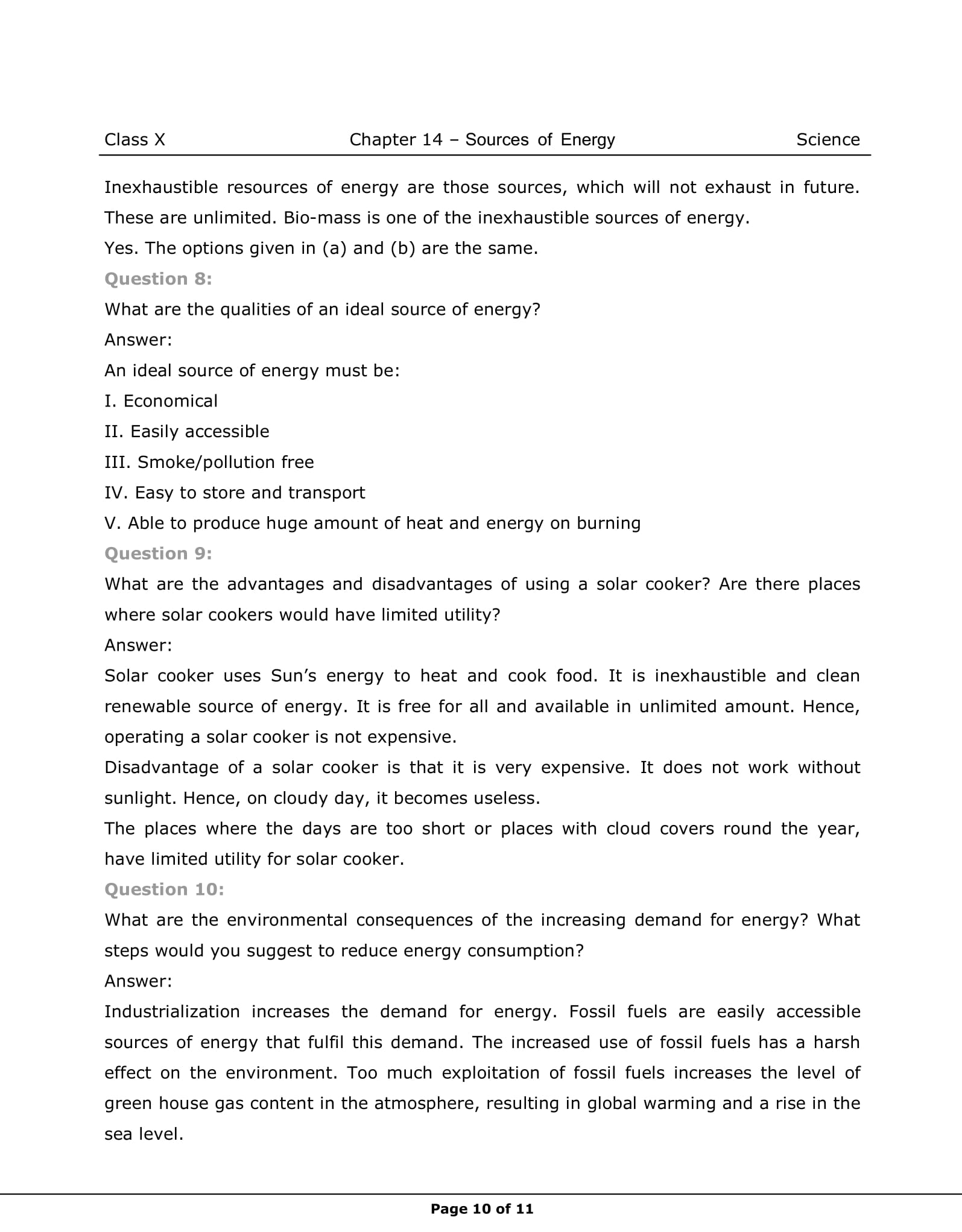NCERT Solutions For Class 10 Science Chapter 14 Sources of Energy - PDF Download