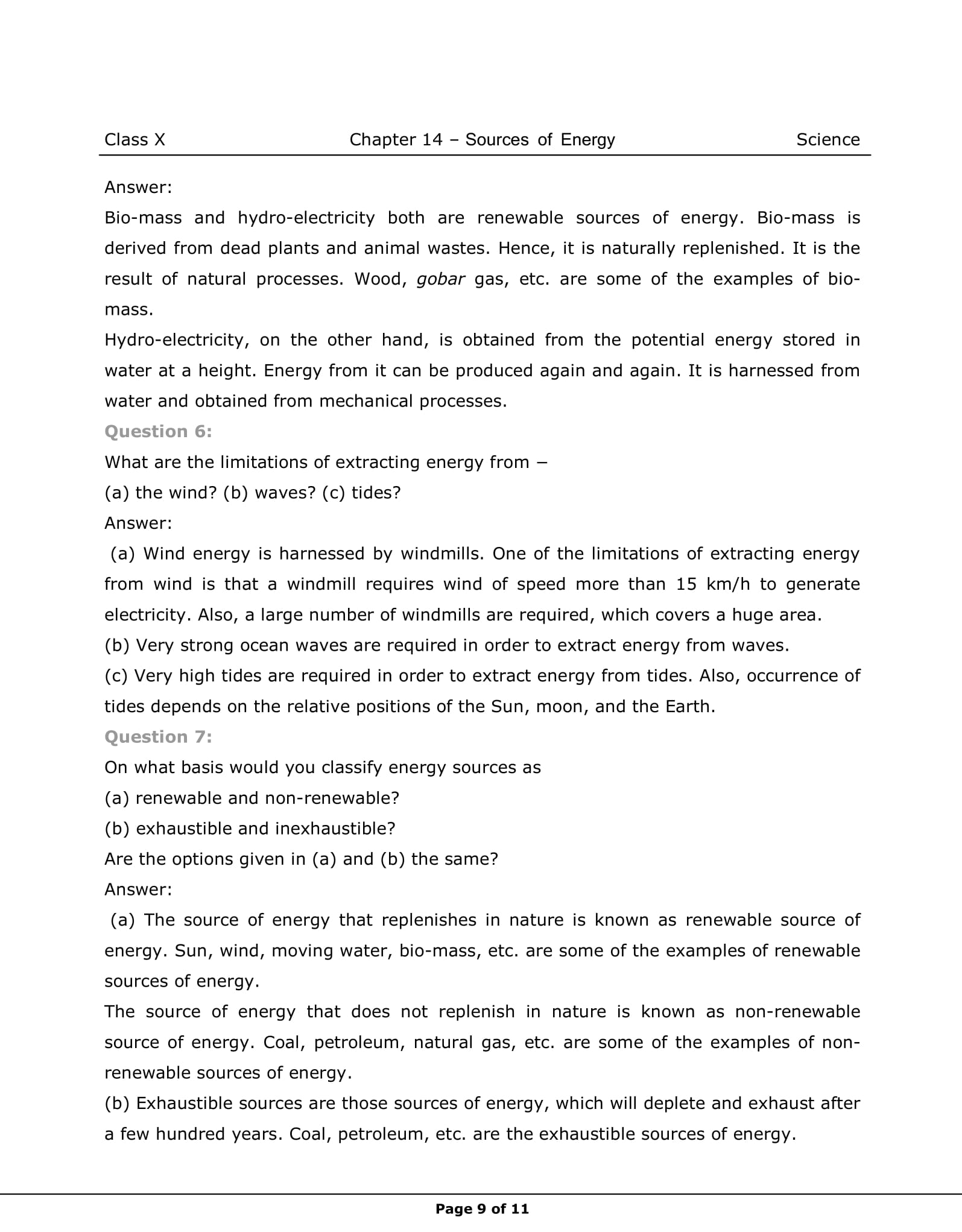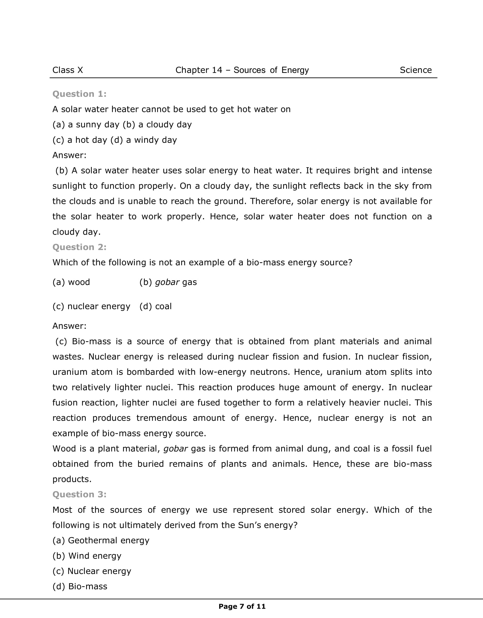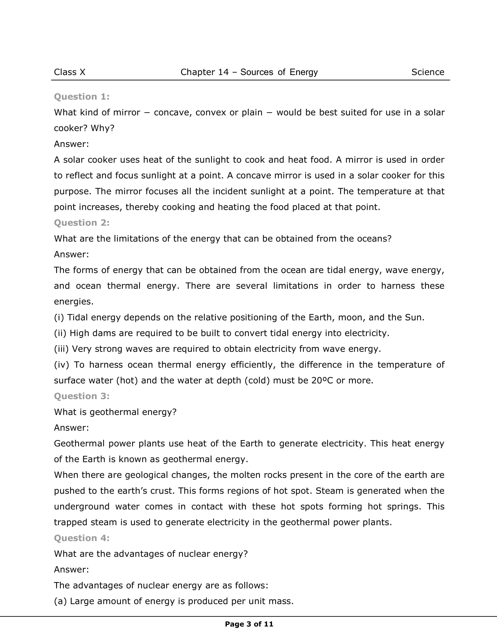 NCERT Solutions For Class 10 Science Chapter 14 Sources of Energy - PDF Download