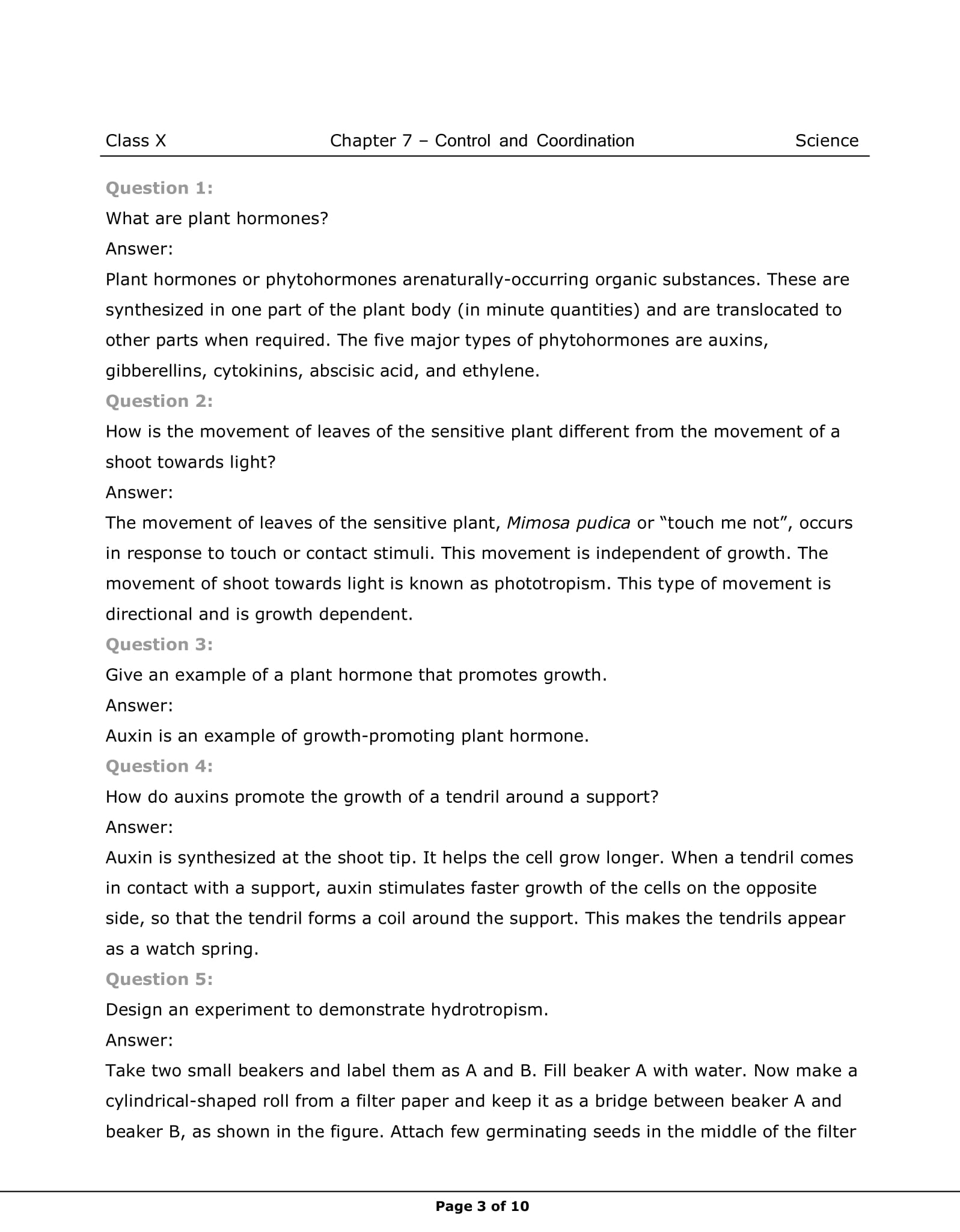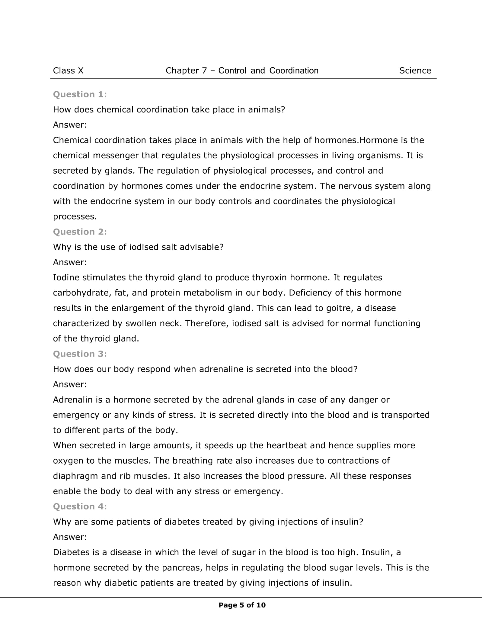 These CBSE NCERT Solutions for Class 10 Science Chapter 7 Control and Coordination will help you to practice all the topics in the chapter with ease and score maximum marks in the board examination.