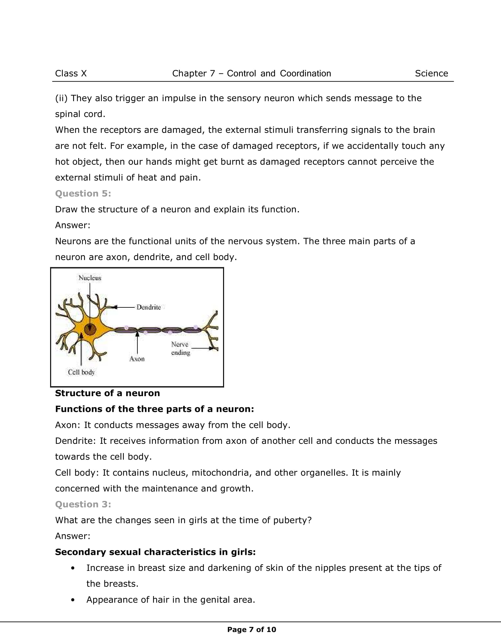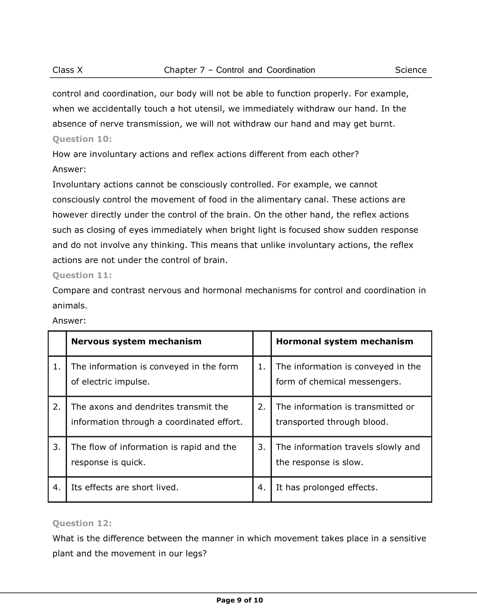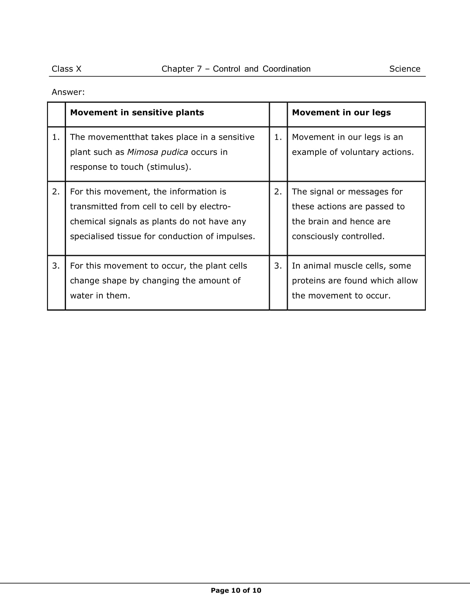 NCERT Solutions For Class 10 Science Chapter 7 Control and Coordination - PDF Download