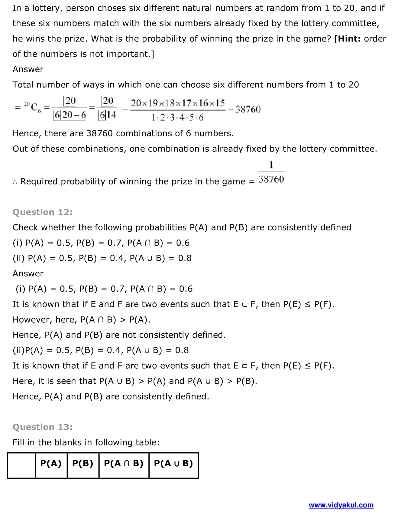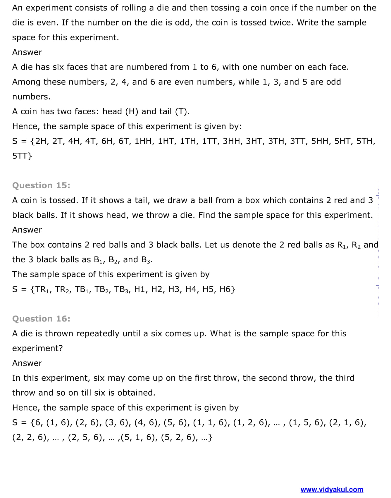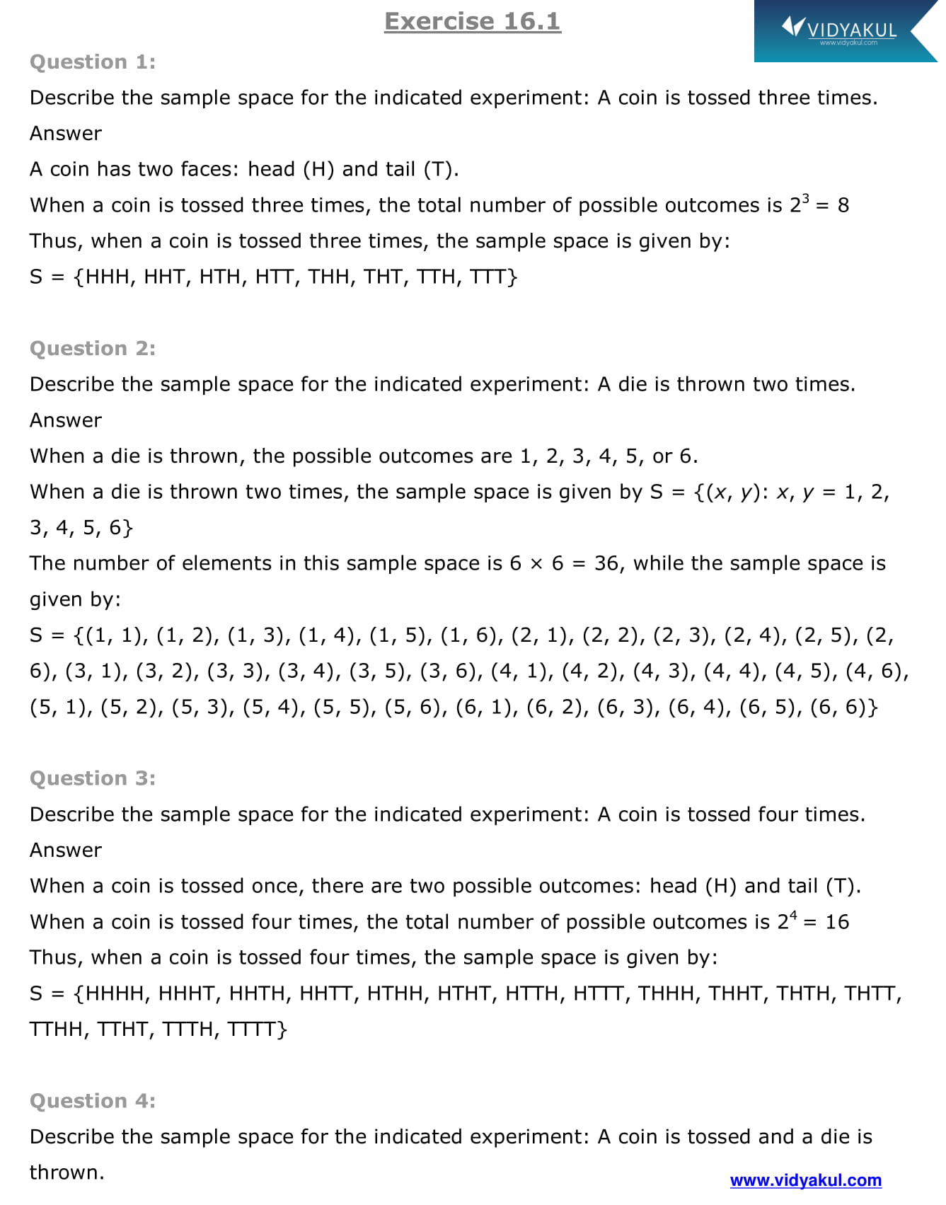 NCERT Solutions for Class 11 Maths Chapter 16 Probability - PDF Download